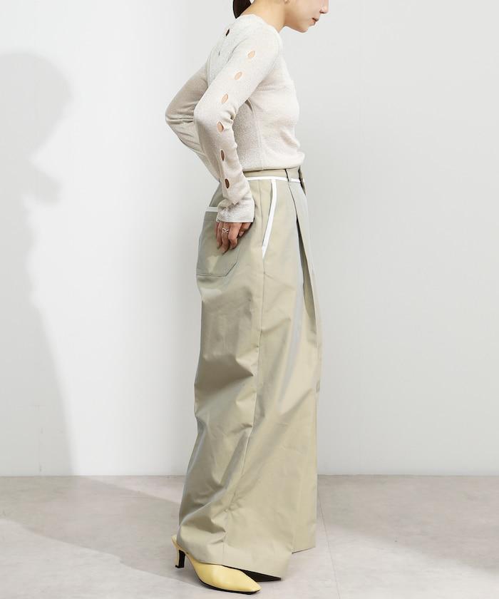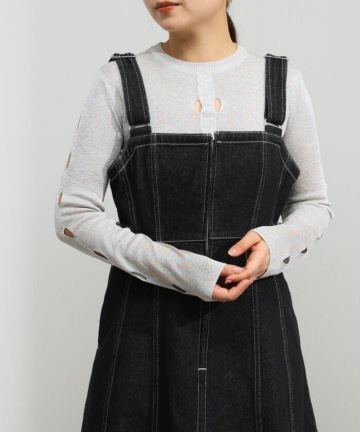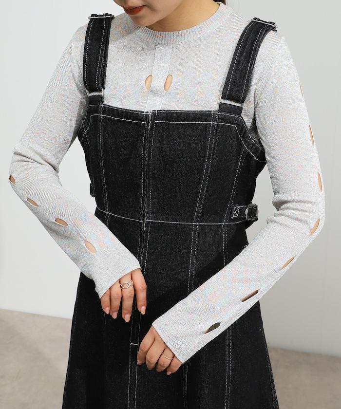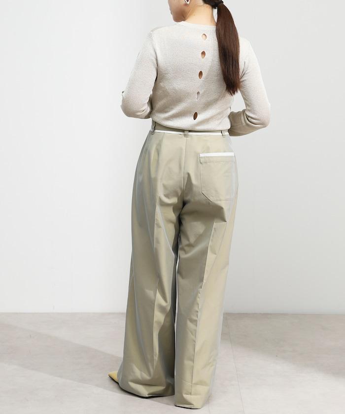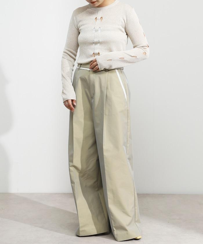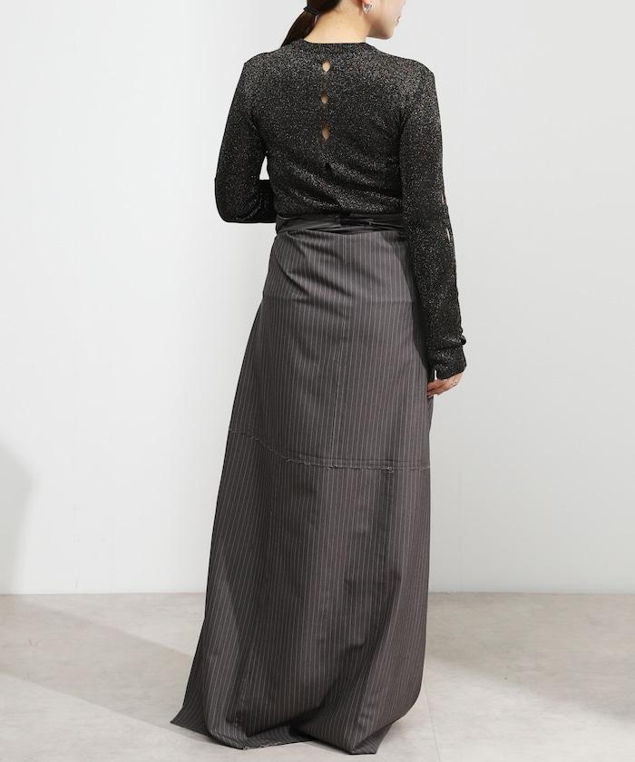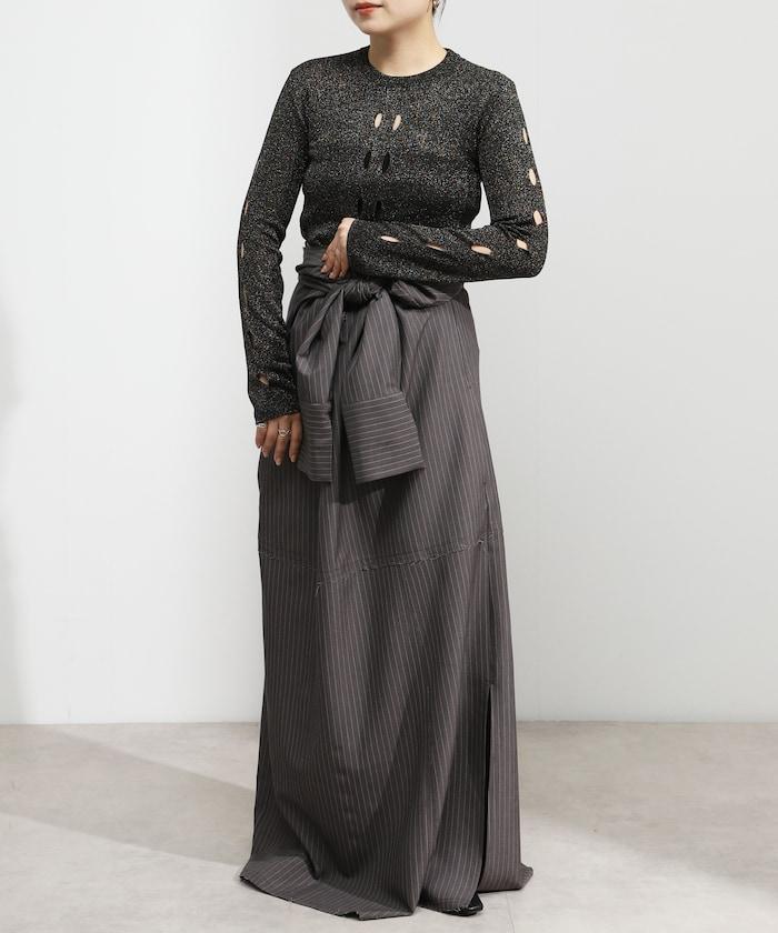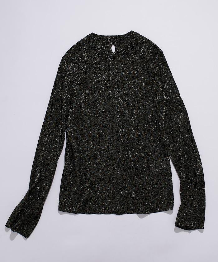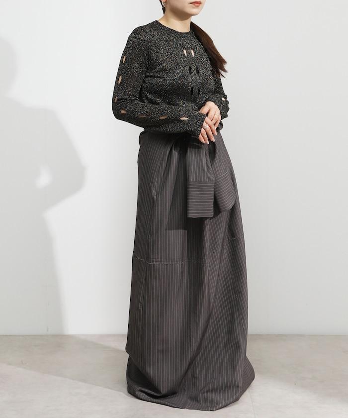 設計感十足的薄紗針織上衣,開衩呈線條狀。