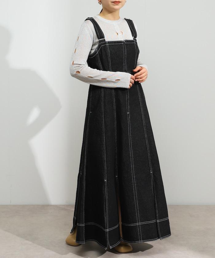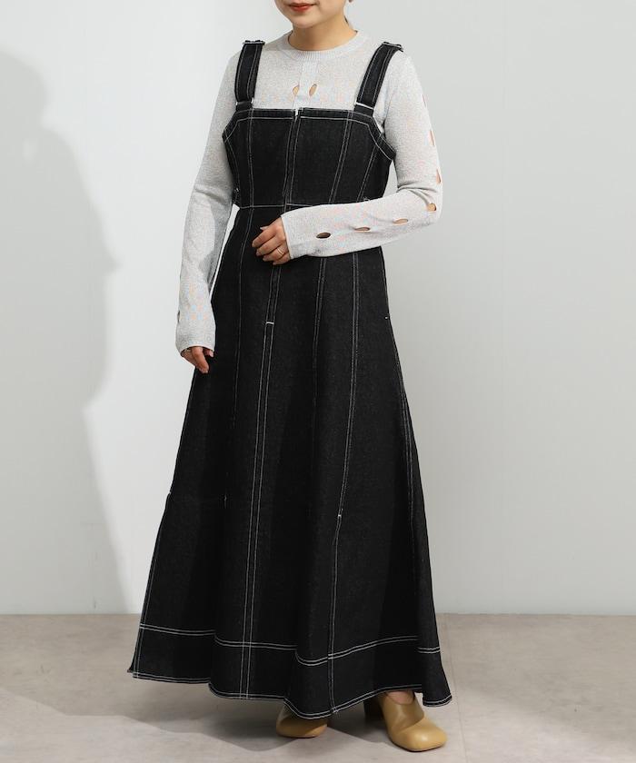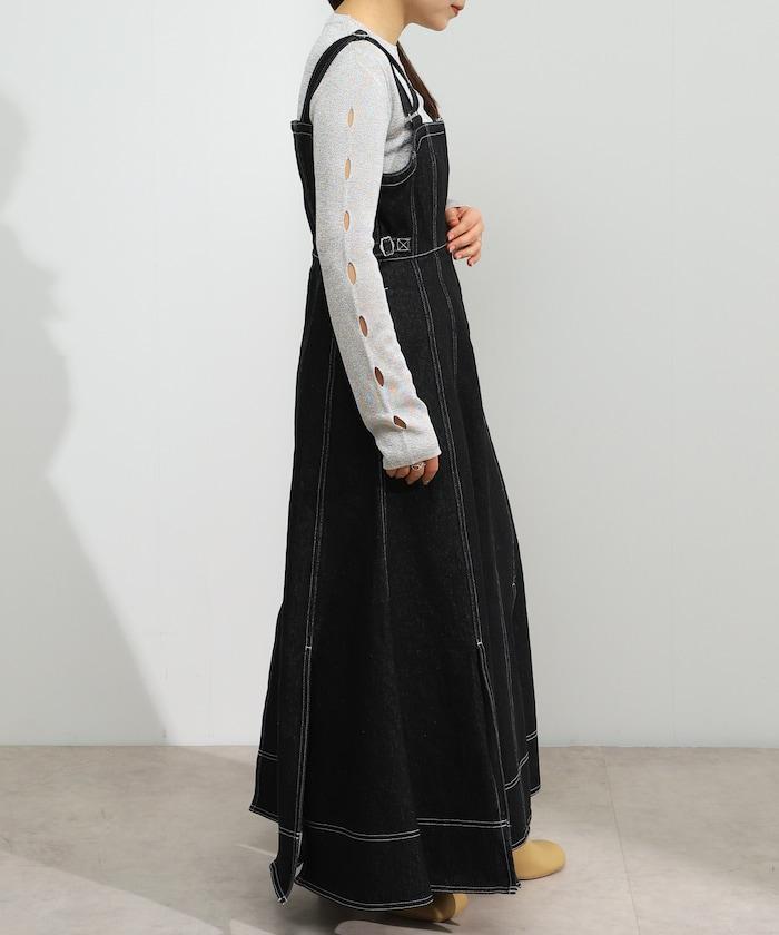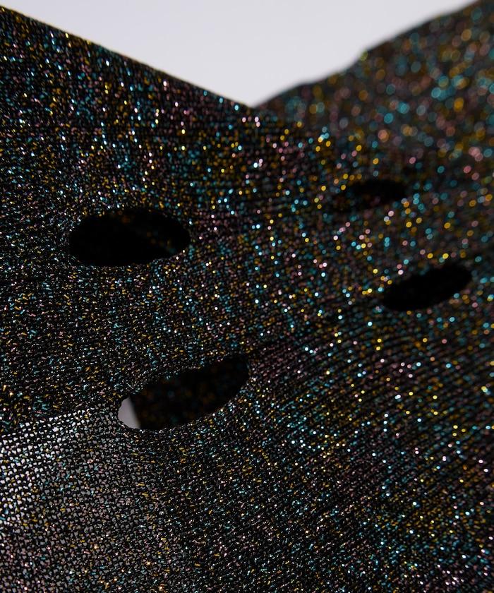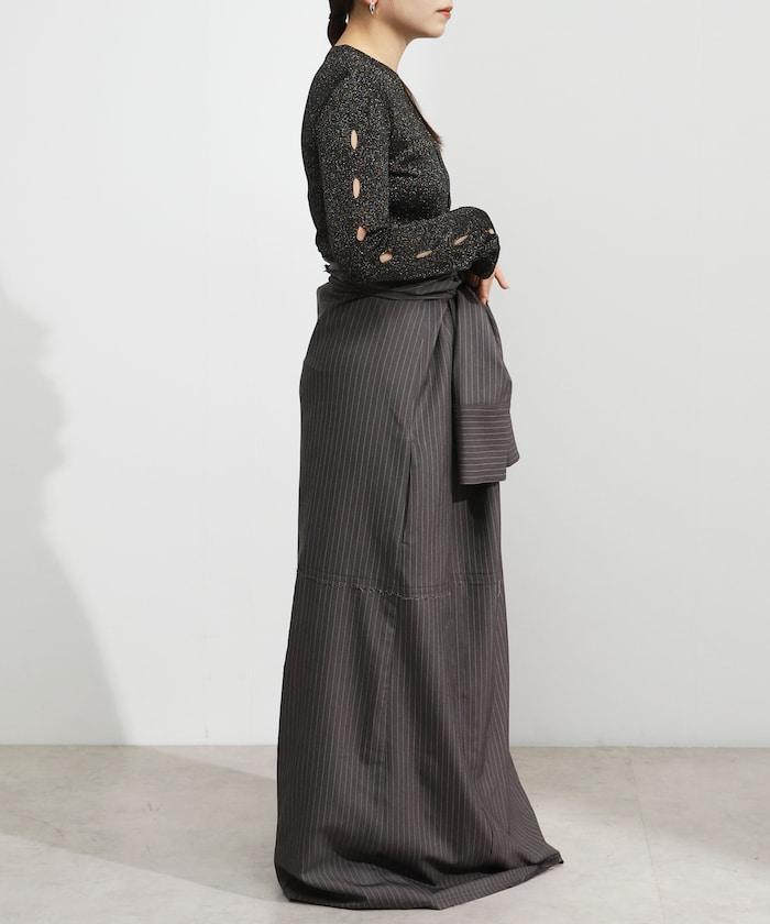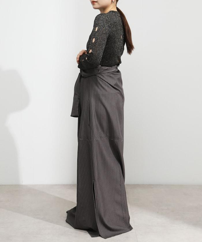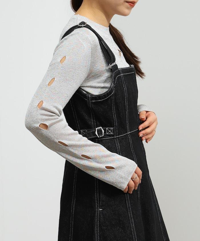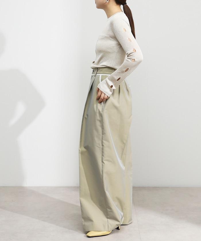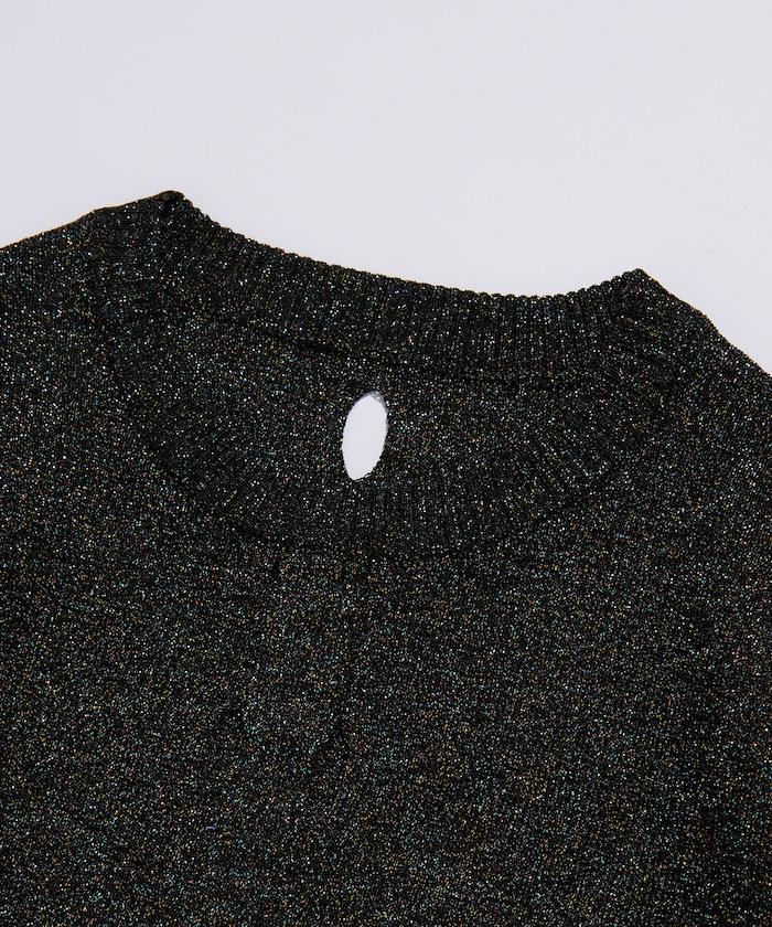 設計感十足的薄紗針織上衣,開衩呈線條狀。