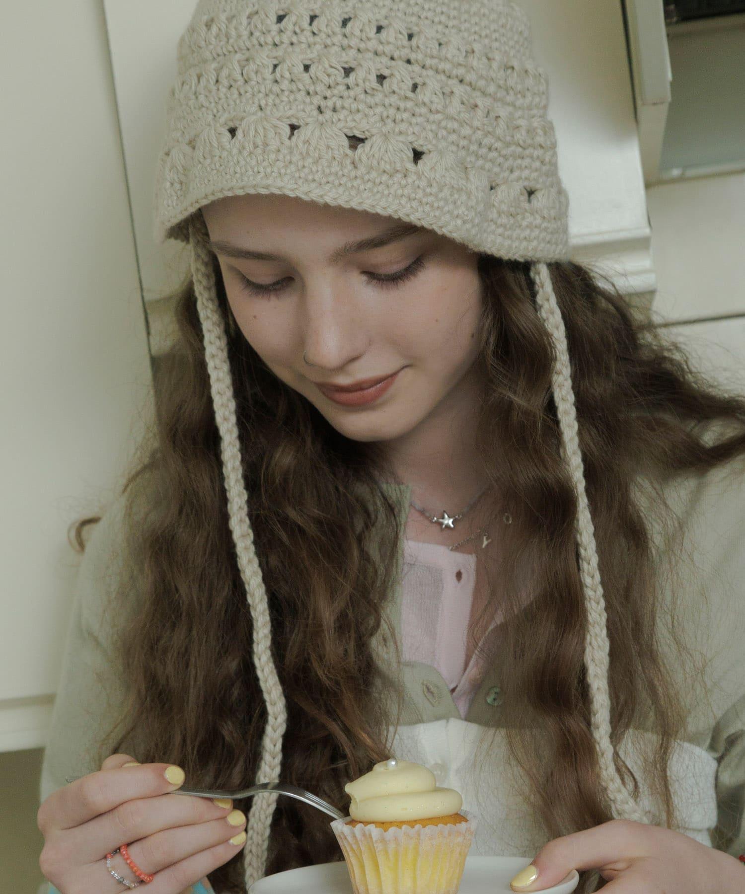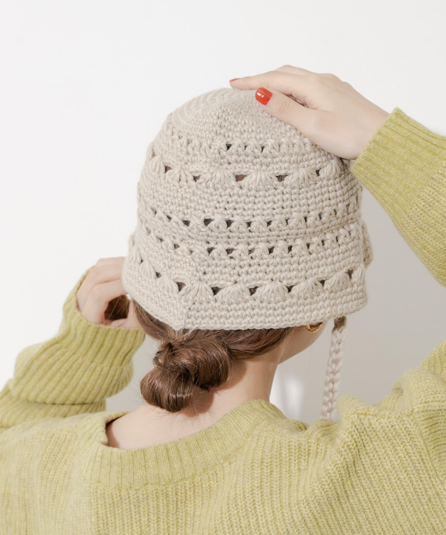 鉤針編織帽的側面有一條可愛的繩索,可以繫上或垂下,以突出你的著裝。