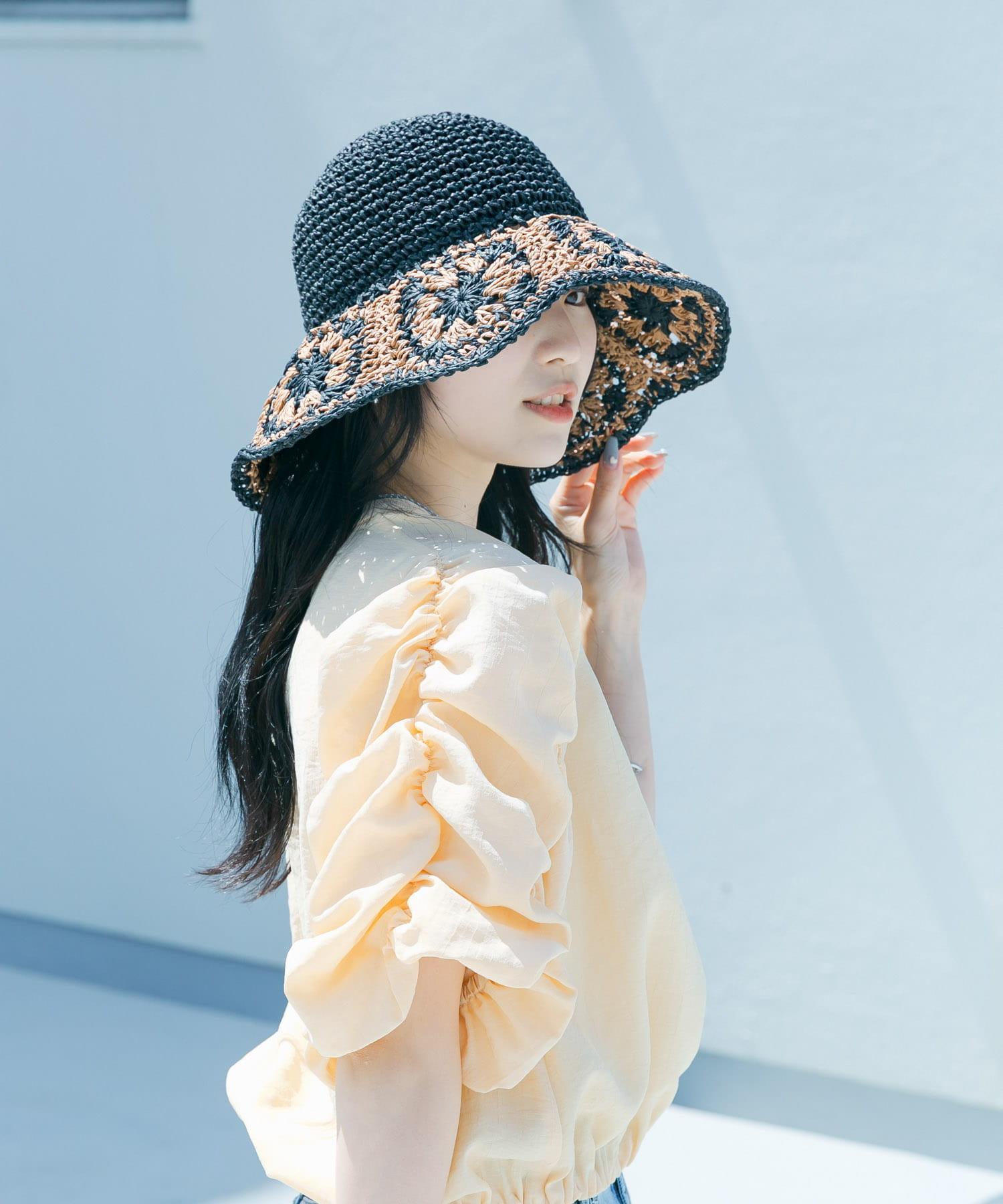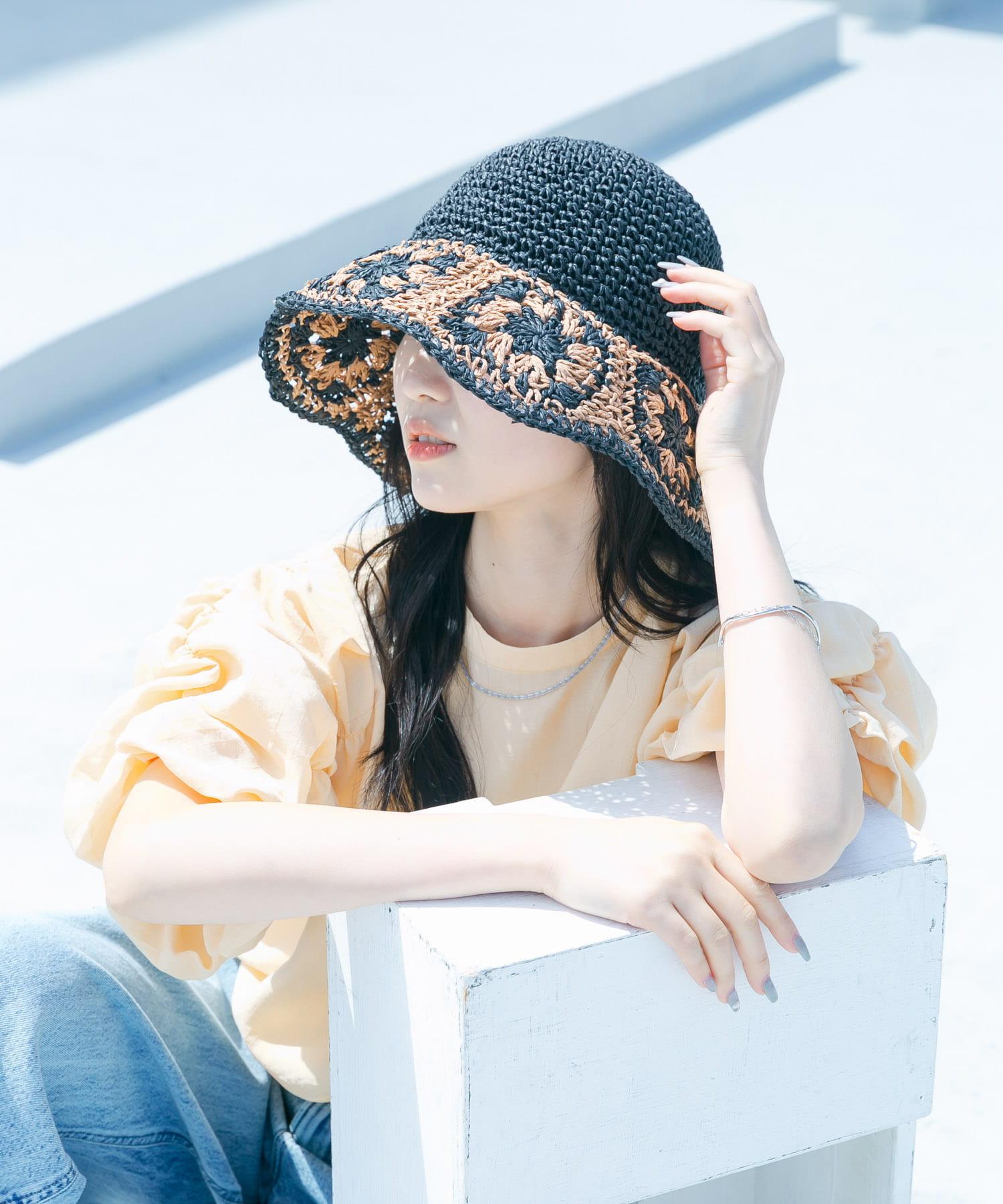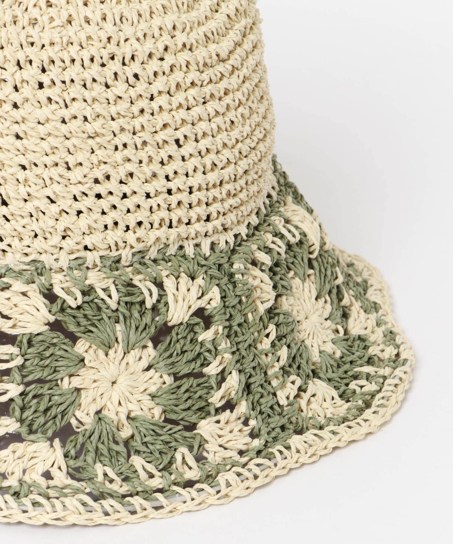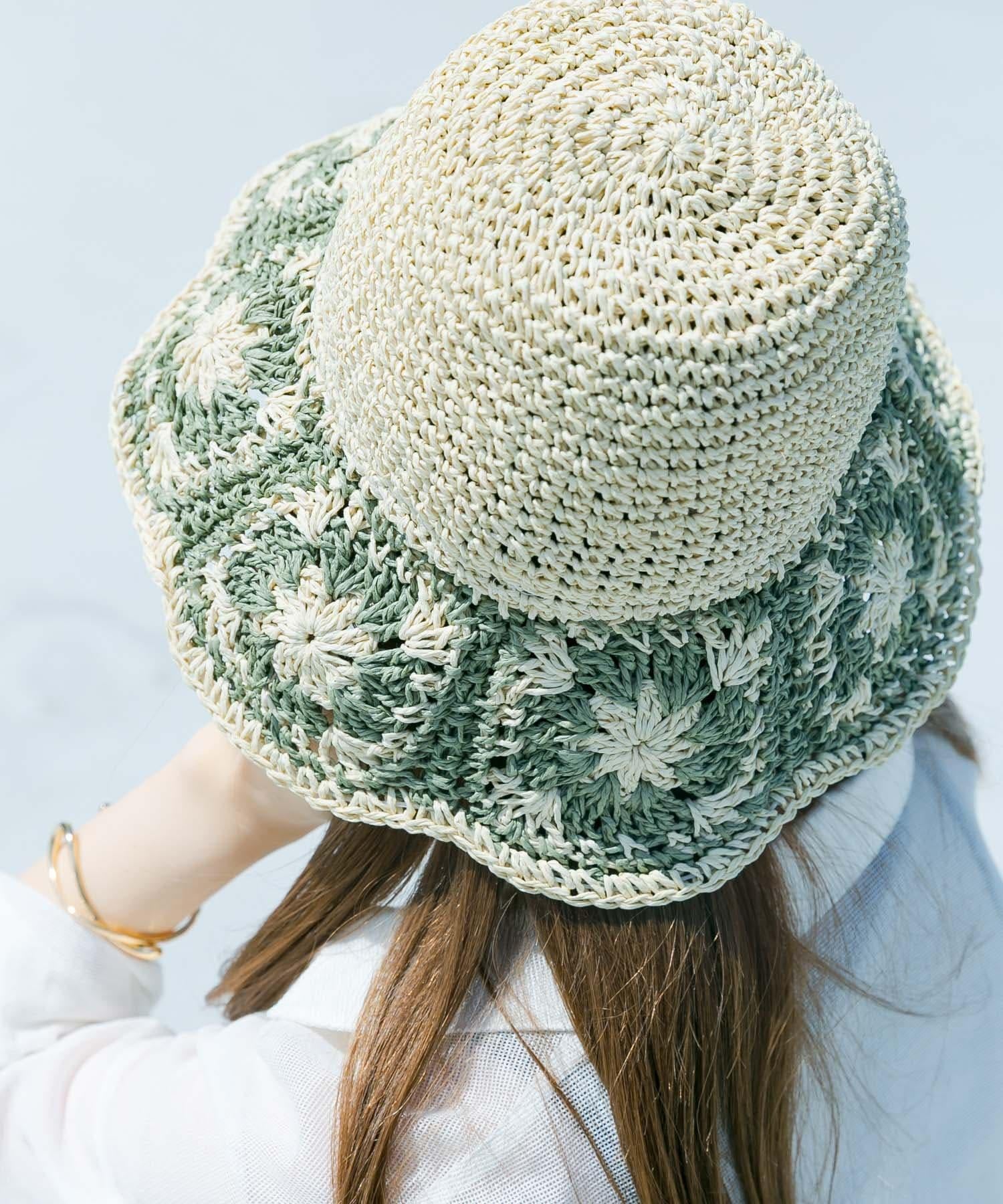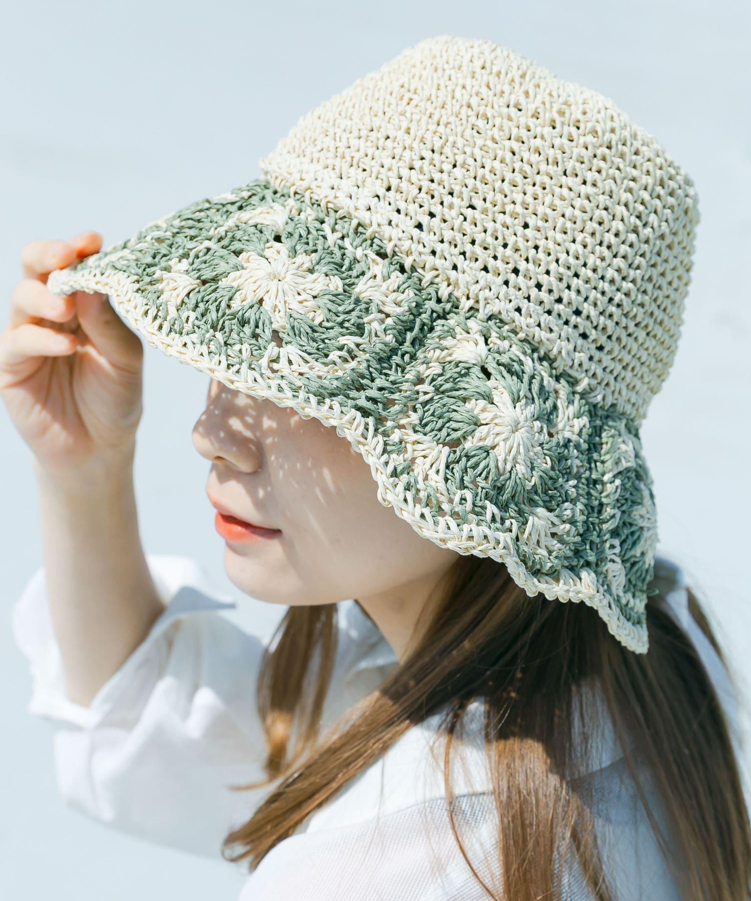 夏日感十足的紙質帽子,花朵鉤針編織十分搶眼。
