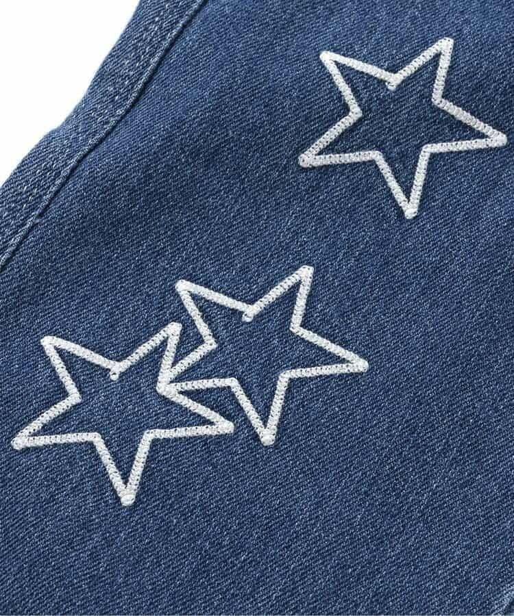 BREEZE的 "鏈條刺繡寬鬆牛仔褲 "因其時尚易穿的設計而備受歡迎,推薦用於上學和上學時穿著!