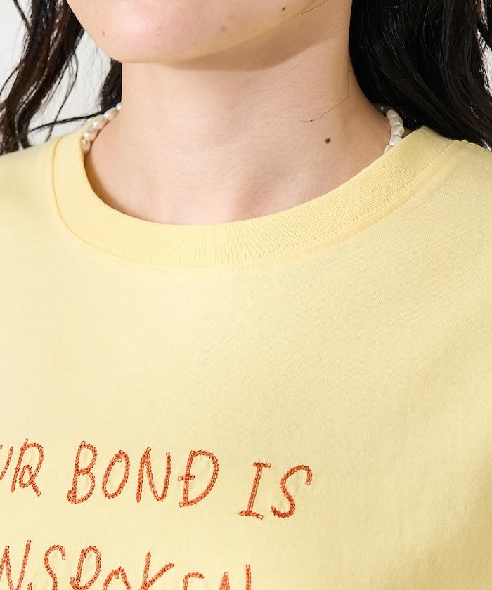 以鏈條縫製工藝表達手寫信息的 T 恤。
