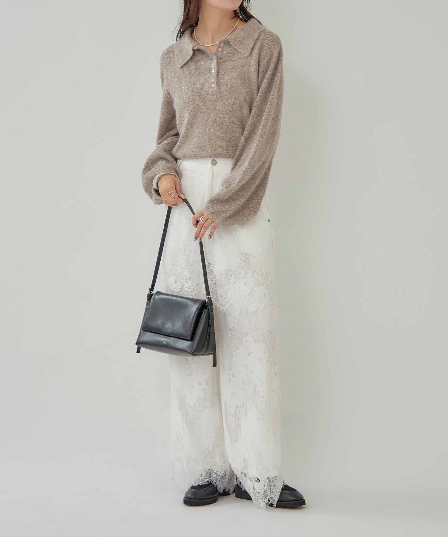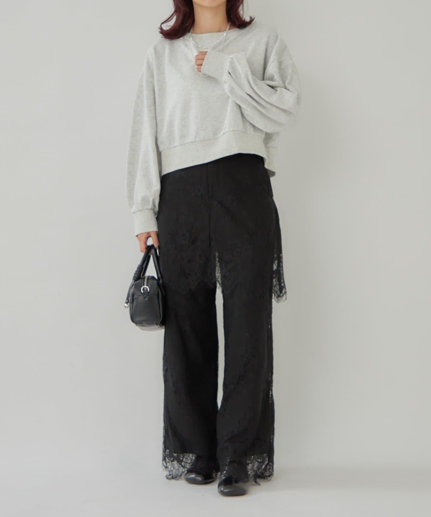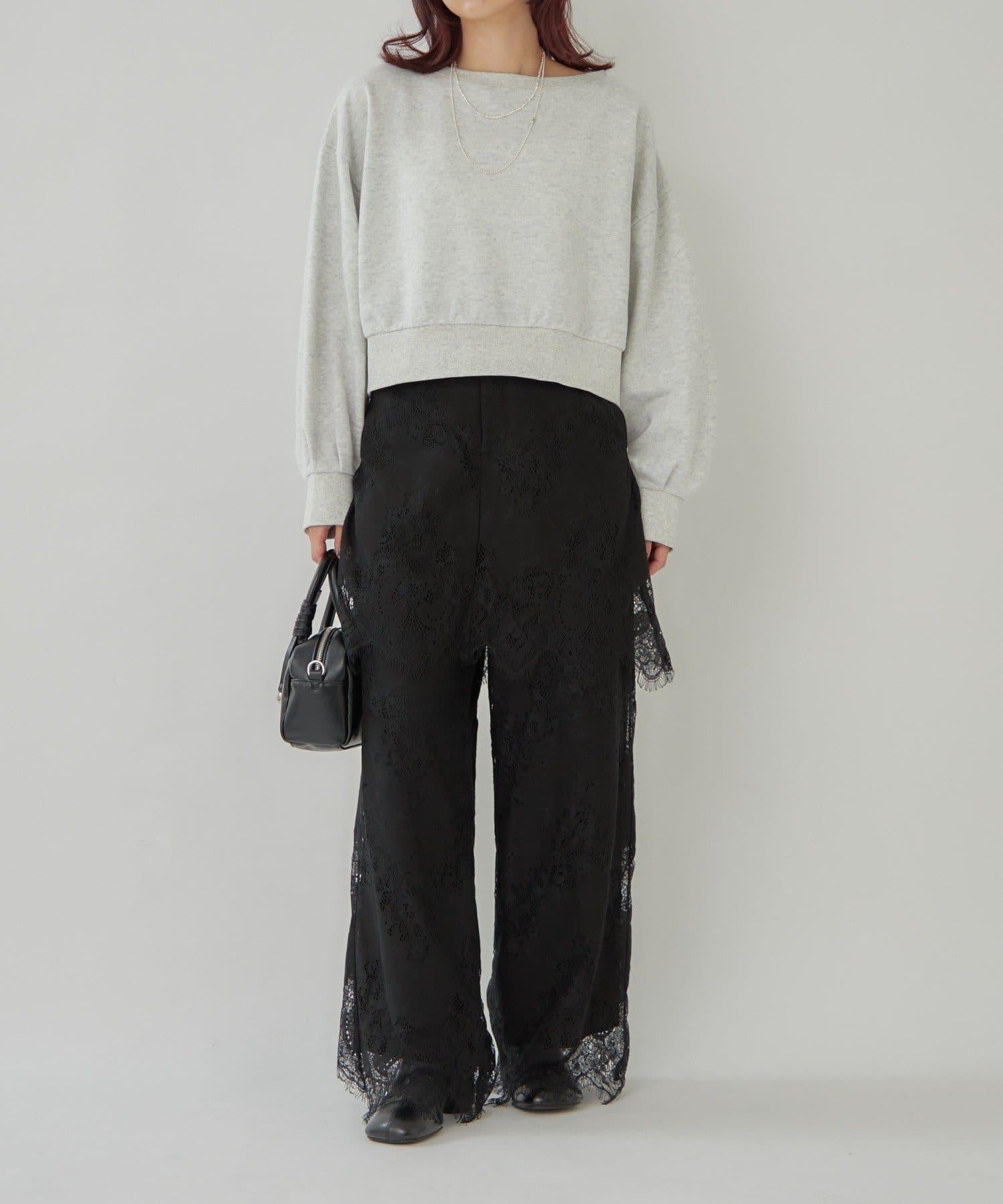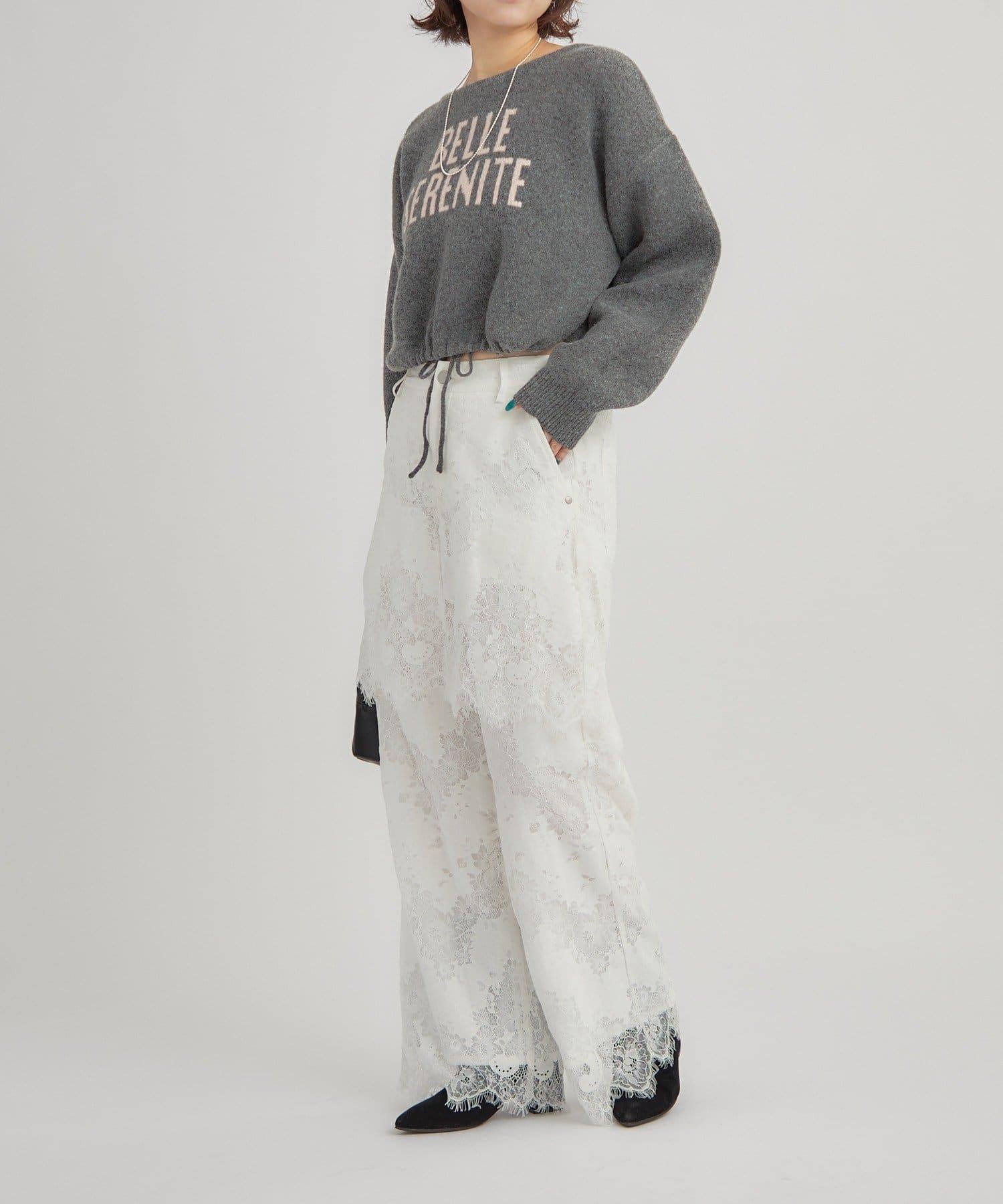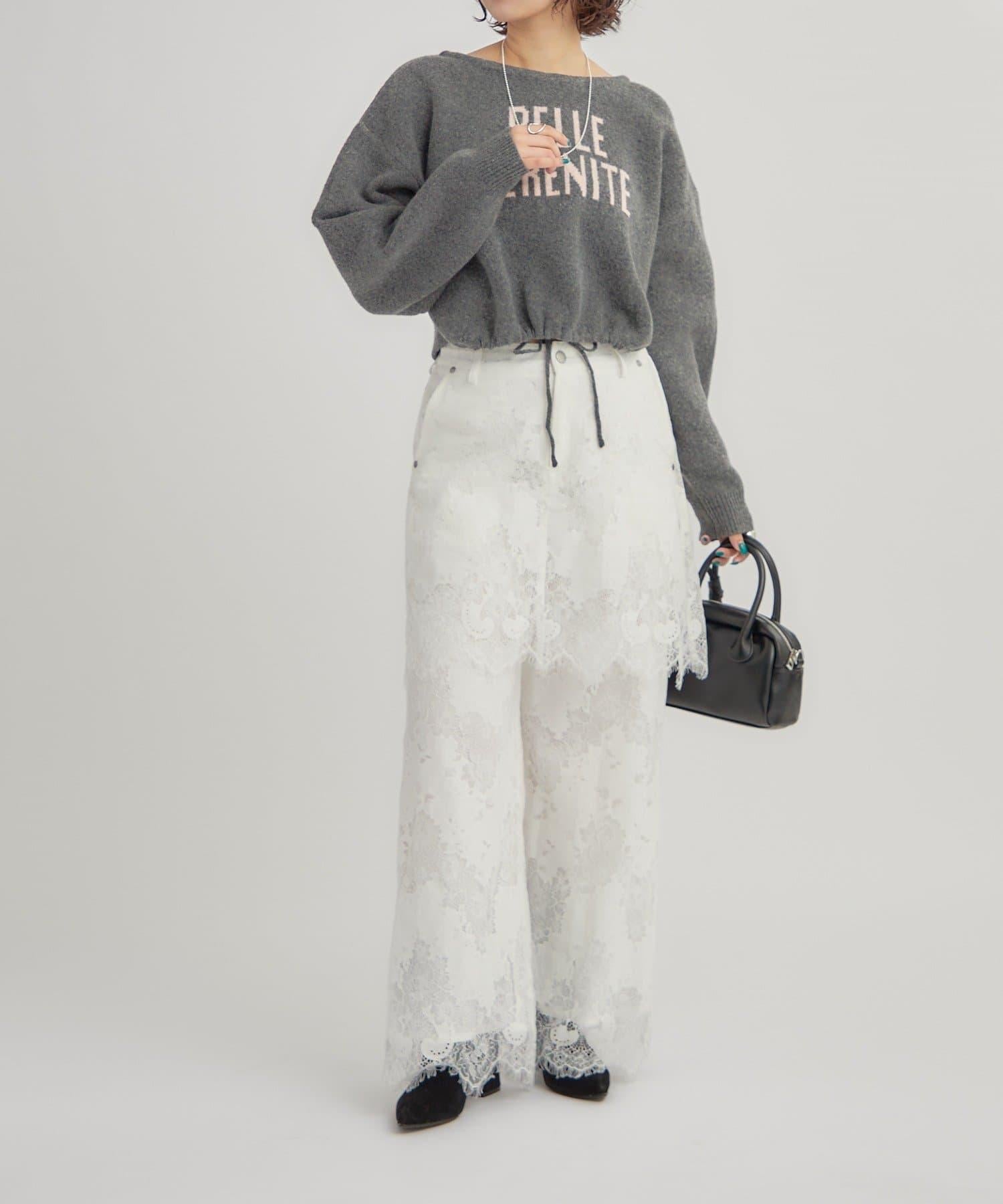 這款多層長褲採用奢華的扇形蕾絲製成。