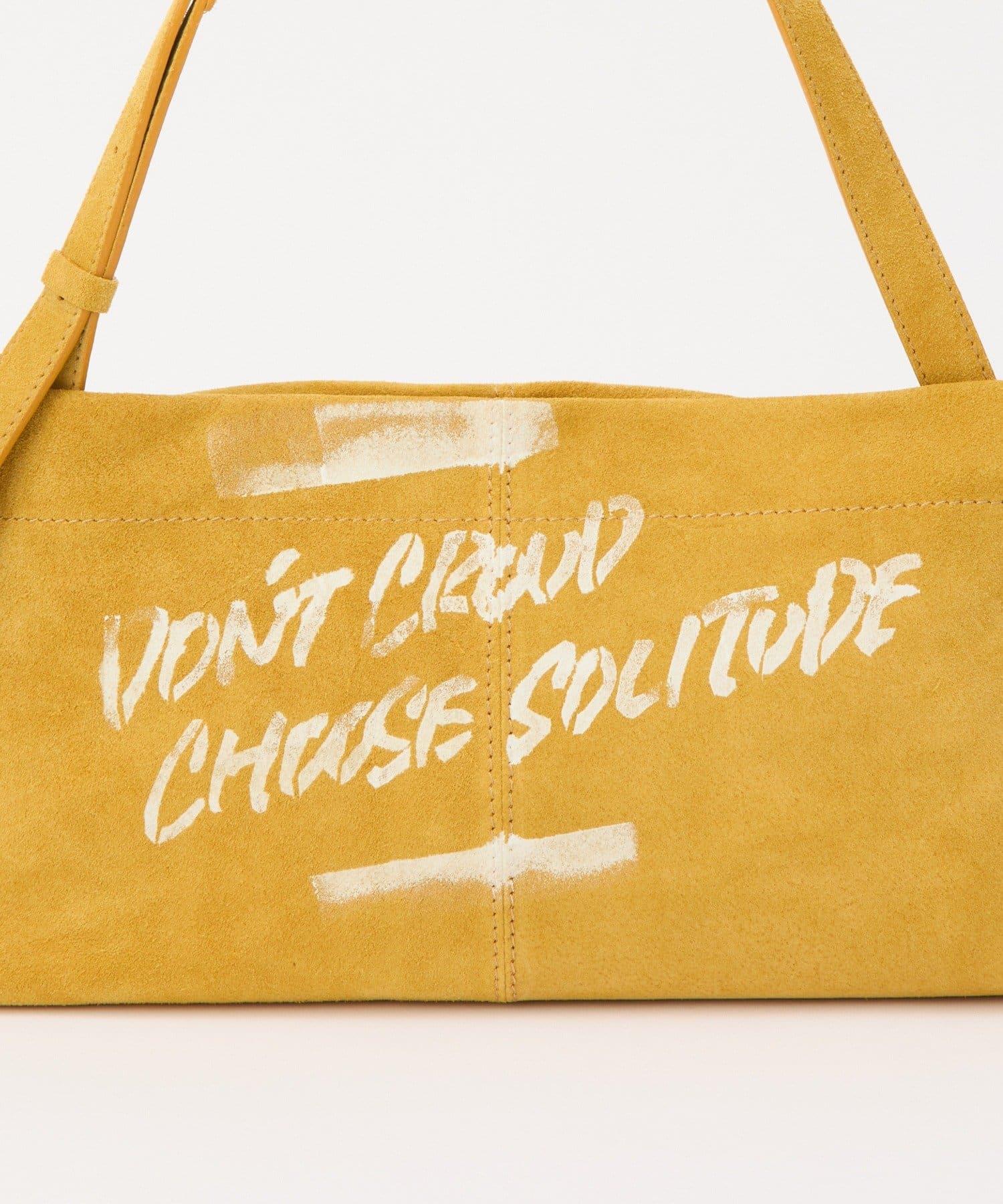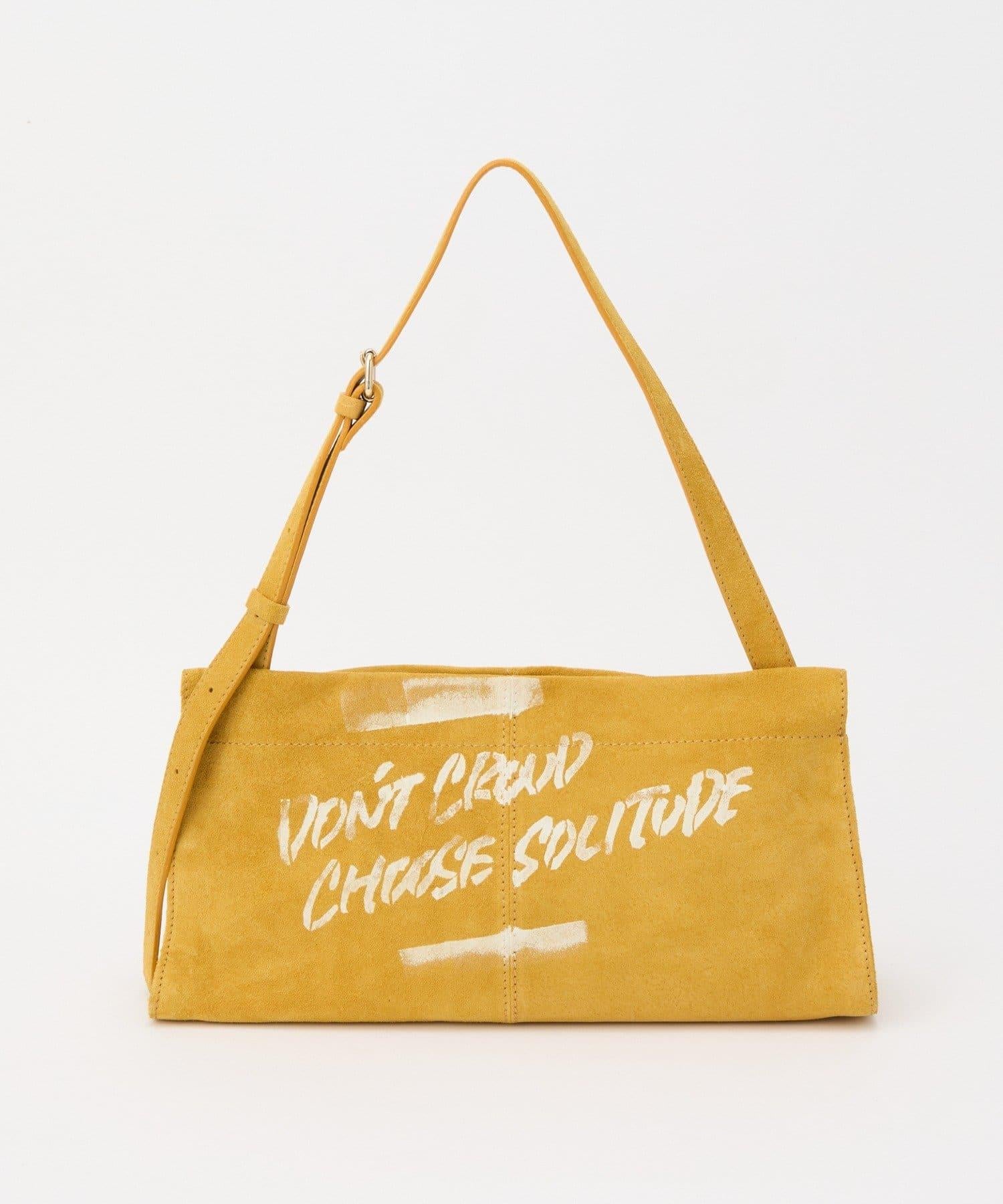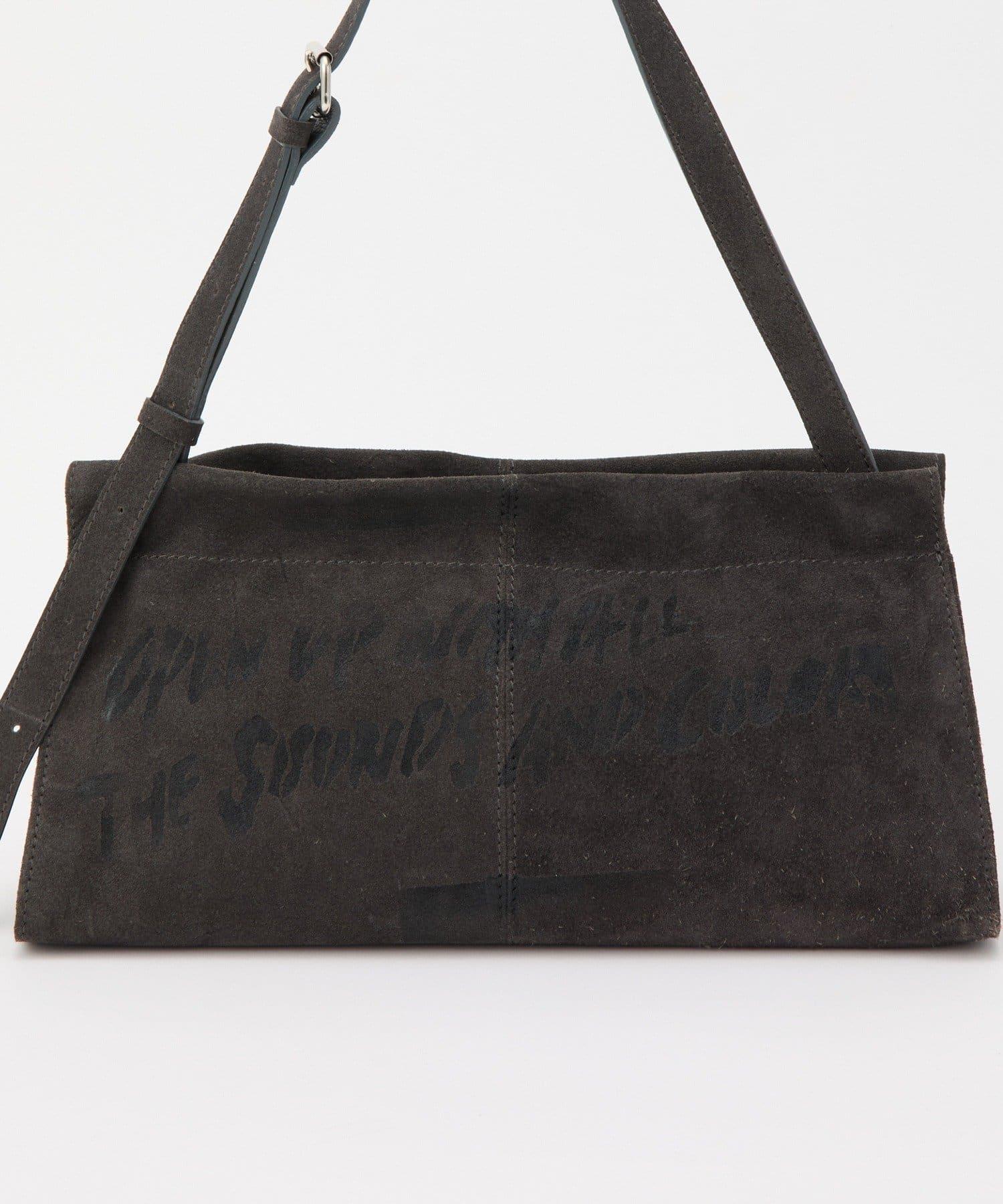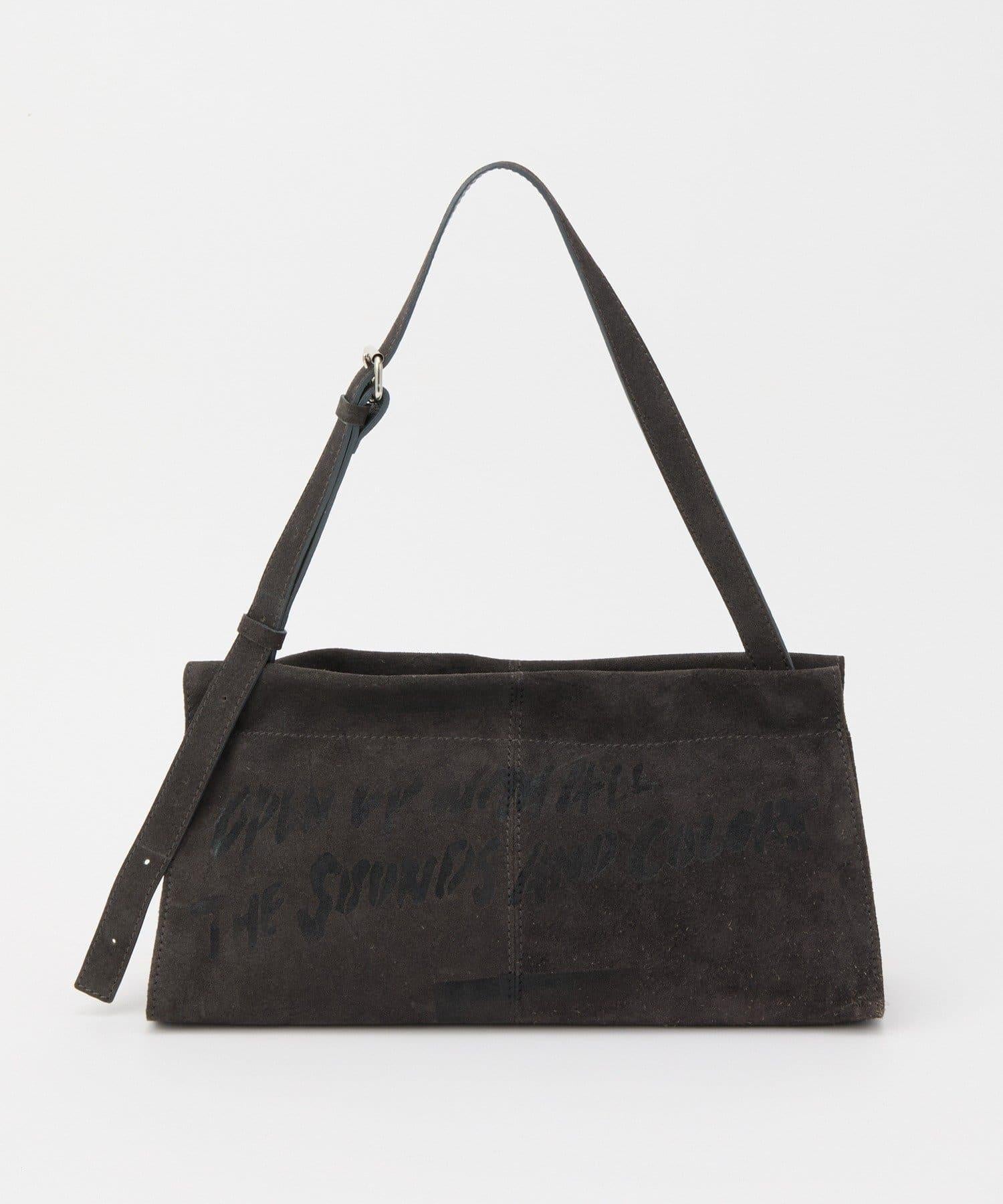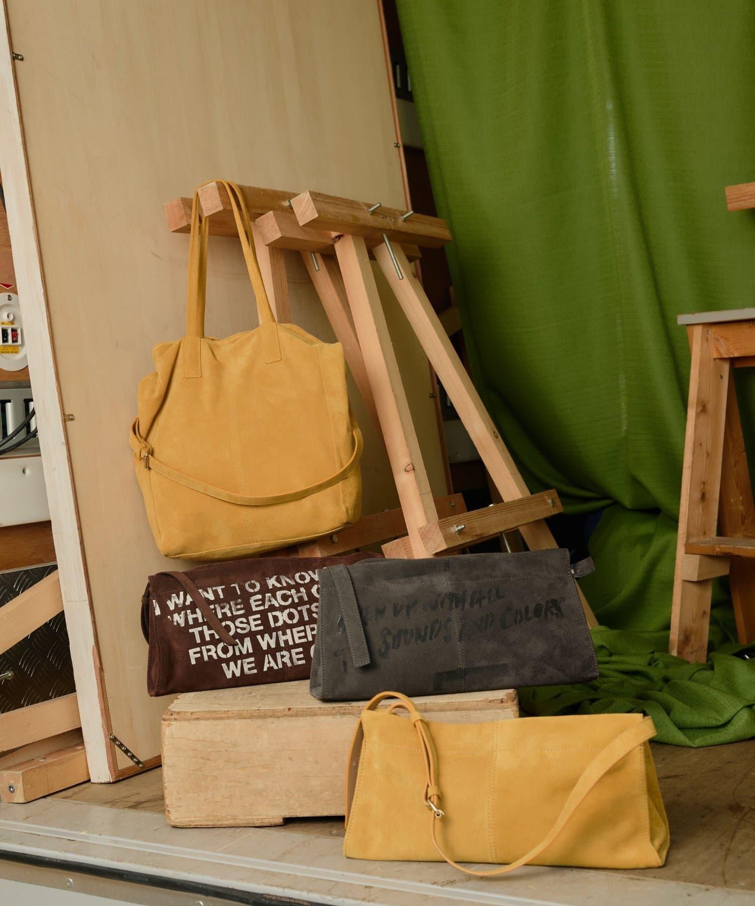 這款時尚單品採用溼潤的麂皮材質,並在簡潔的方形外形上採用了森谷勉的模板藝術。