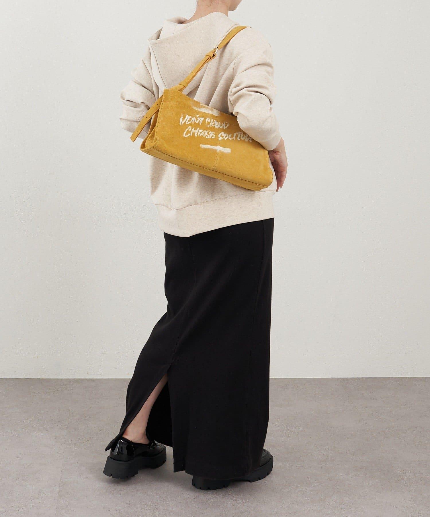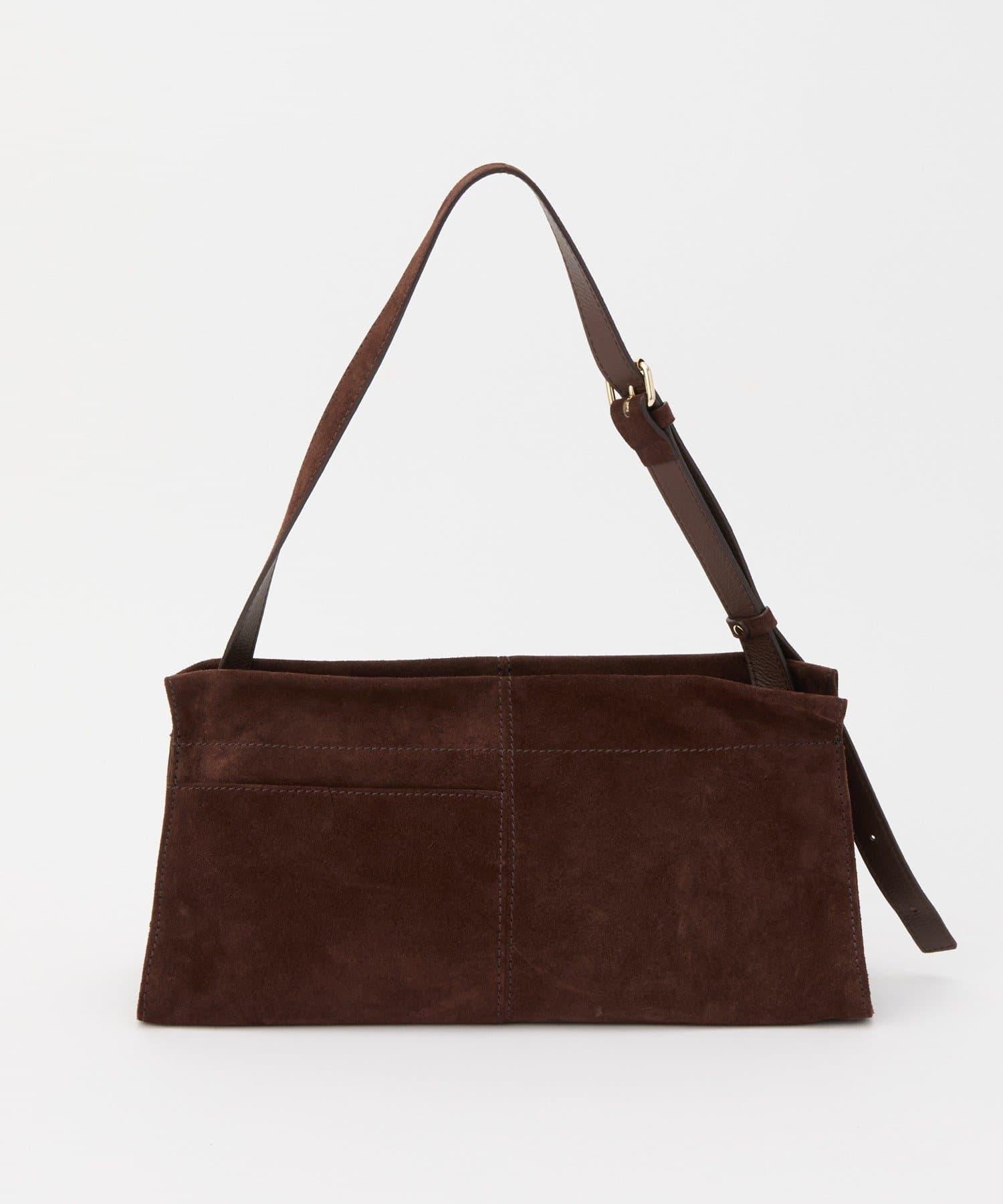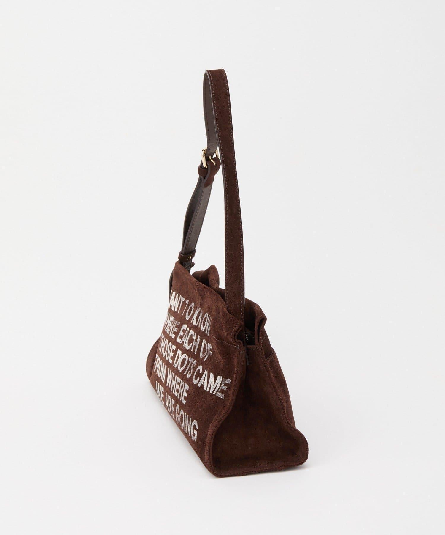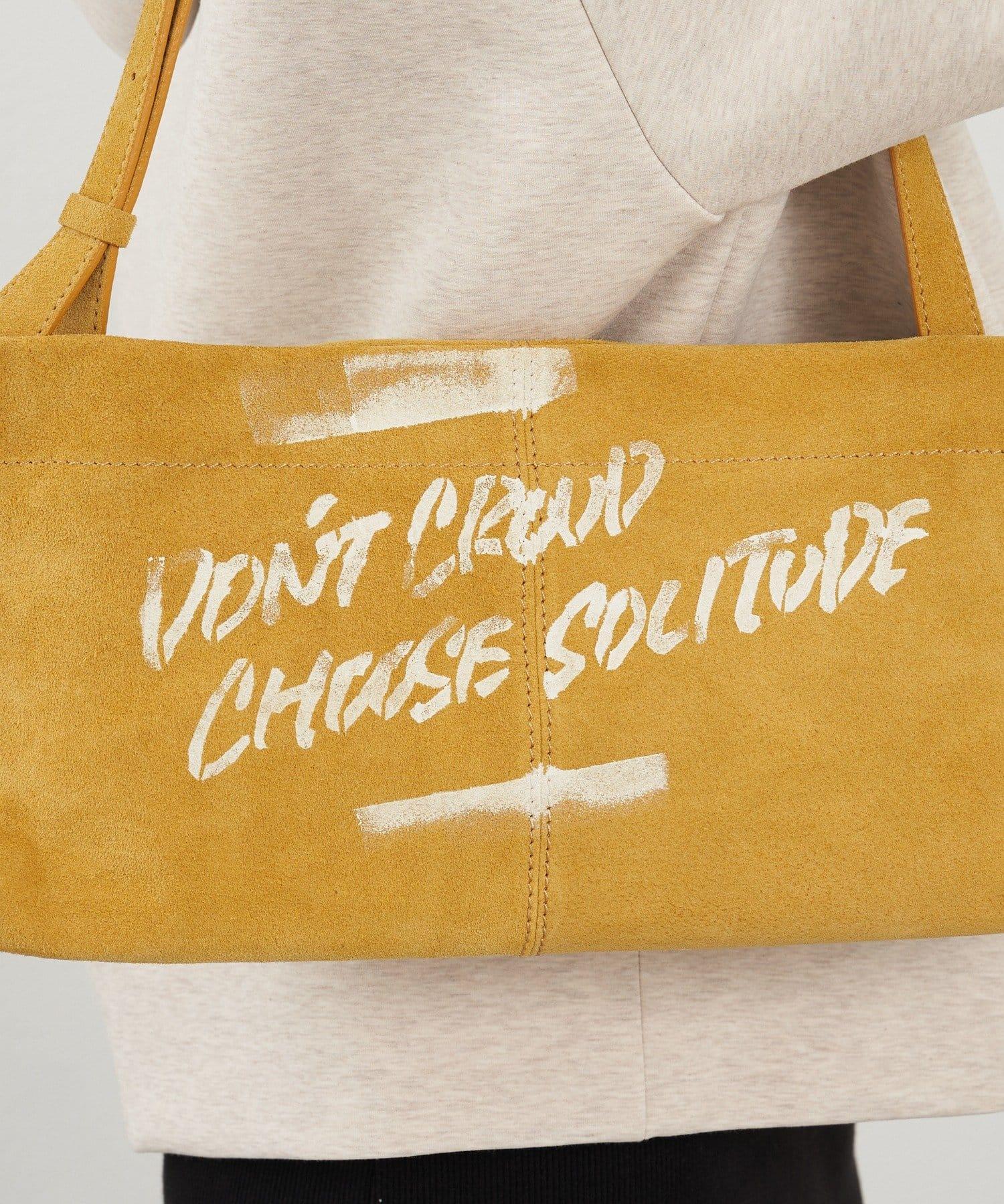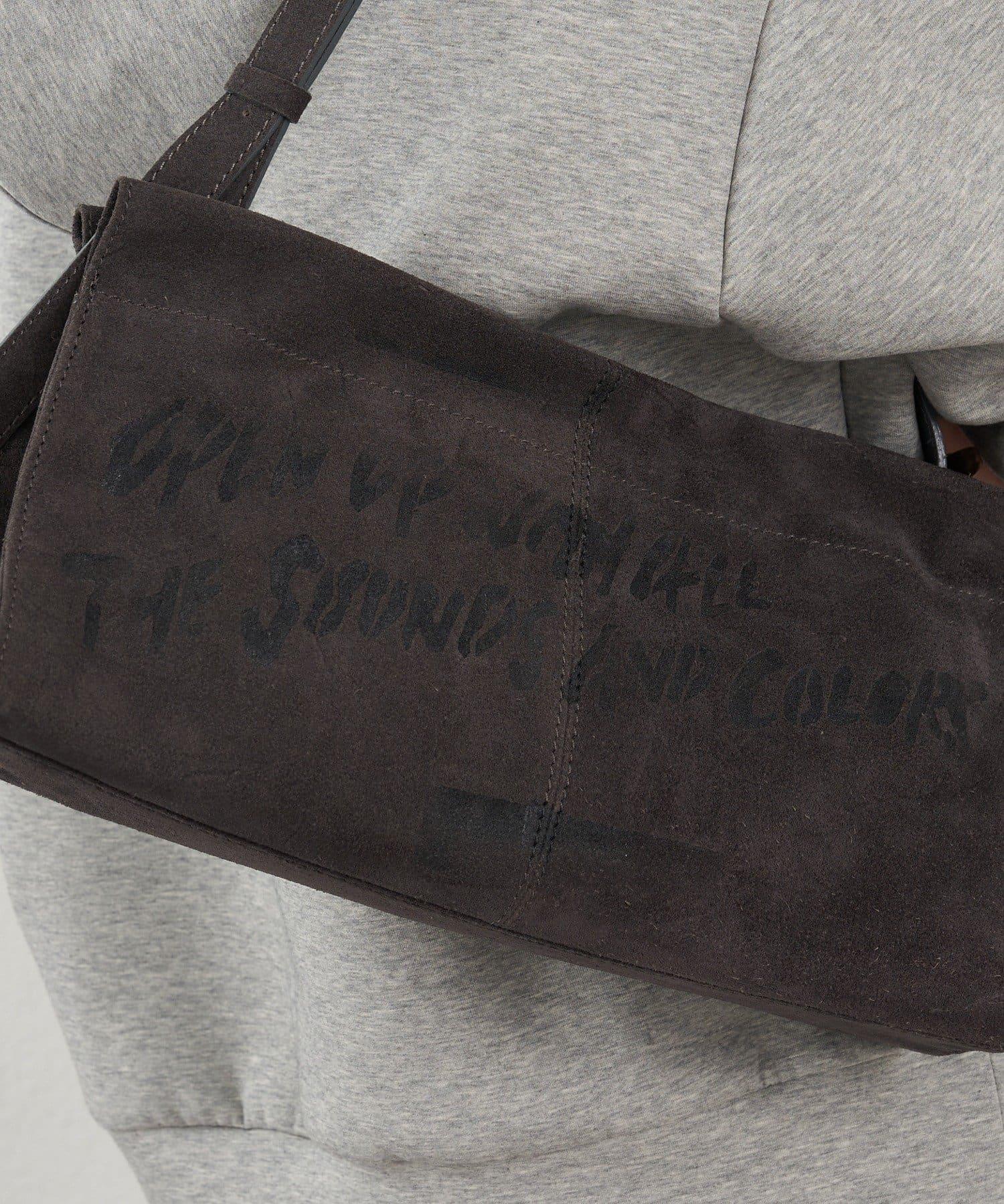 這款時尚單品採用溼潤的麂皮材質,並在簡潔的方形外形上採用了森谷勉的模板藝術。