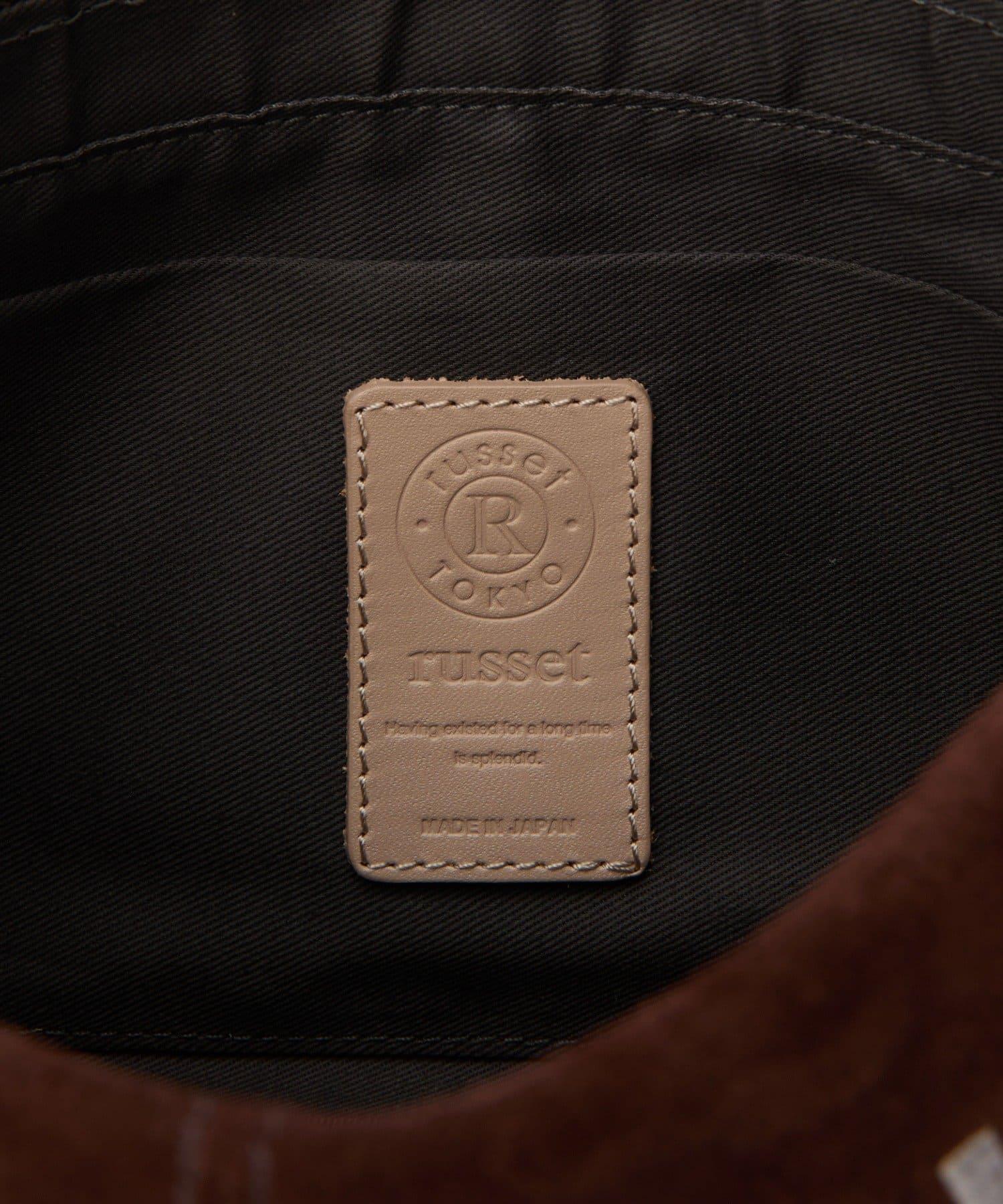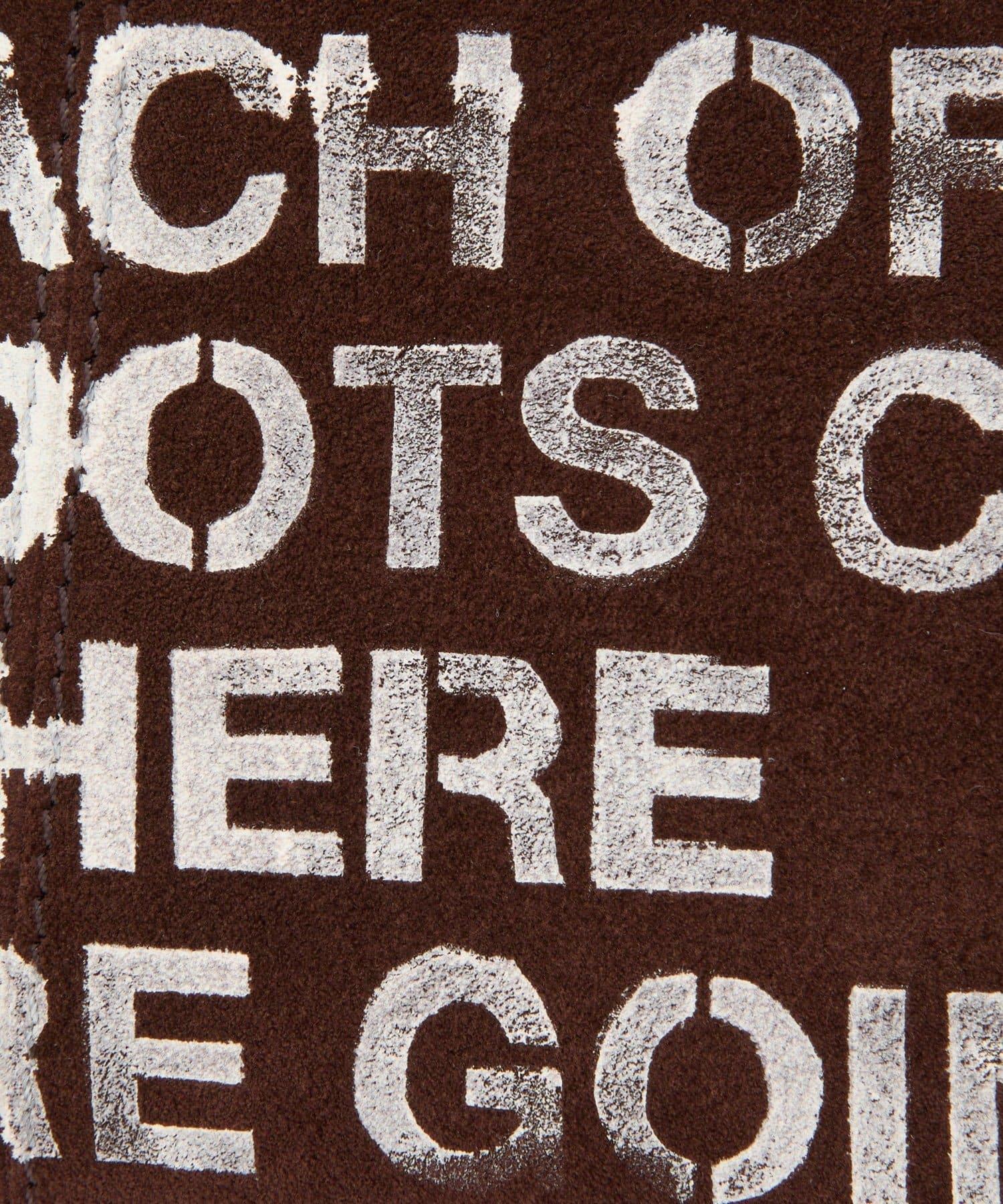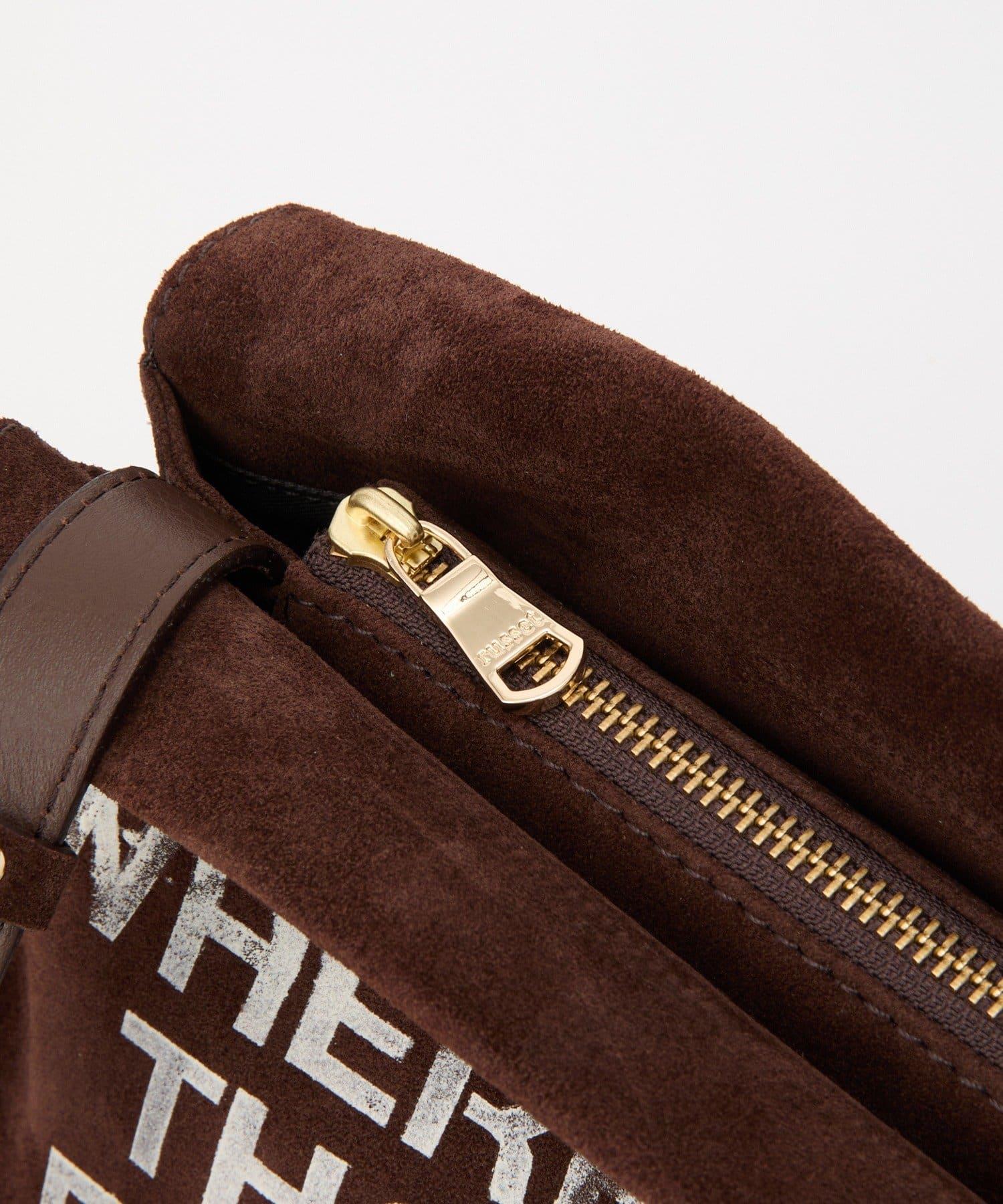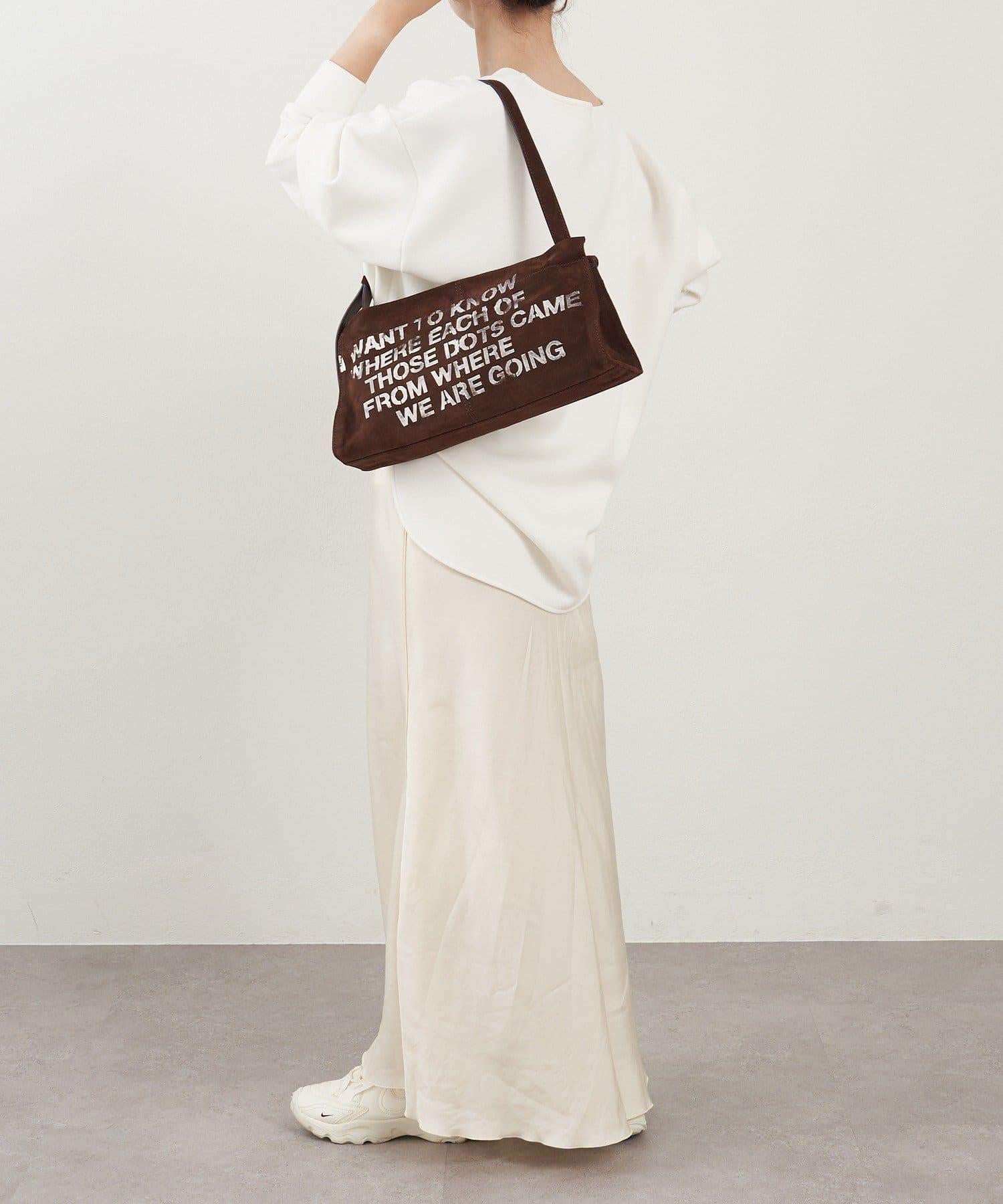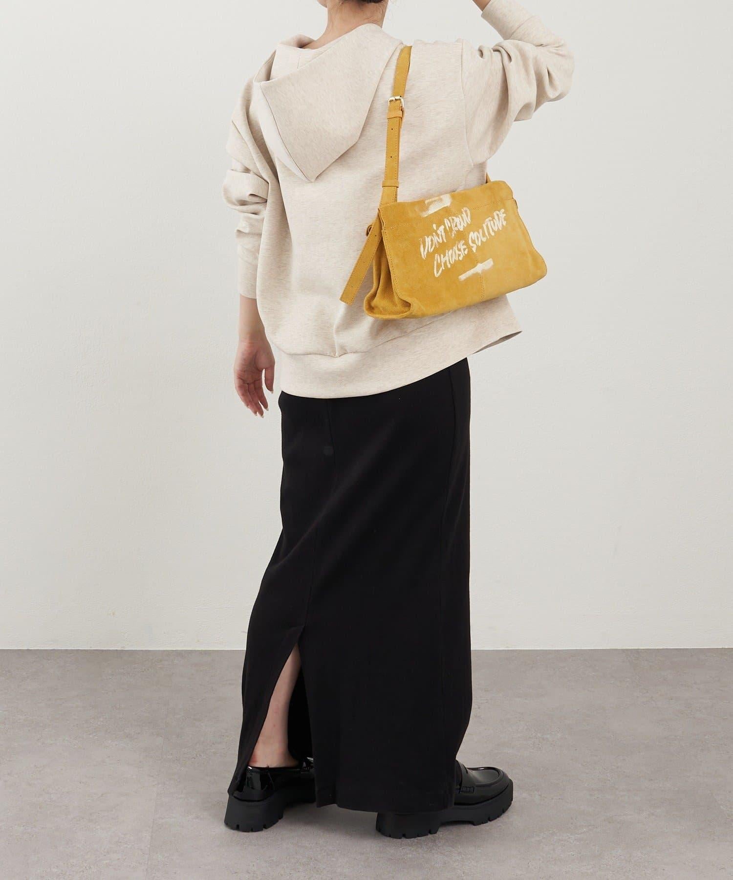 這款時尚單品採用溼潤的麂皮材質,並在簡潔的方形外形上採用了森谷勉的模板藝術。