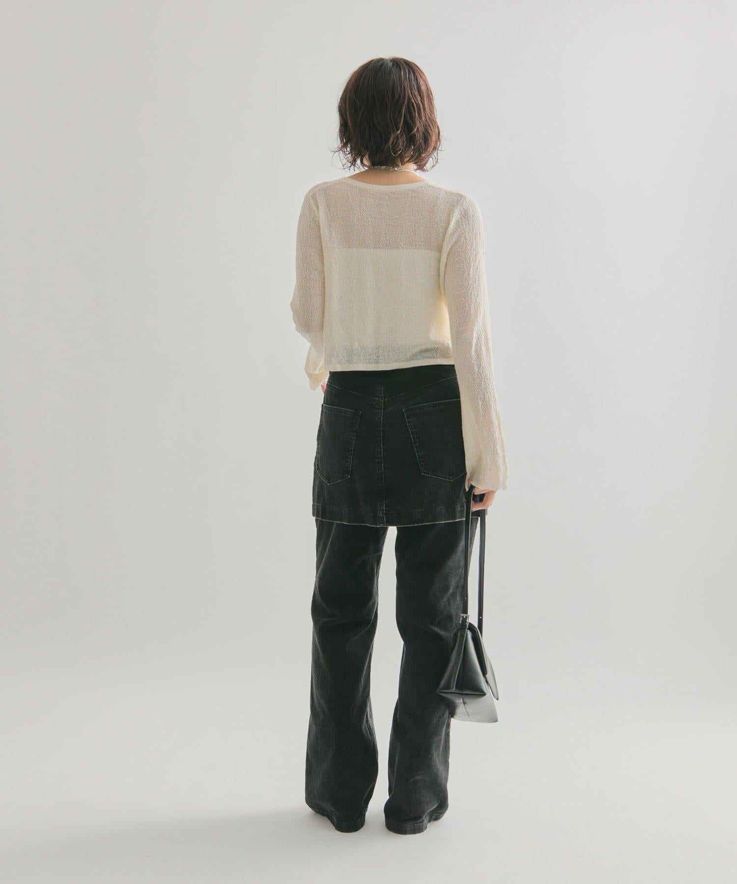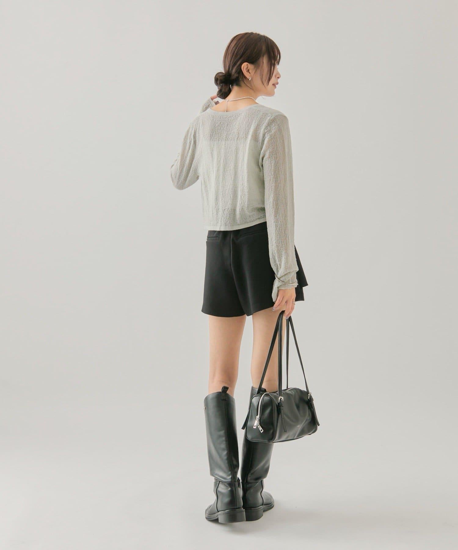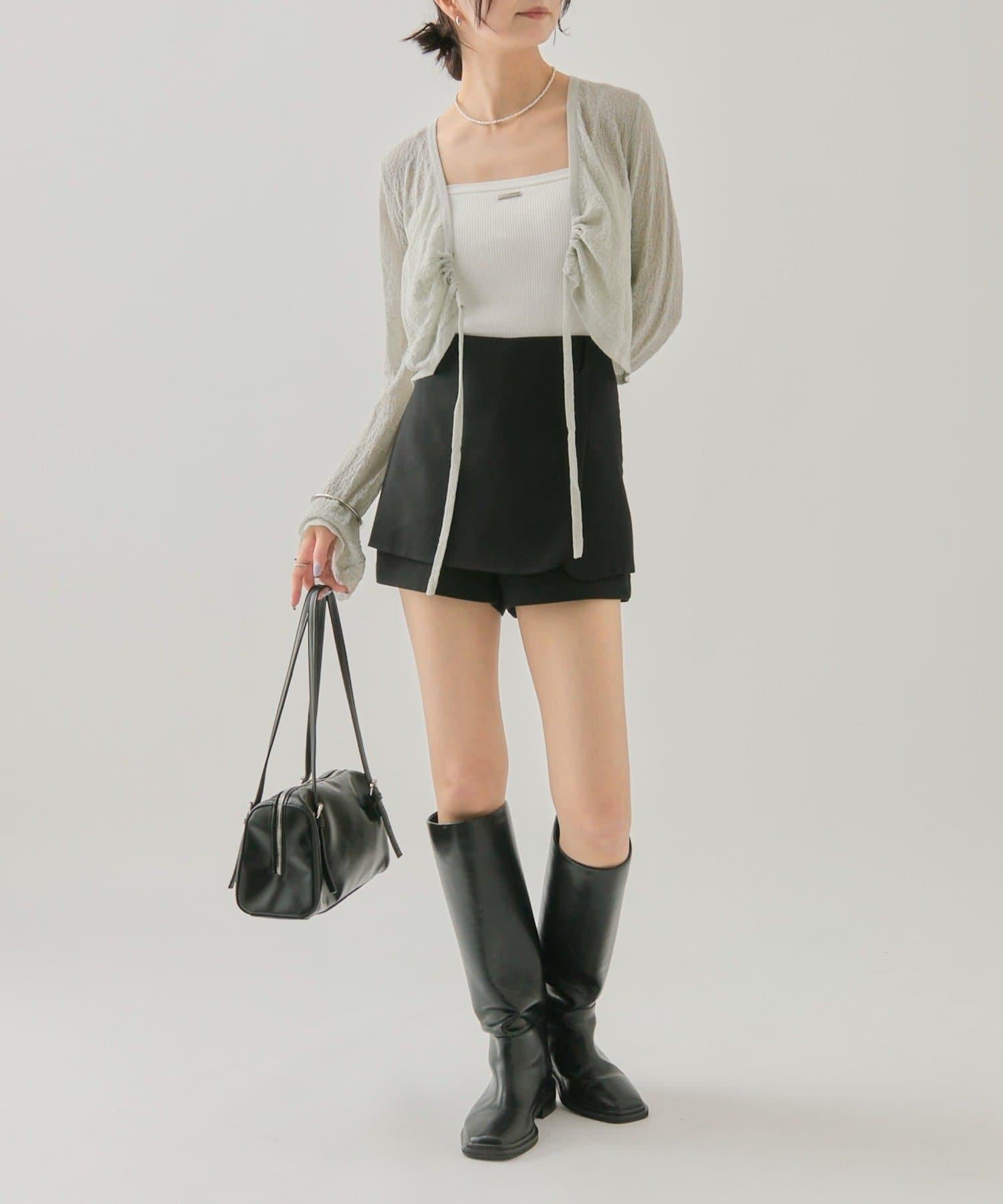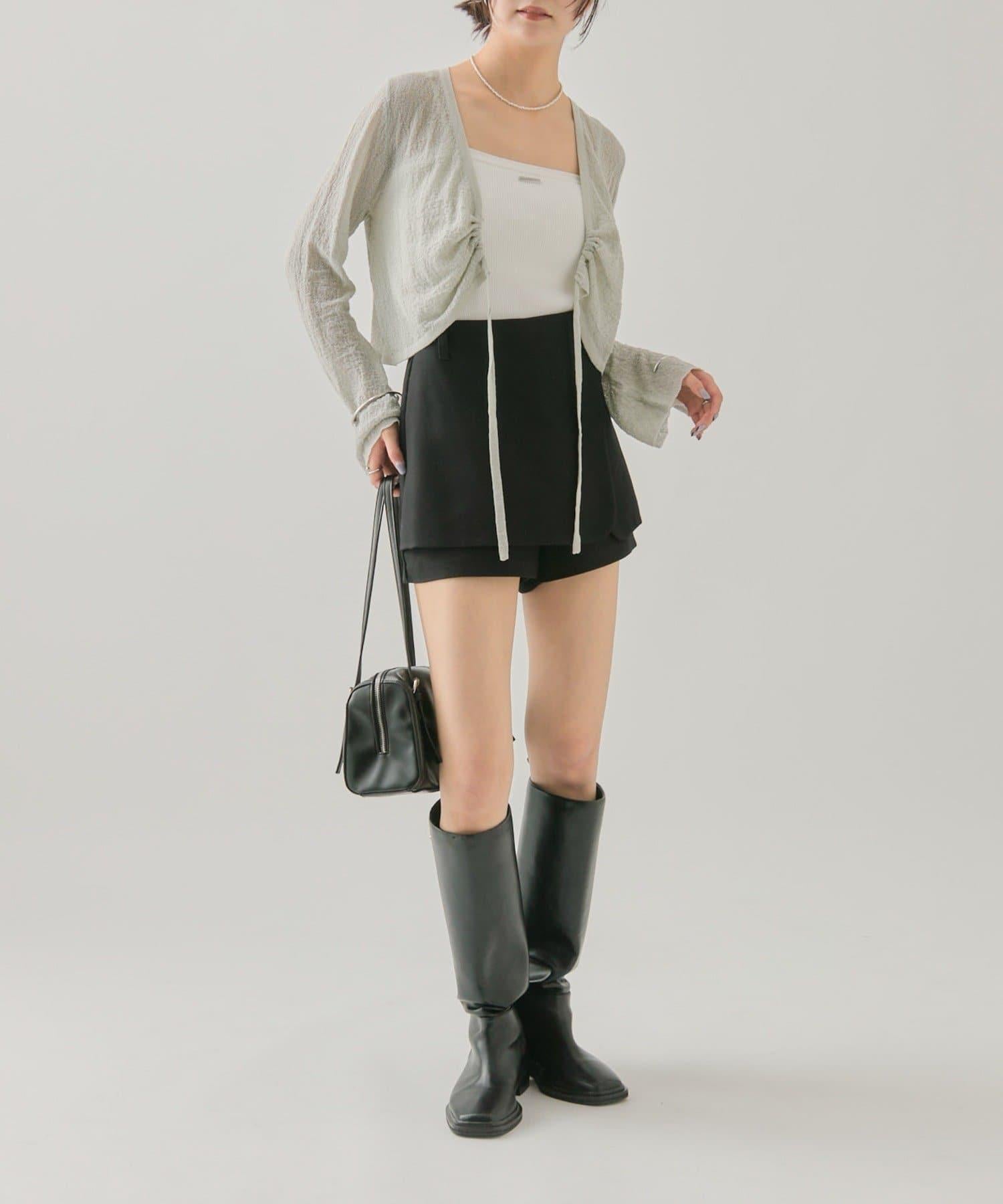 因為是短款長裙,所以搭配高腰單品也很可愛。