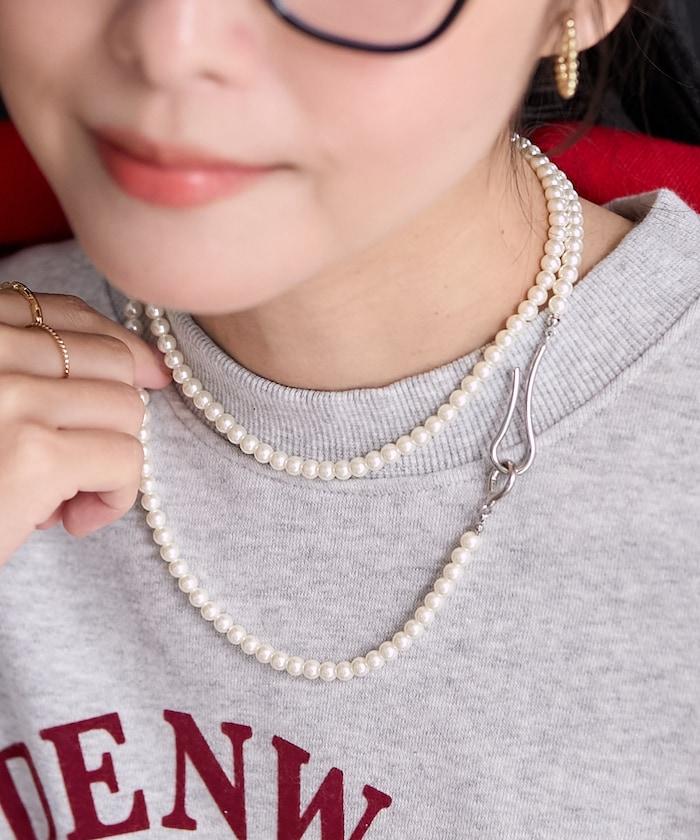 這款珍珠項鍊非常適合搭配時尚、經典的款式。與針織衫和運動衫等休閒單品搭配,打造寬鬆優雅的造型。它還能與夾克和襯衫搭配,適合從辦公室到日常穿著的各種場合。它的長度較長,可與其他項鍊疊戴,盡享本季的多層次風格。