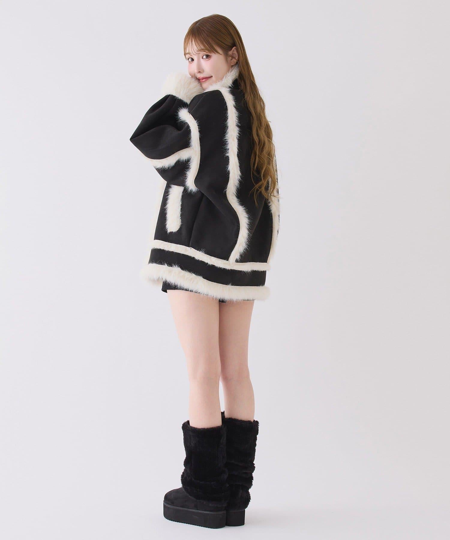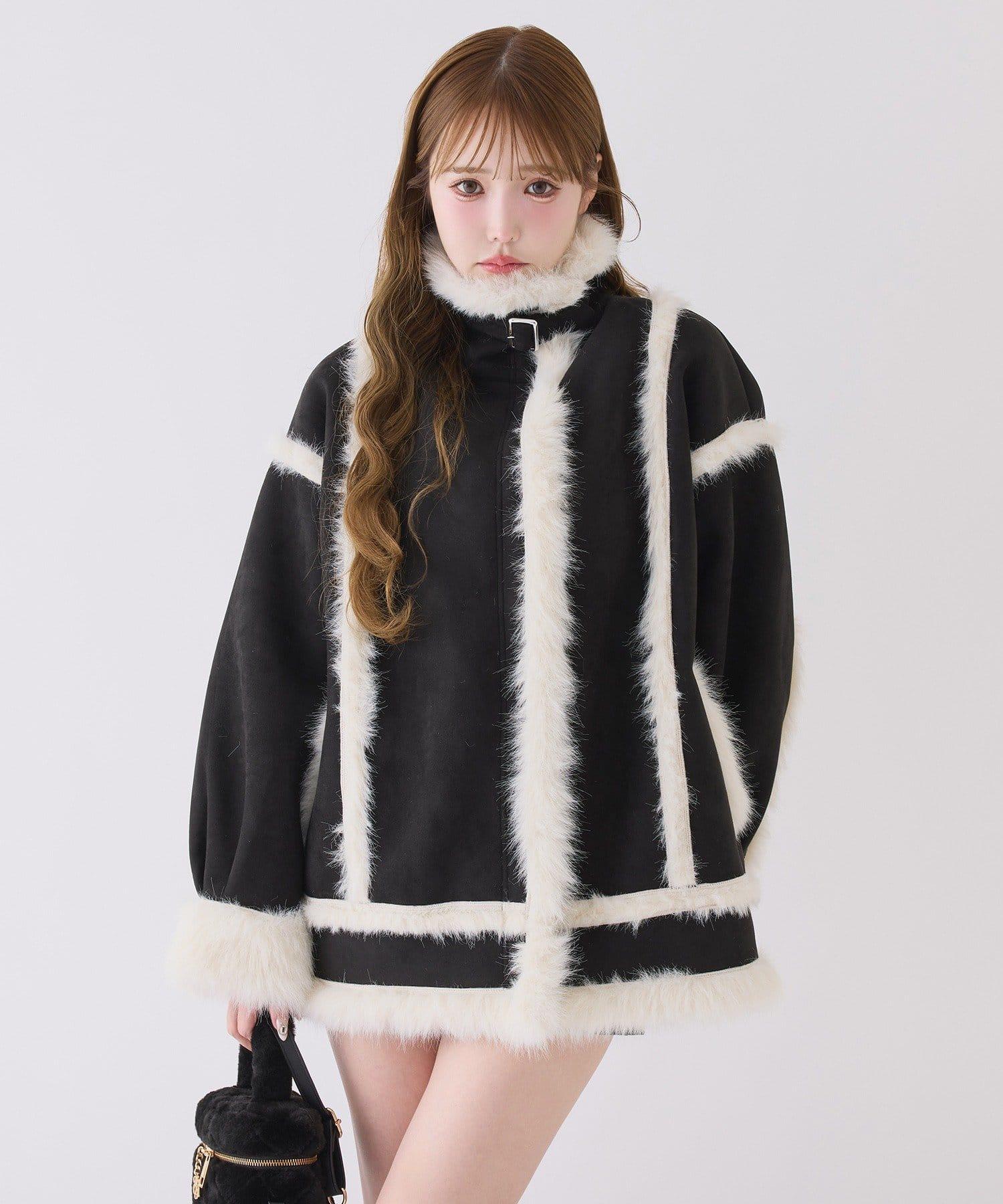 中長款大衣,採用柔軟蓬鬆的仿毛絨面料製成。