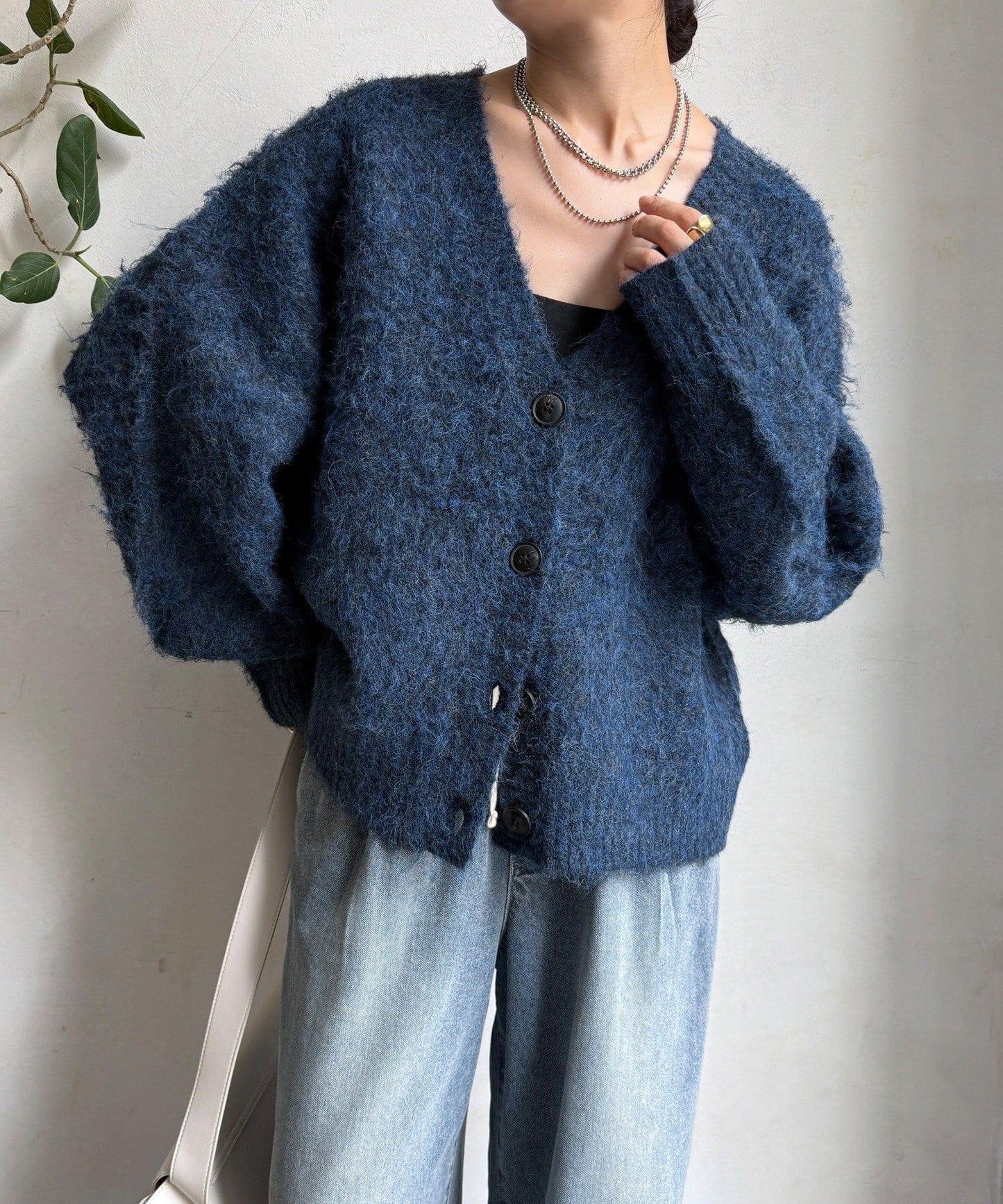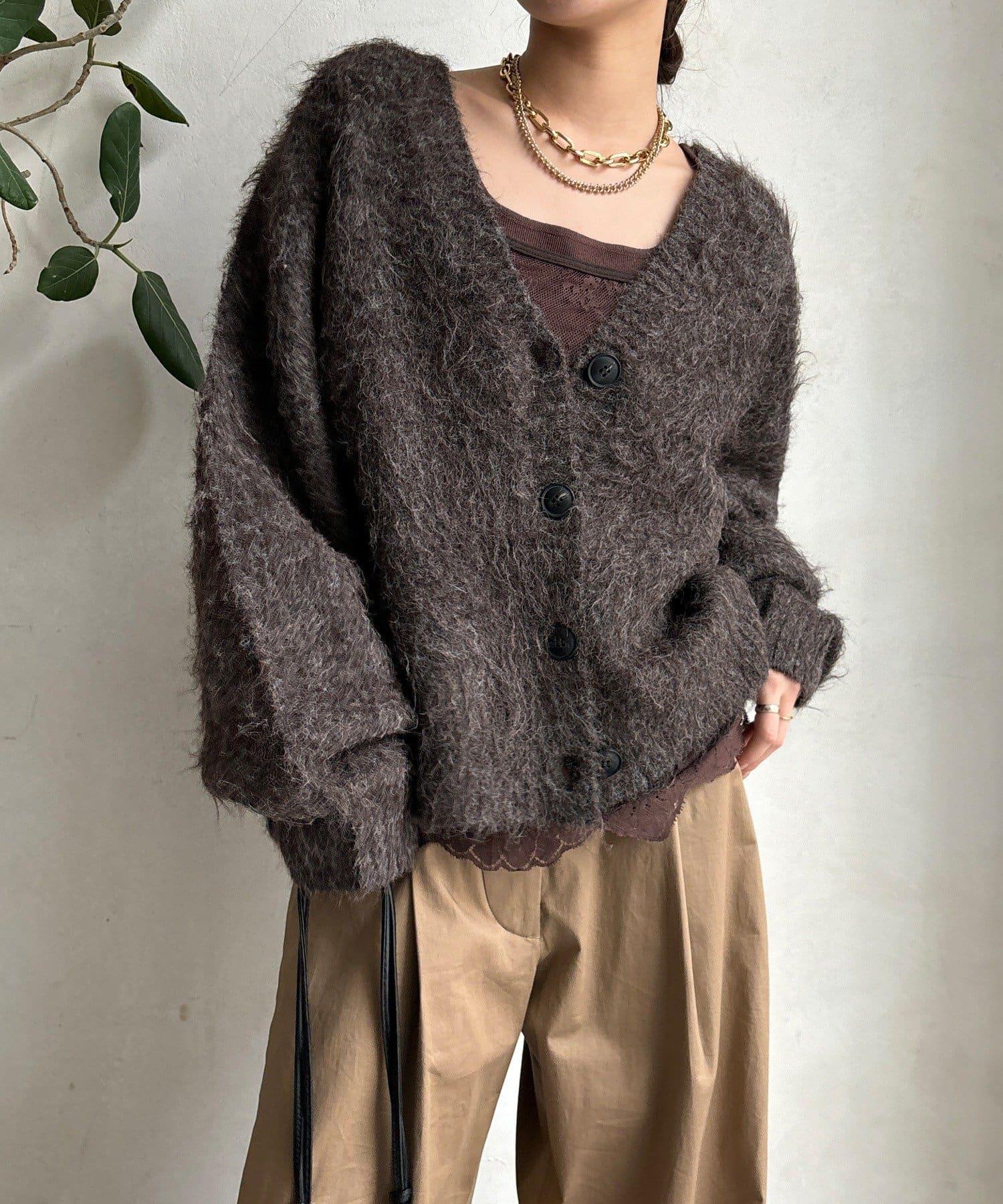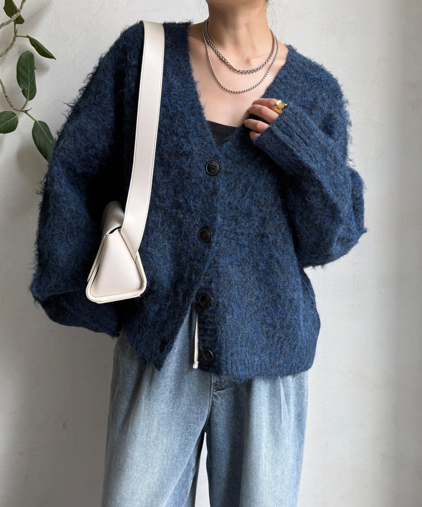 柔軟輕柔。充滿秋冬氣息的絨毛 V 領開衫