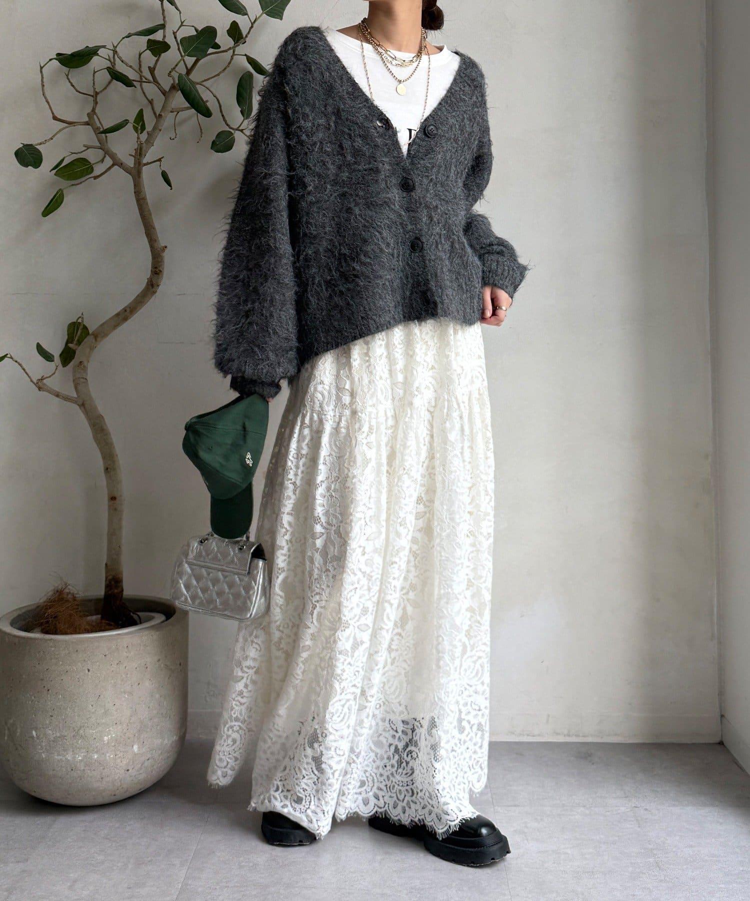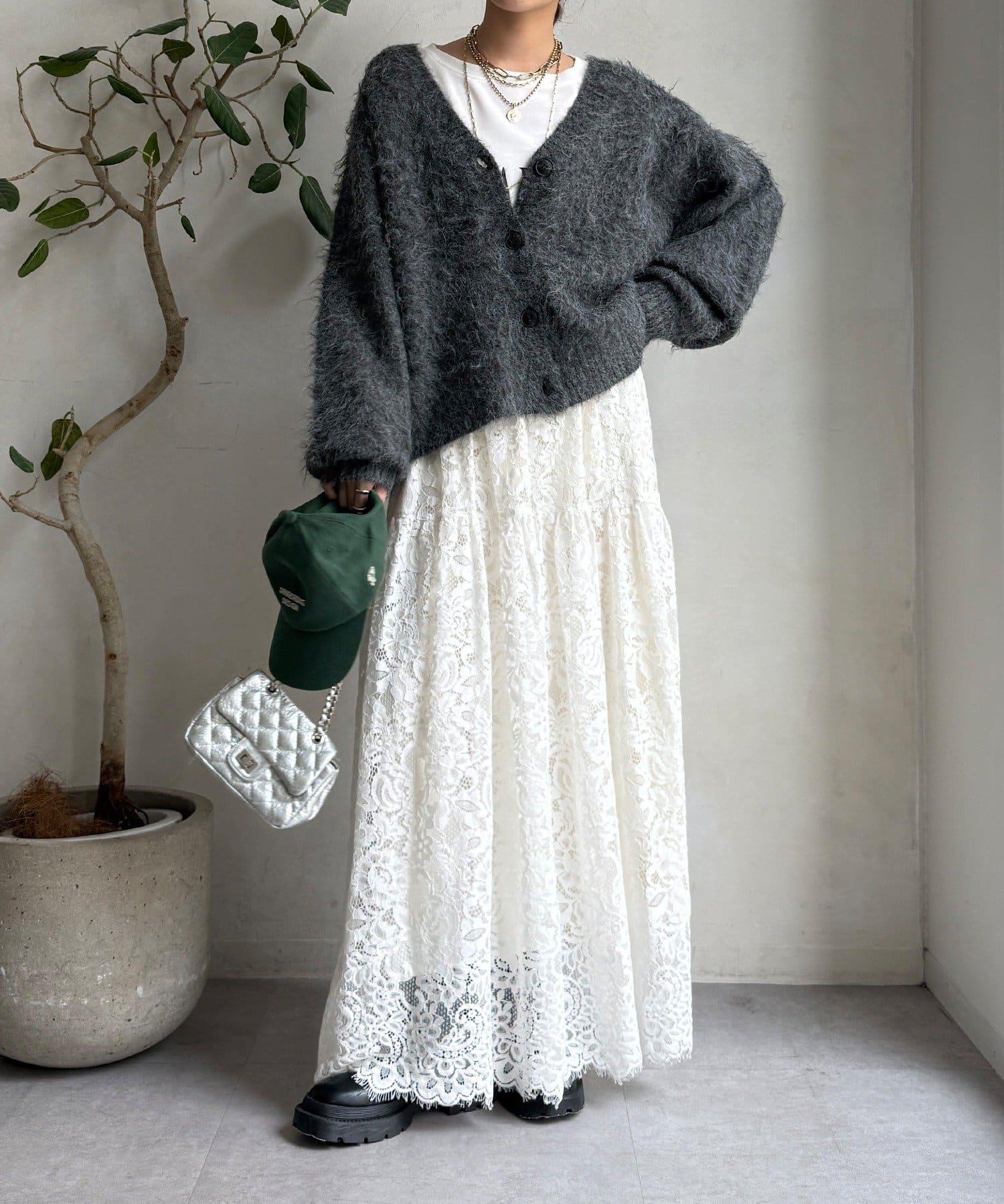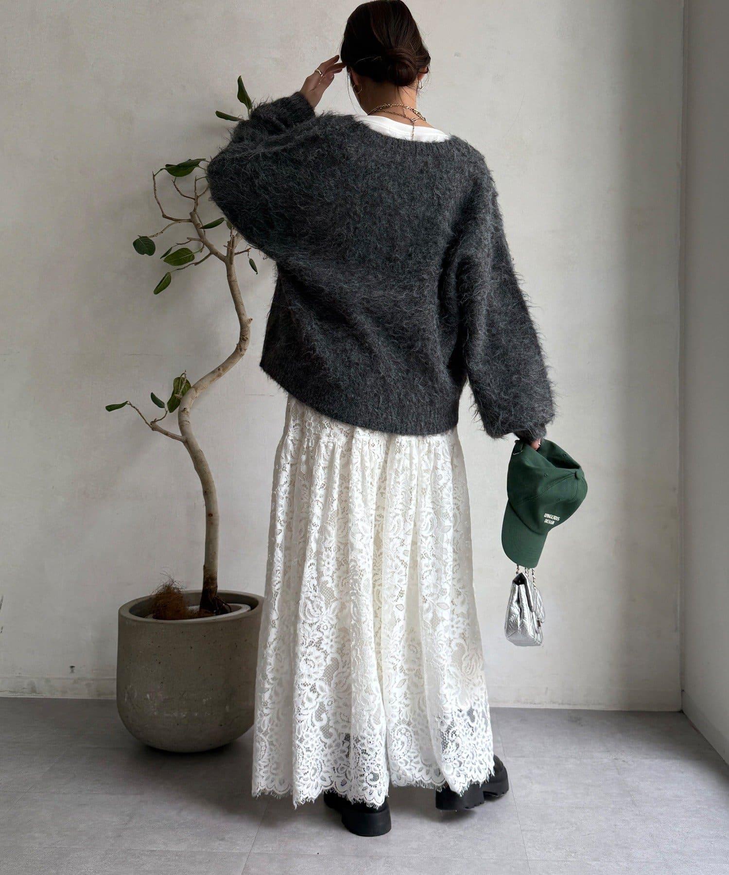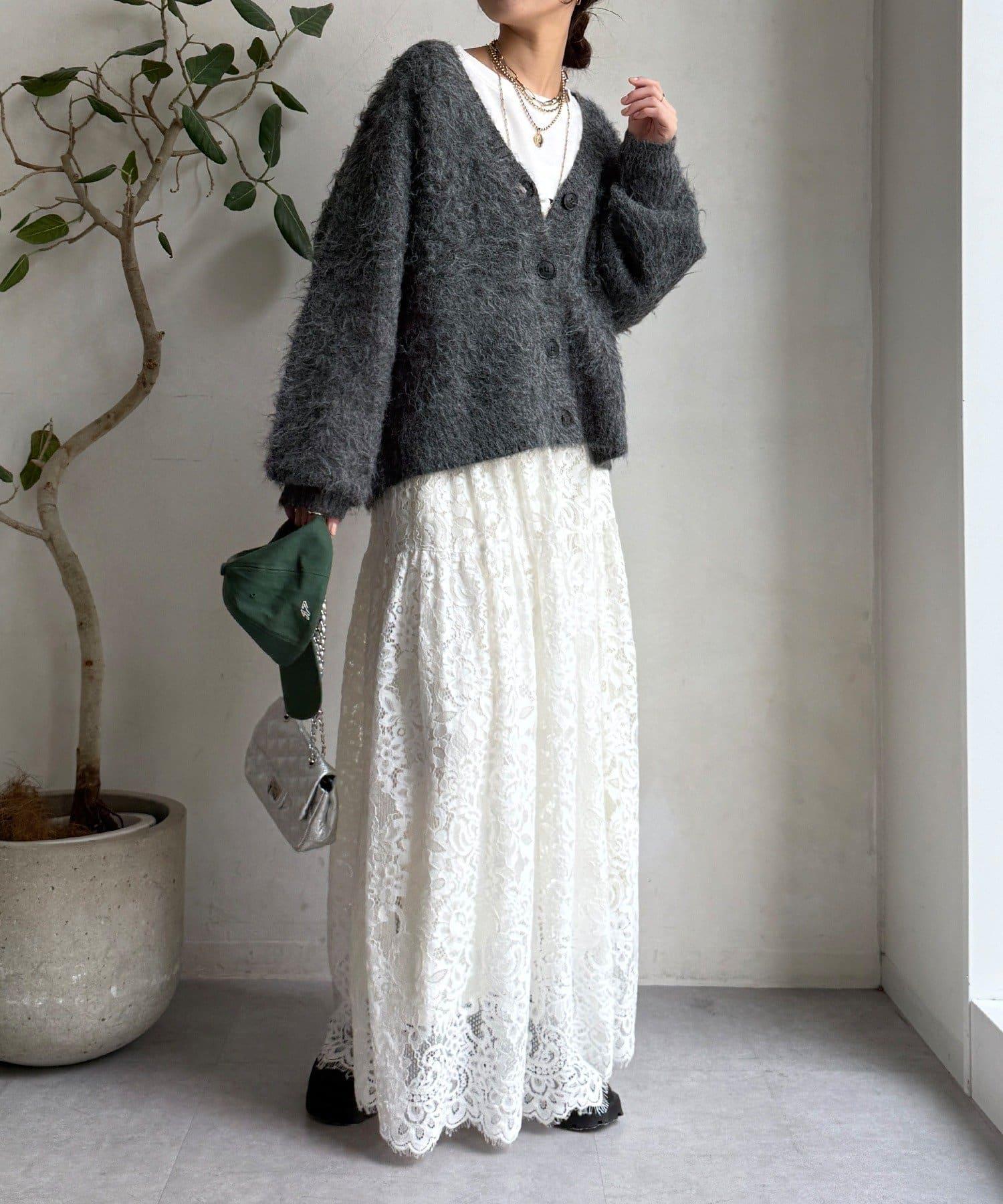 柔軟輕柔。充滿秋冬氣息的絨毛 V 領開衫