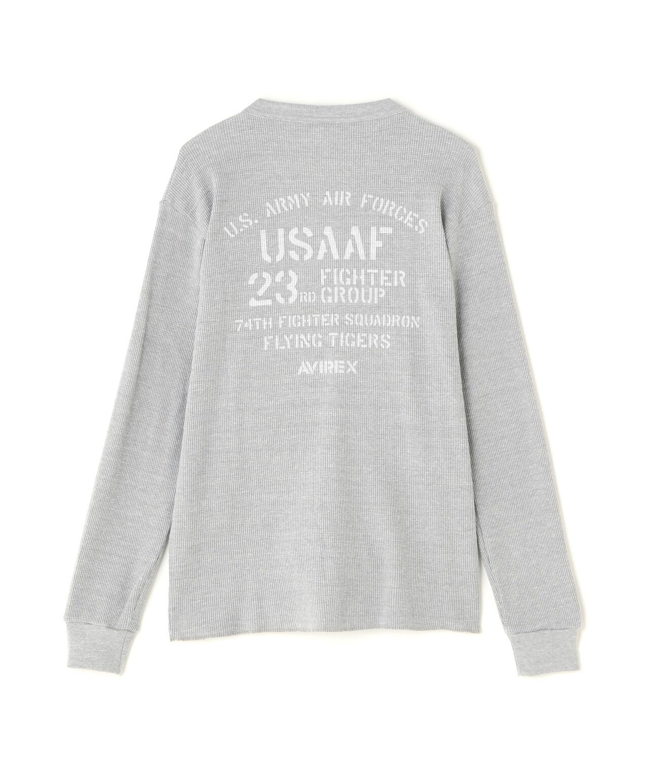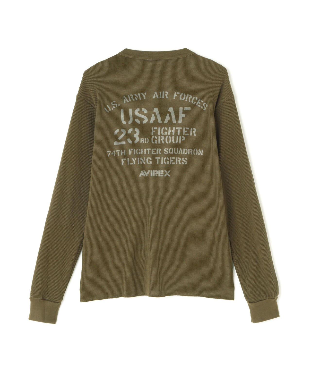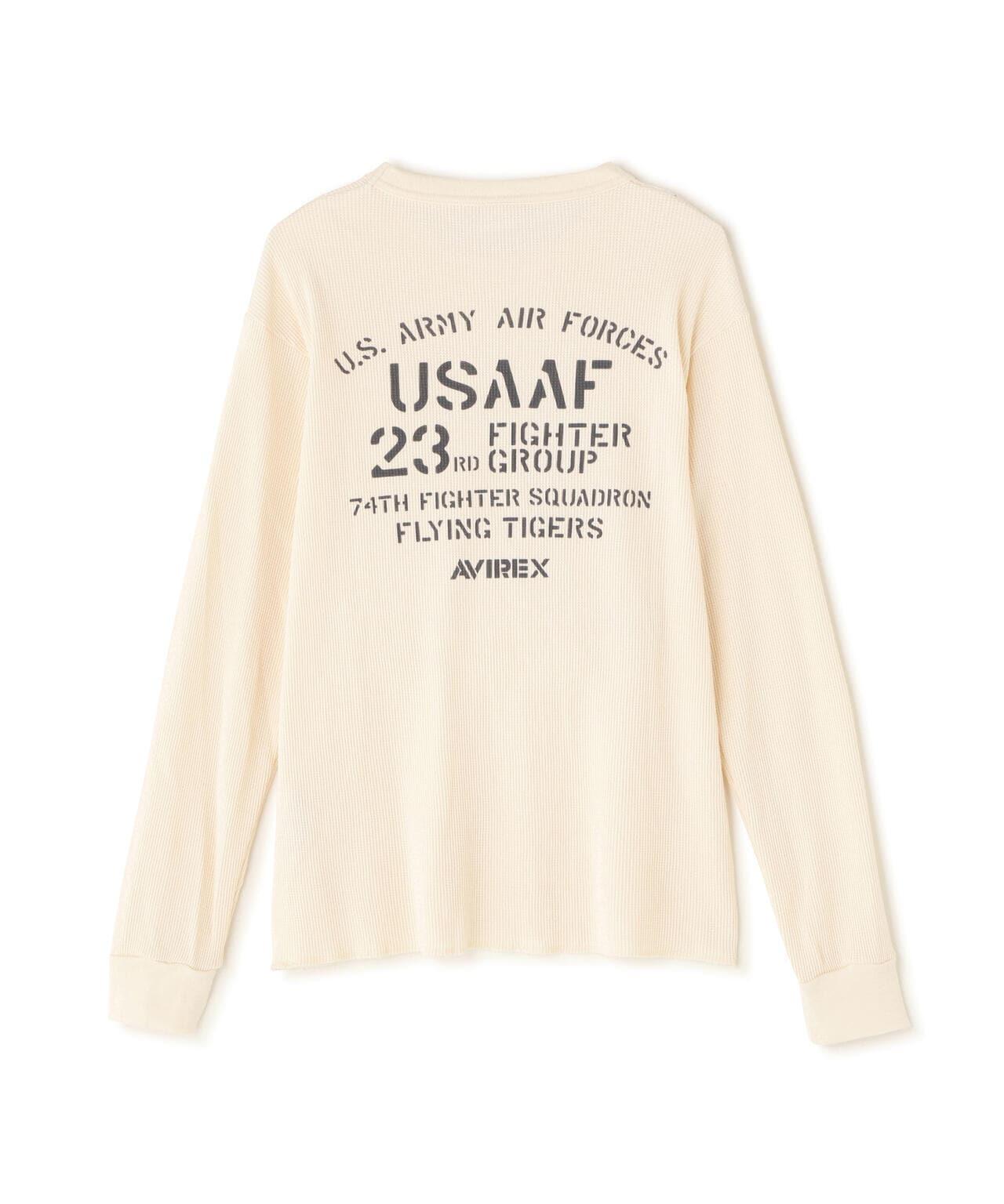 AVIREX官方商城] <商品詳情> - 華夫格面料長袖T恤 - 美國空軍FLYING TIGERS部隊圖案 - 面料使用棉和聚酯纖維 - 速幹 - 緊身剪裁 [AVIREX / 艾維雷克] 1975年,美國空軍成立了AVIREX公司。1975 年,AVIREX 成為美國空軍的承包商,並通過提供飛行夾克大大提高了其知名度。Avirex 源自軍方,以功能性設計所散發出的獨特美感為基礎。在《奪寶奇兵》、《壯志凌雲》和《孟菲斯美女》等電影中,Avirex 的獨特外觀都獲得了好評。其精益求精的設計和懷舊風味至今仍受到世界各地許多人的青睞。