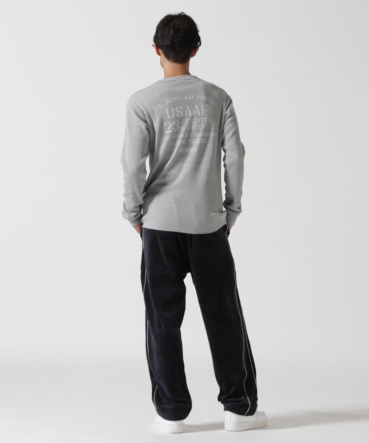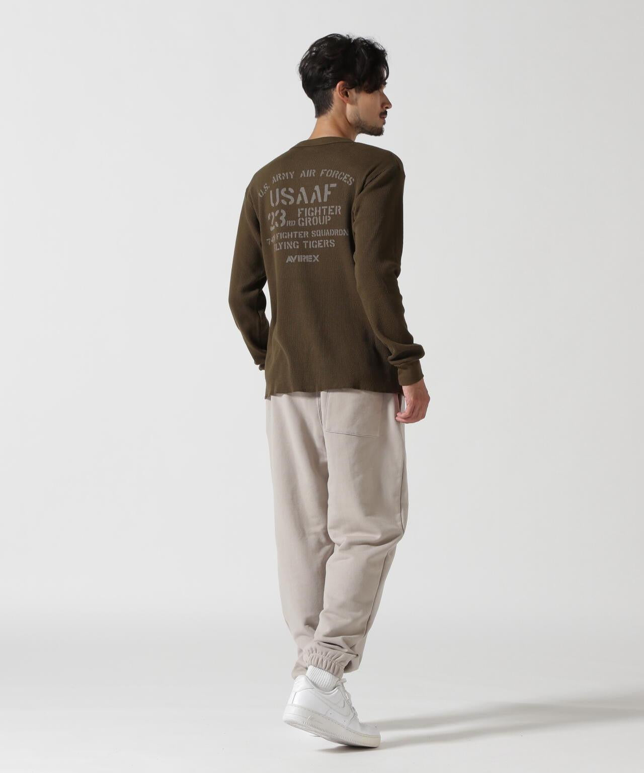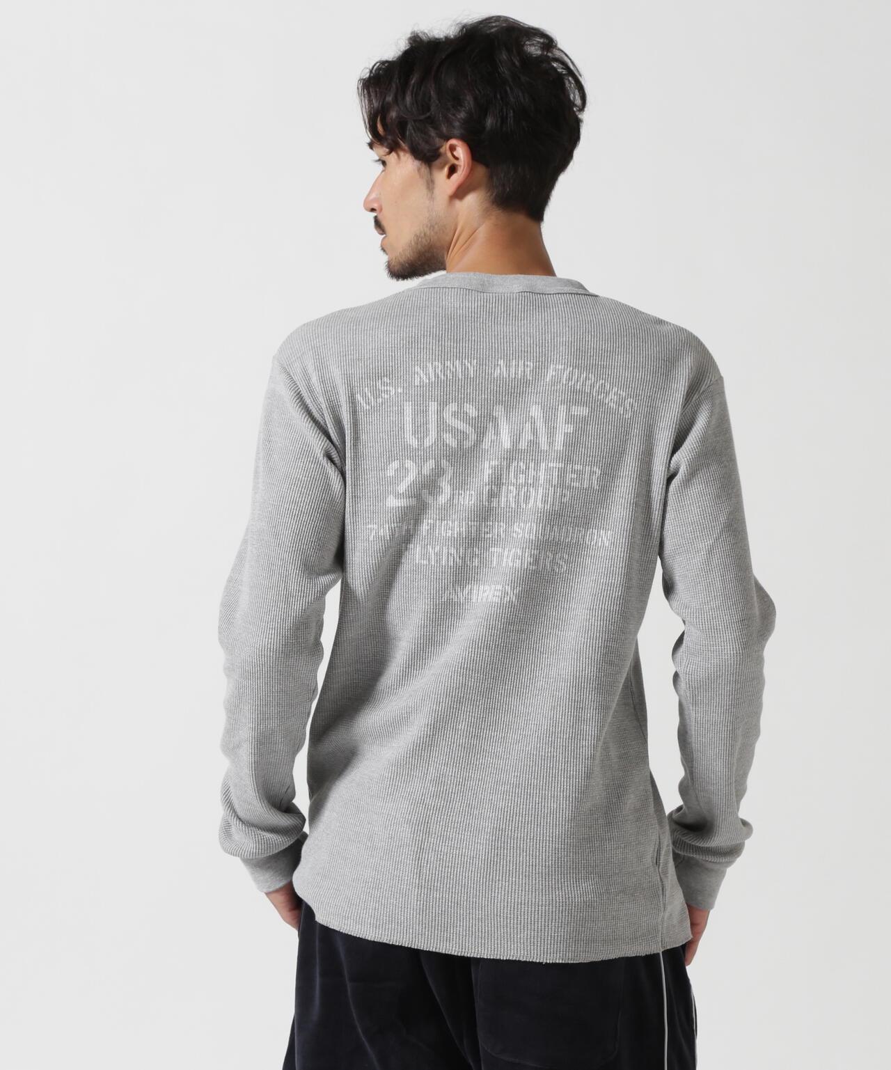 AVIREX官方商城] <商品詳情> - 華夫格面料長袖T恤 - 美國空軍FLYING TIGERS部隊圖案 - 面料使用棉和聚酯纖維 - 速幹 - 緊身剪裁 [AVIREX / 艾維雷克] 1975年,美國空軍成立了AVIREX公司。1975 年,AVIREX 成為美國空軍的承包商,並通過提供飛行夾克大大提高了其知名度。Avirex 源自軍方,以功能性設計所散發出的獨特美感為基礎。在《奪寶奇兵》、《壯志凌雲》和《孟菲斯美女》等電影中,Avirex 的獨特外觀都獲得了好評。其精益求精的設計和懷舊風味至今仍受到世界各地許多人的青睞。
