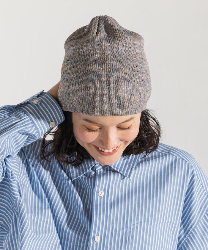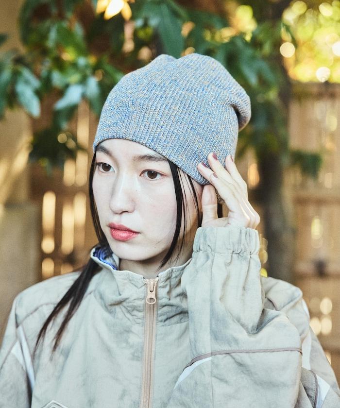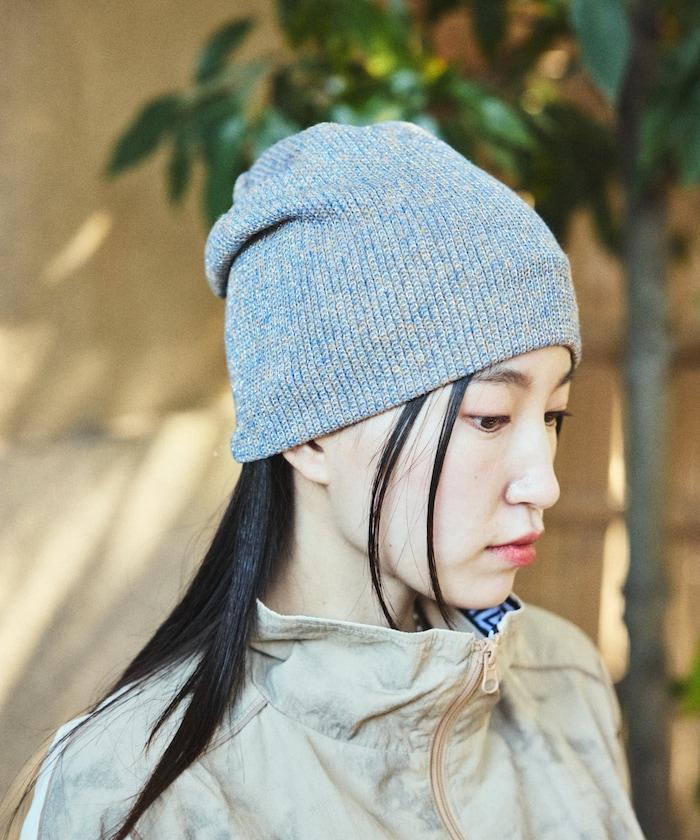 這是一款混合了蹩腳紗線的小圓帽,適合春夏季節穿著。
