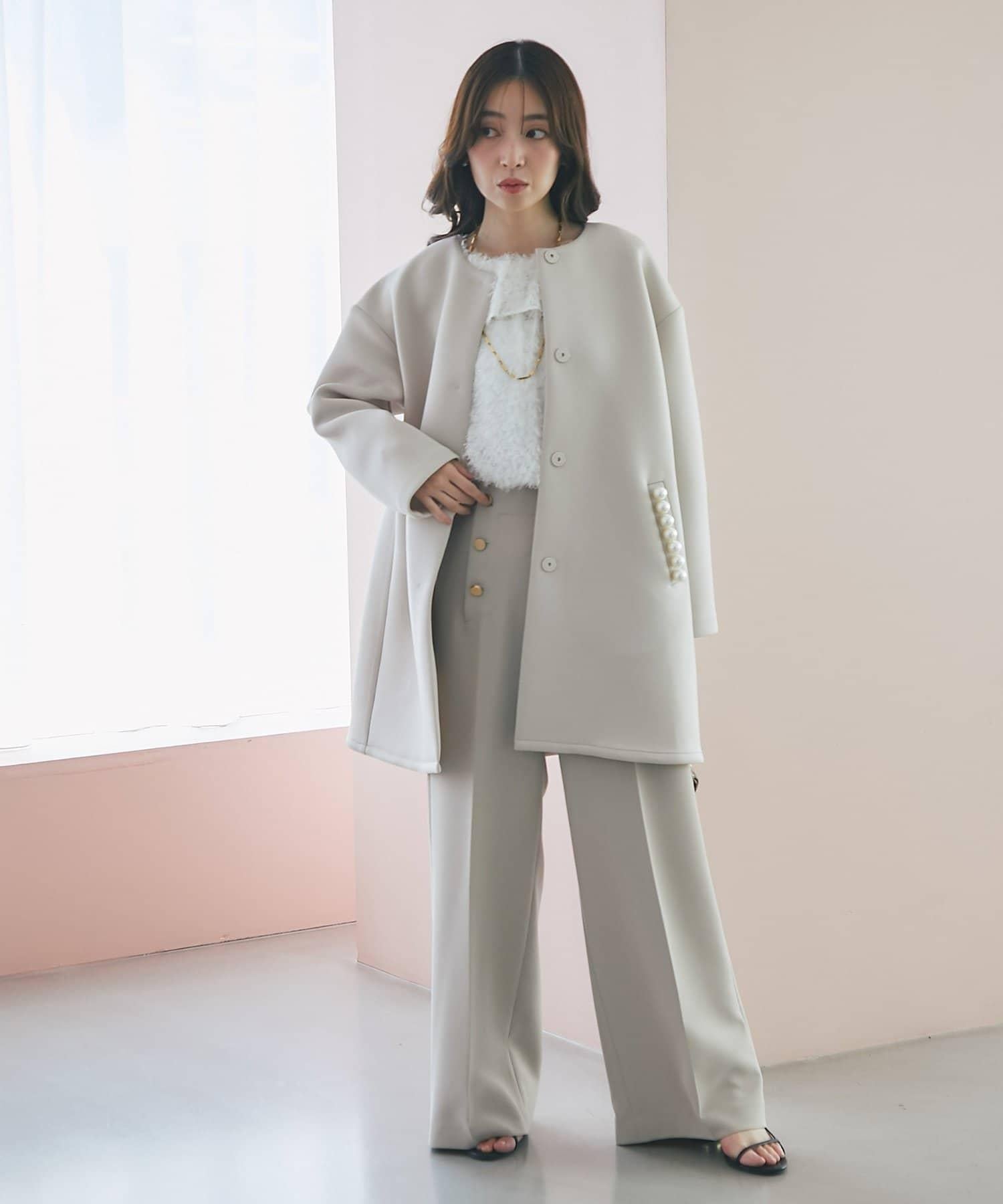 厚厚的袖子上有 8/10袖子規格的鬆緊袖口,因此手腕看起來很纖細。
