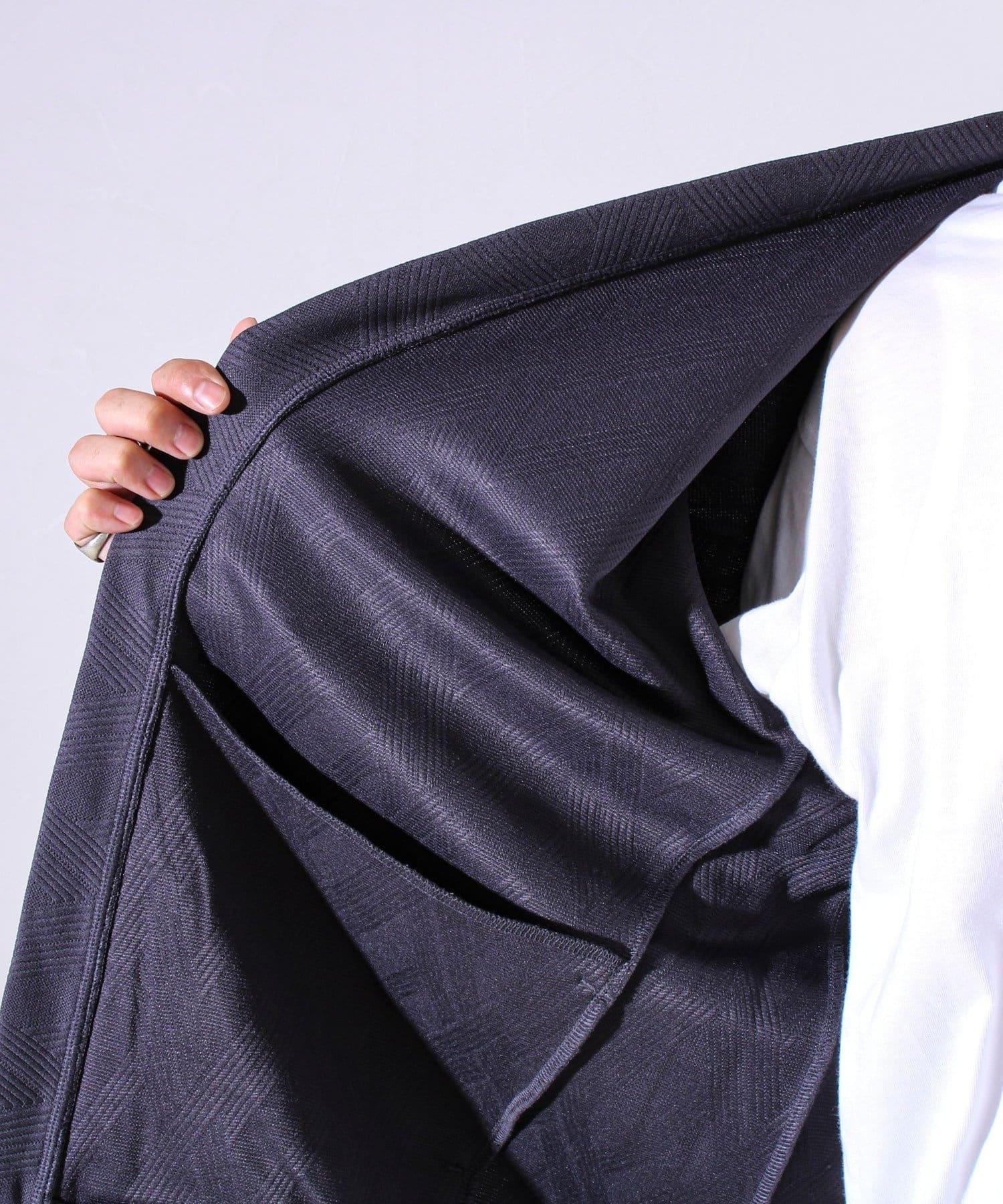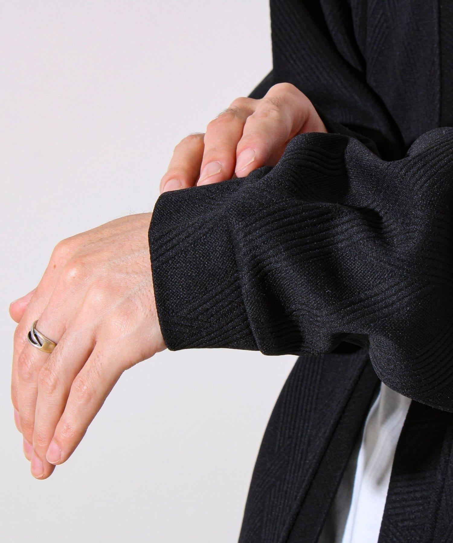 表面具有立體感的蓬鬆提花面料給人以優雅的印象。