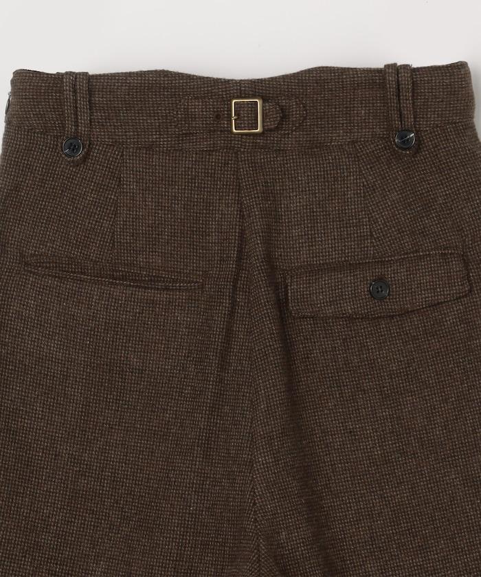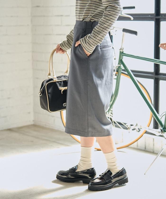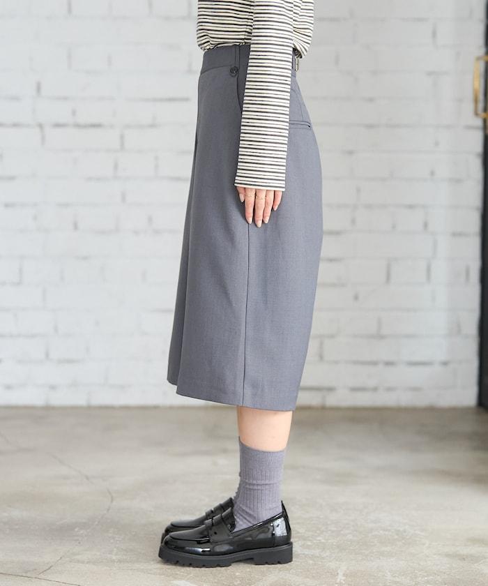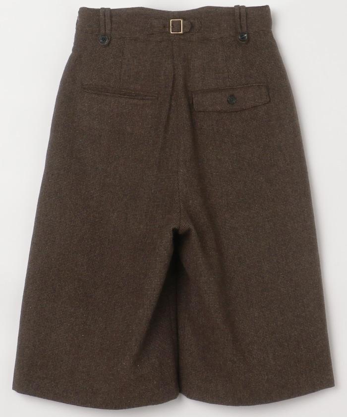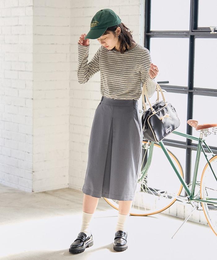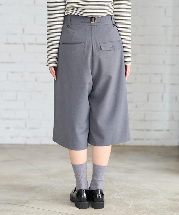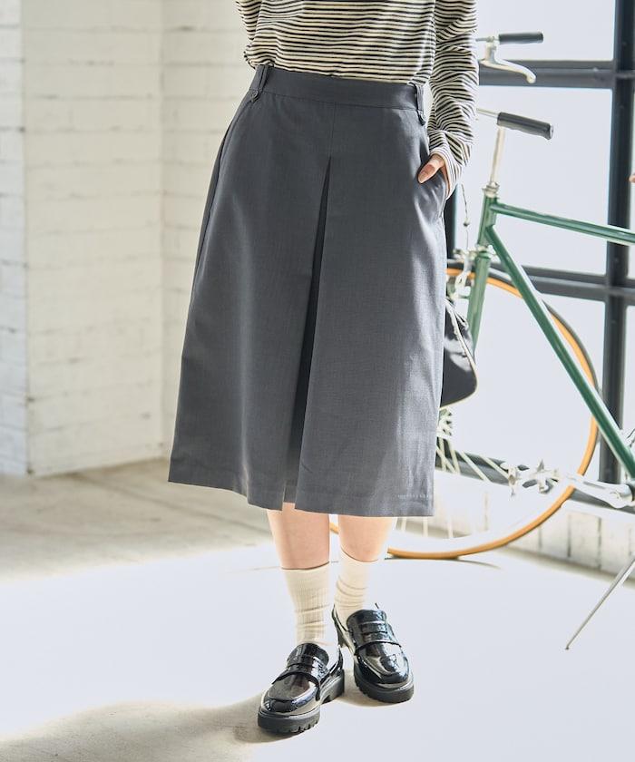 半身長褲,前襟內收,看起來像裙子。
