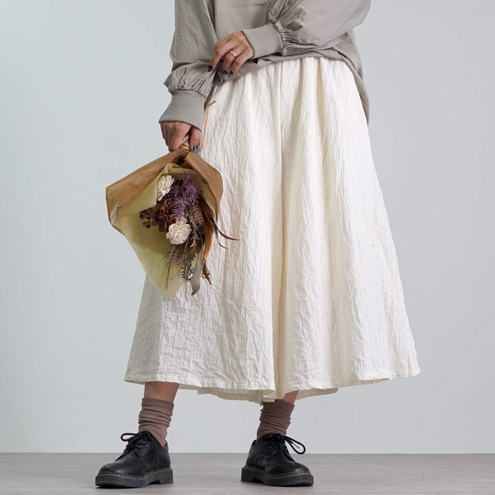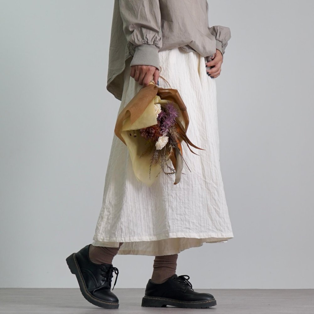 "交織編織物 "為這款單品增添了一種特別的感覺。它的結構複雜,需要熟練的製作技巧,雖然設計簡單,但獨特的花紋增加了對細節的關注感。下襬每當移動時都會輕盈擺動,營造出女性的優雅氣質,這也是吸引人的一點!