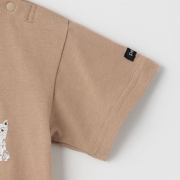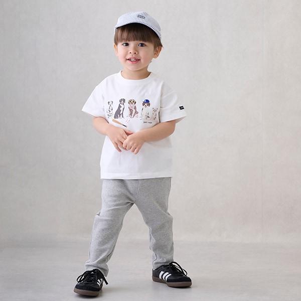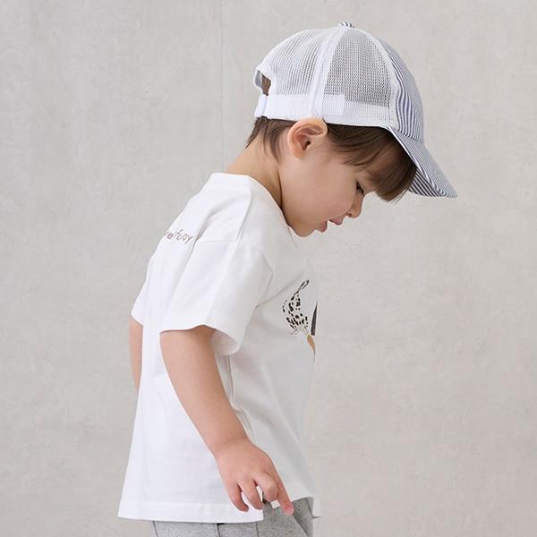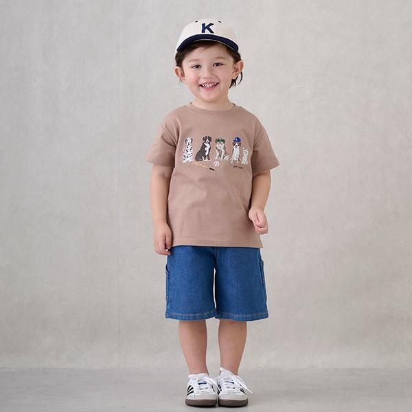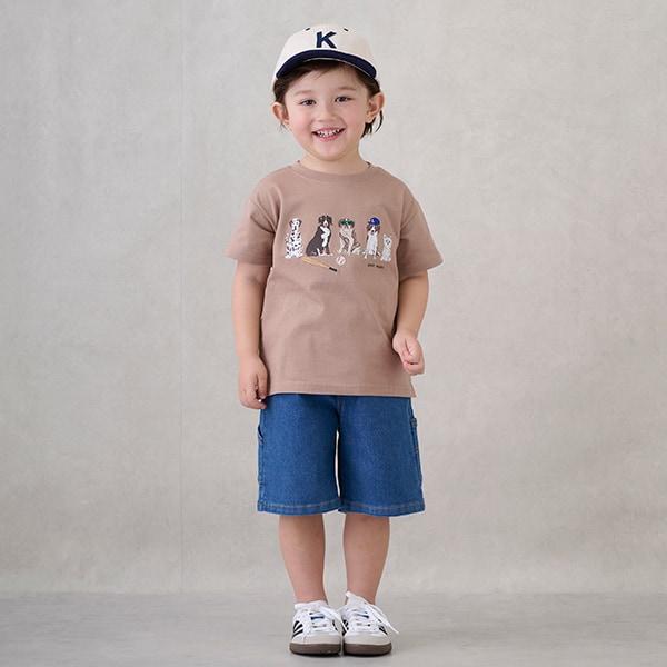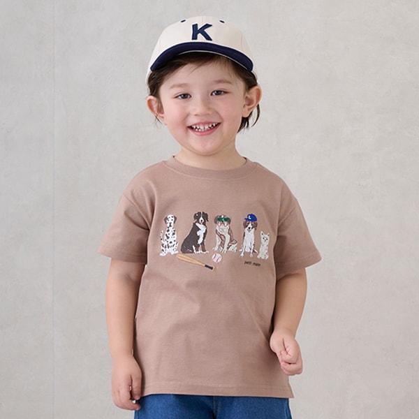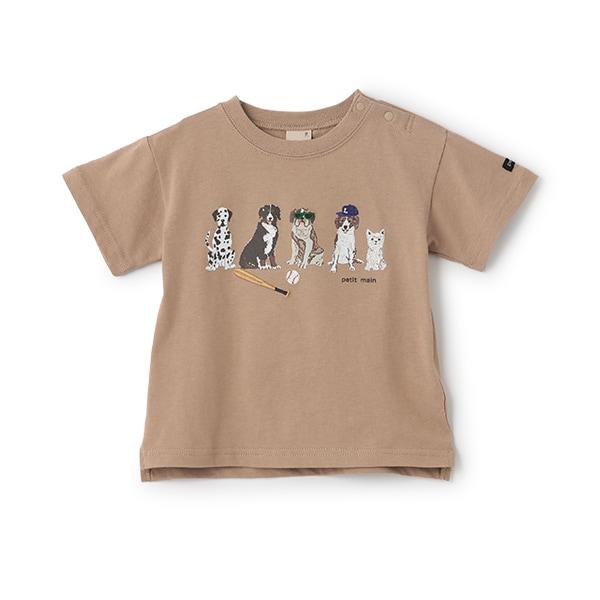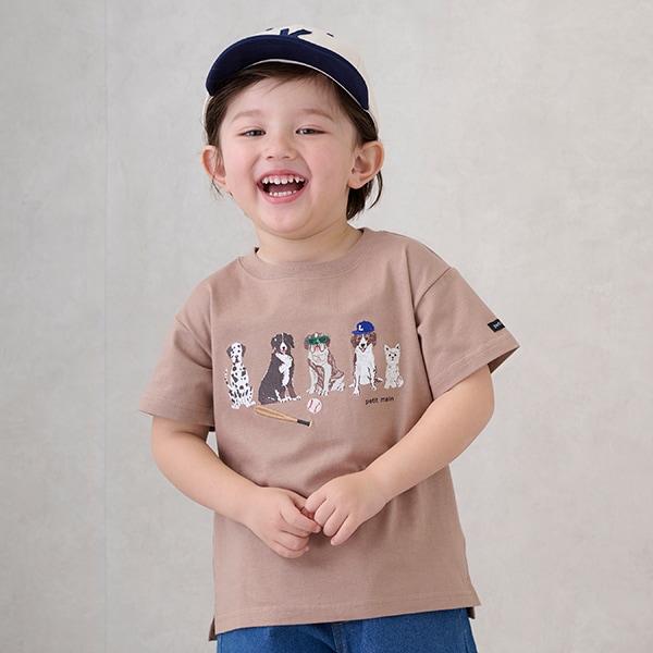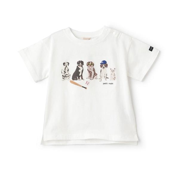 T恤上繡有太陽鏡和棒球相關圖案,時尚感十足。