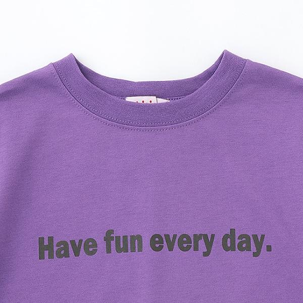 白色和紫色帶有讓每一天都充滿樂趣的簡單信息,背面是立體的品牌標誌設計。