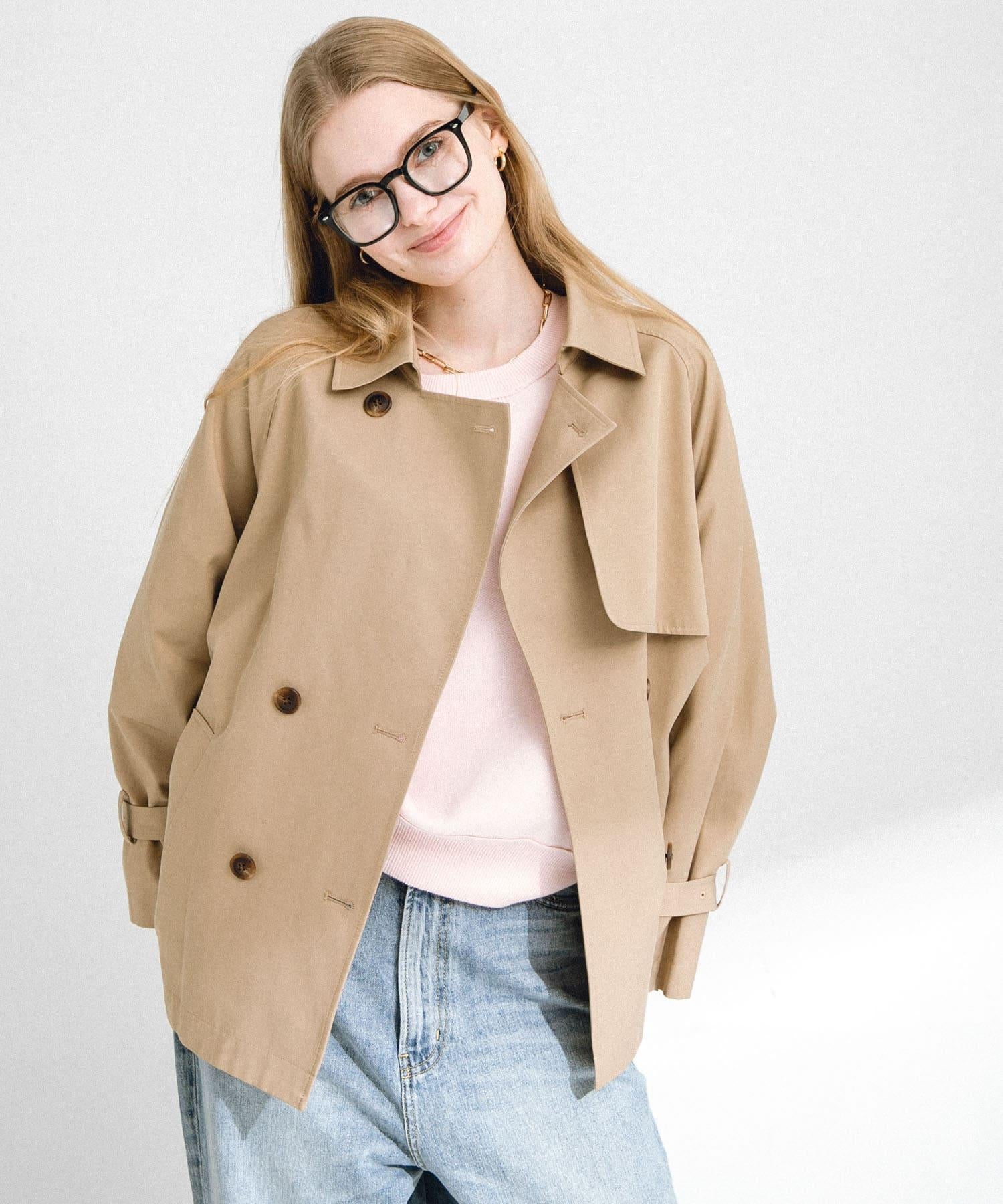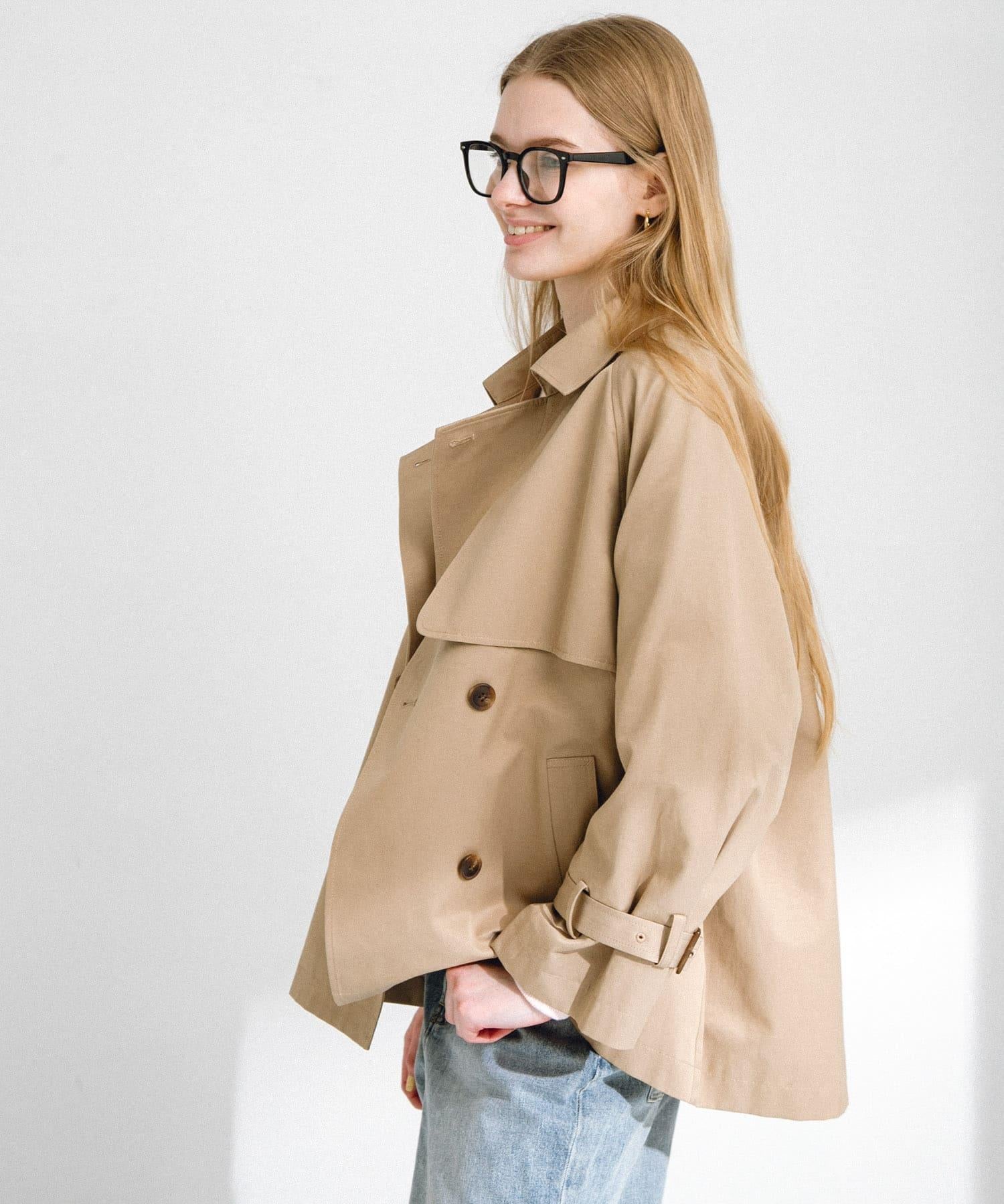 與標準的長款風衣不同,我們設計了空間恰到好處的短款廓形,便於搭配連衣裙和寬鬆的下裝。