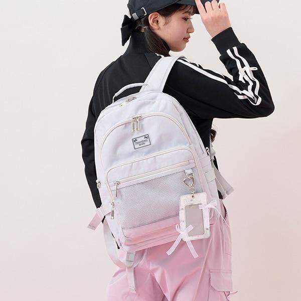 【防潑水】繫帶蝴蝶結卡包掛飾雙肩包