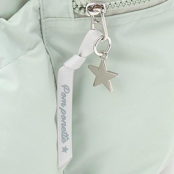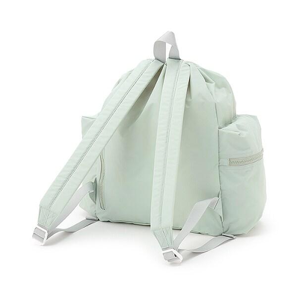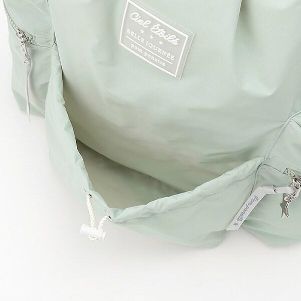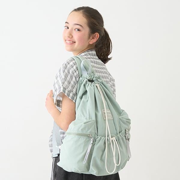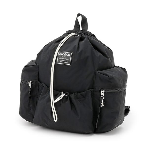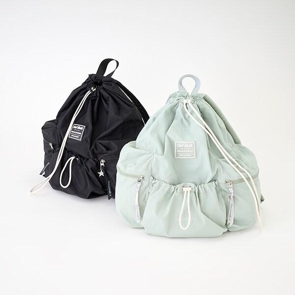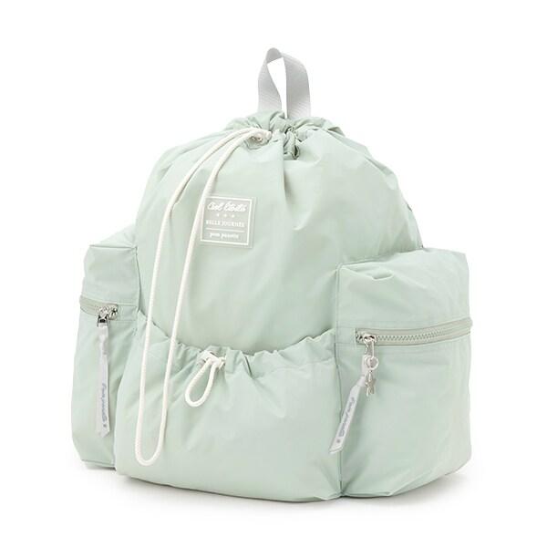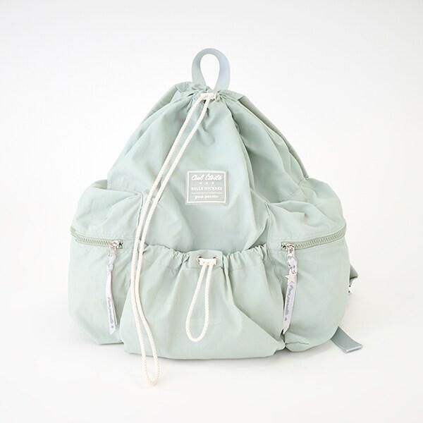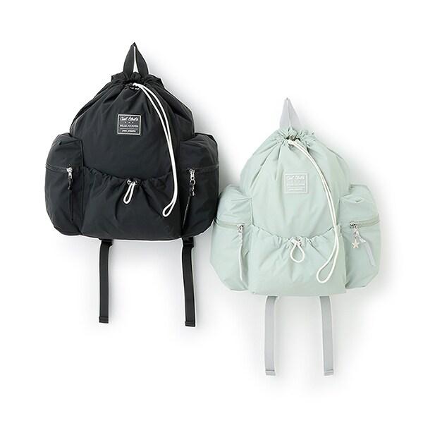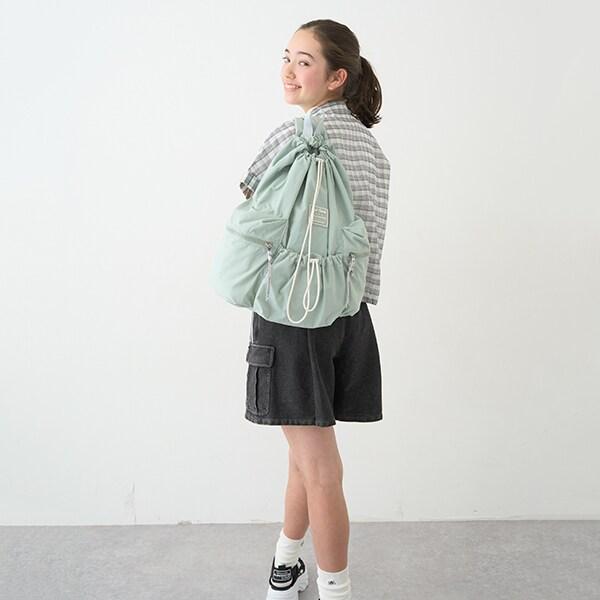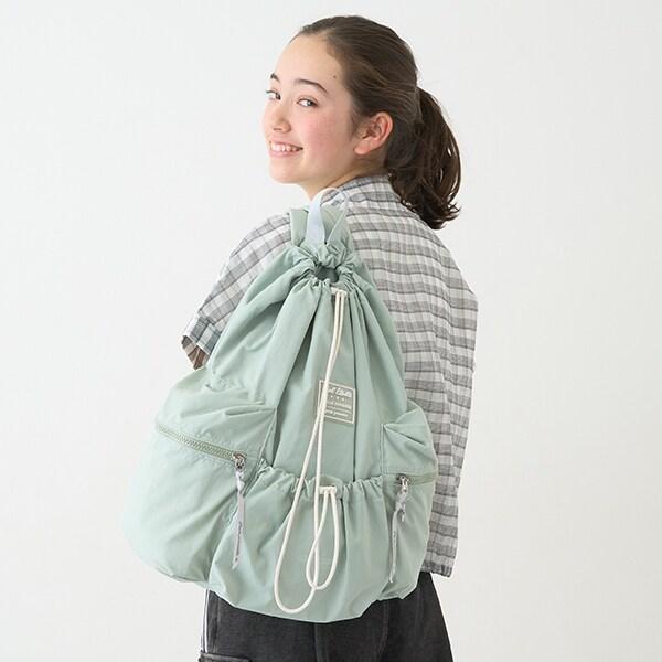這款揹包有時尚的抽繩口袋和可愛的圓形輪廓。