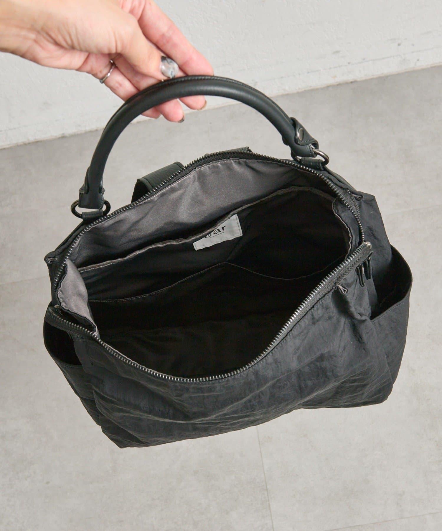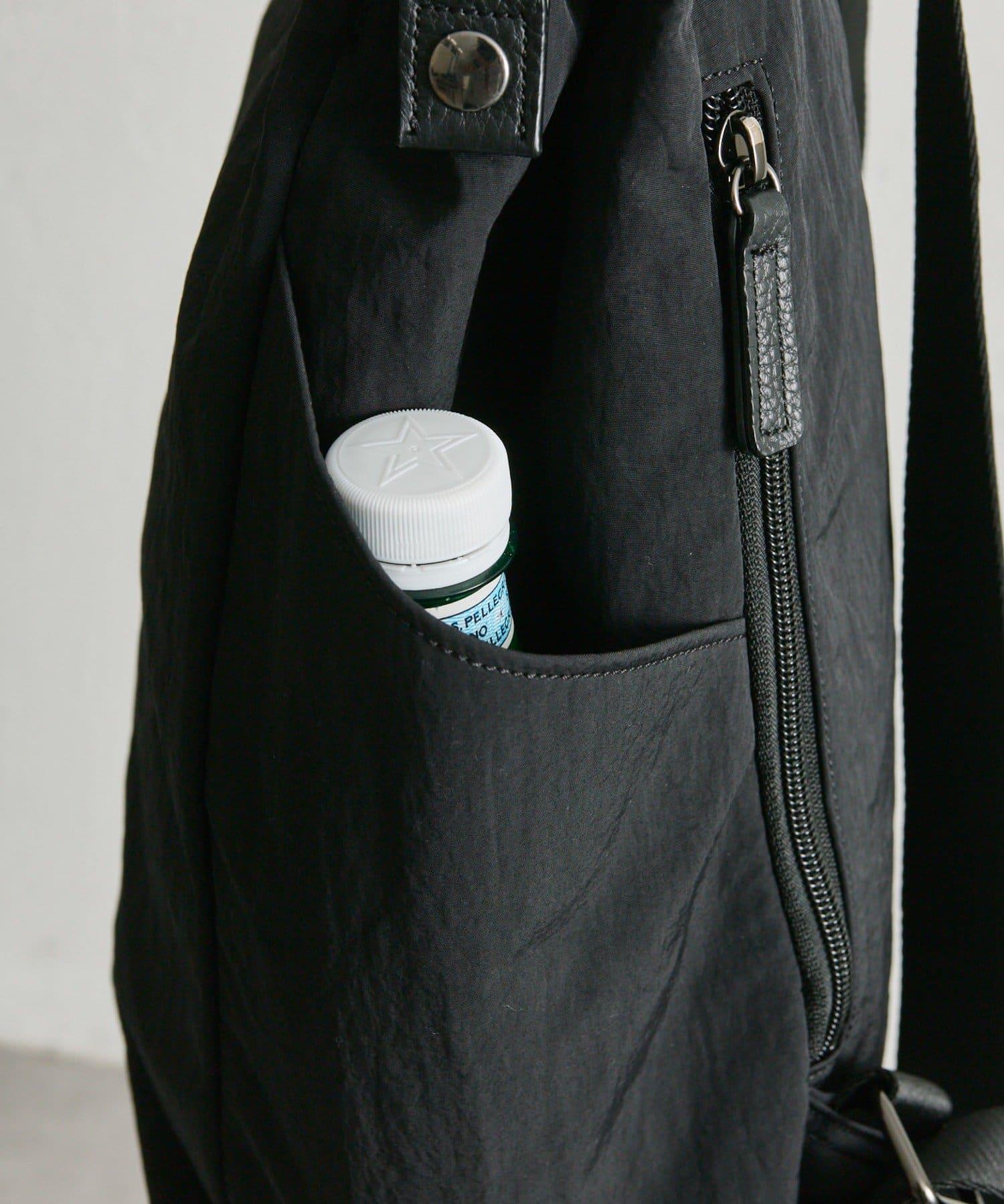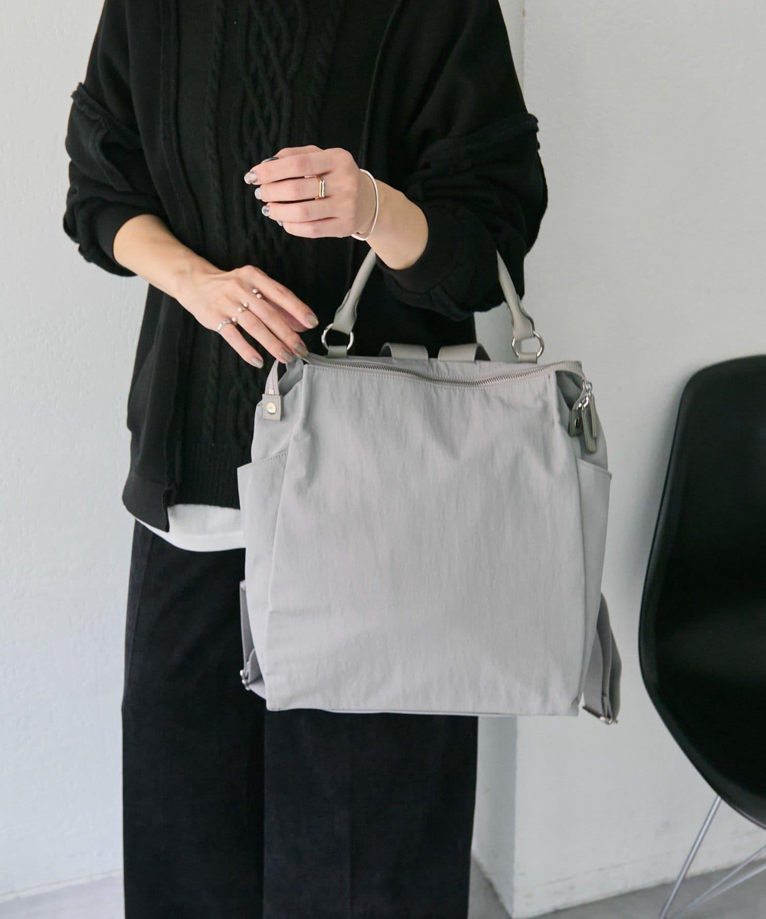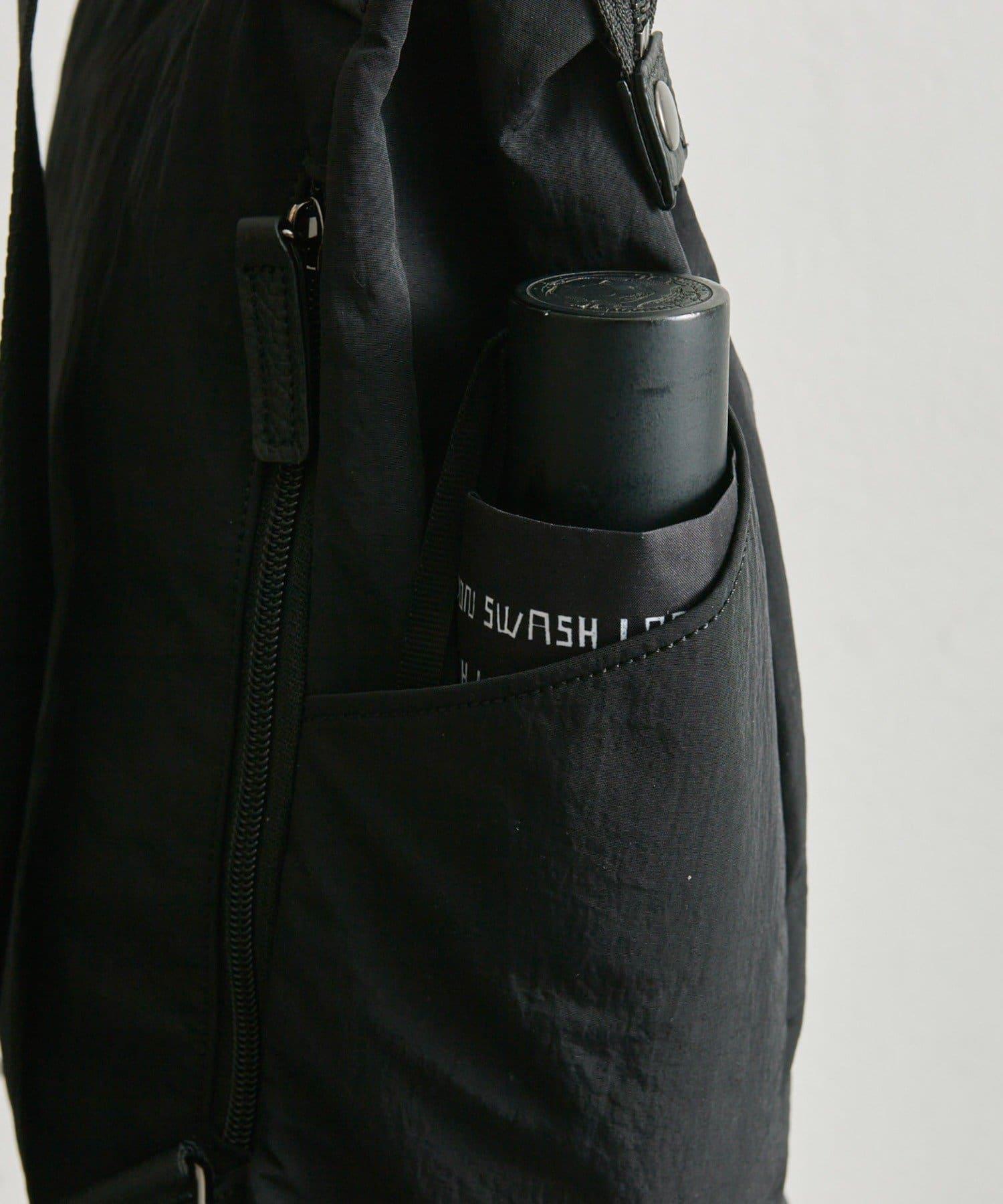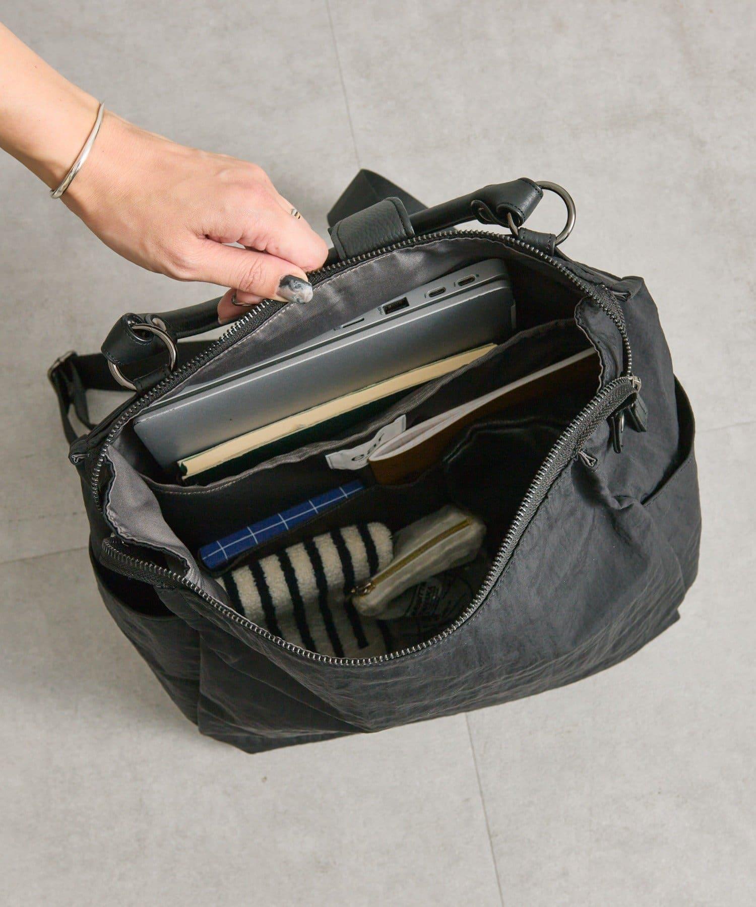 一個後拉鍊外袋、兩個側袋、一個 A4 大小內隔層袋和兩個內袋。