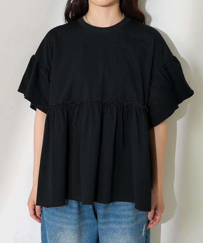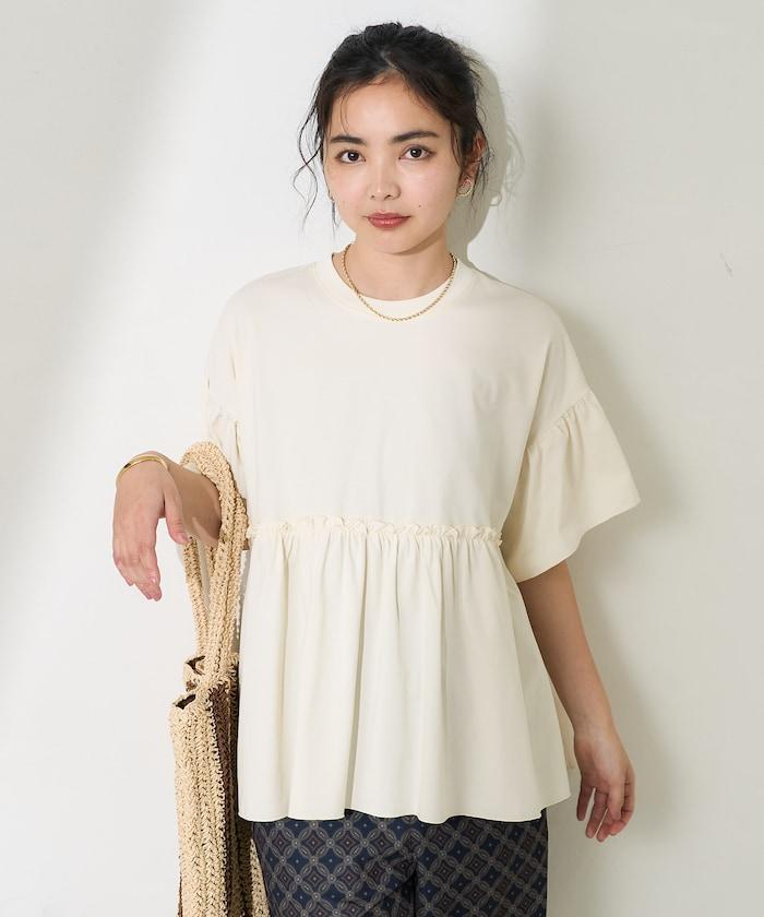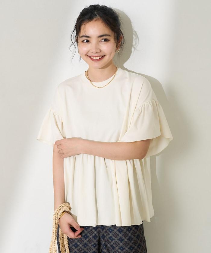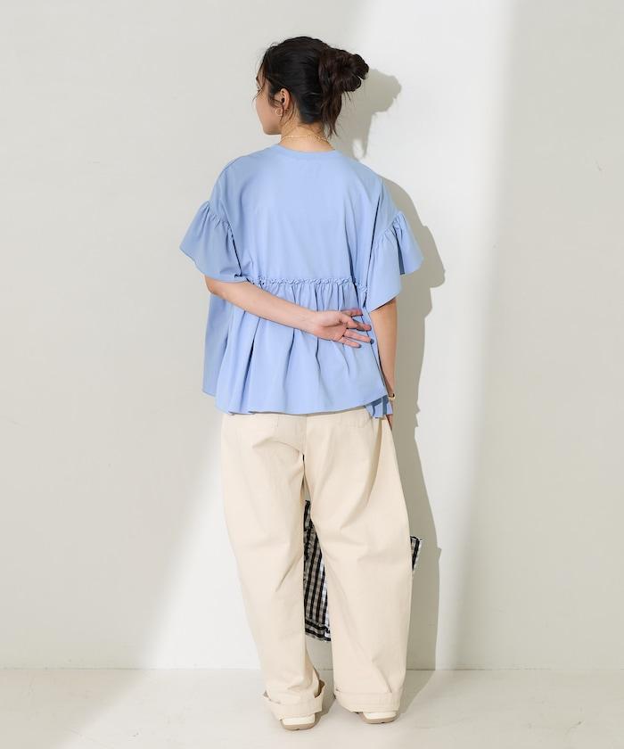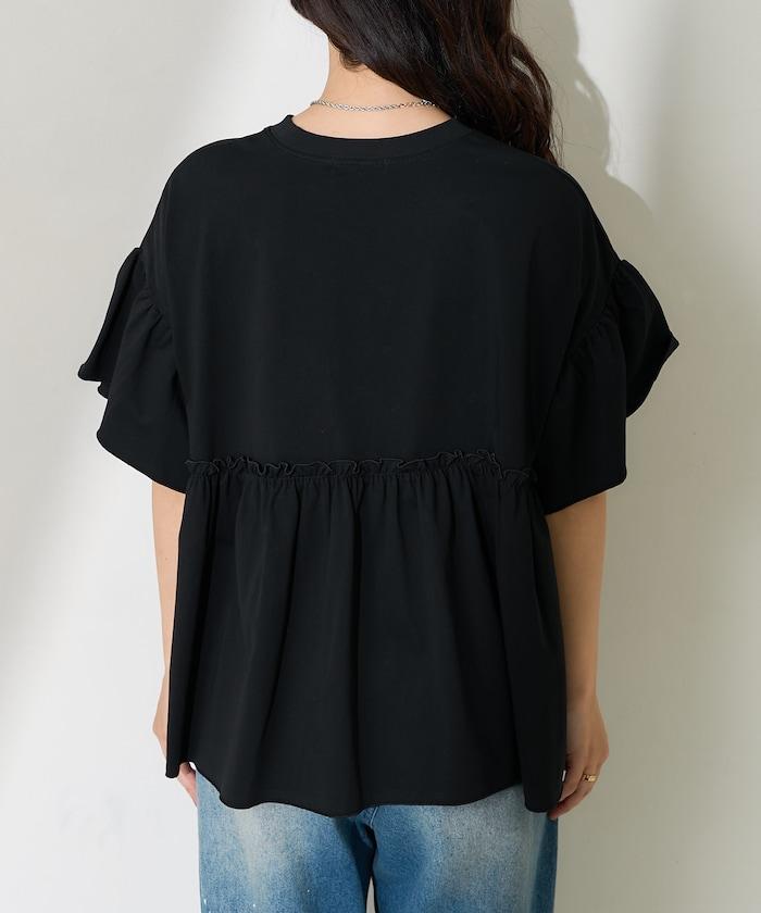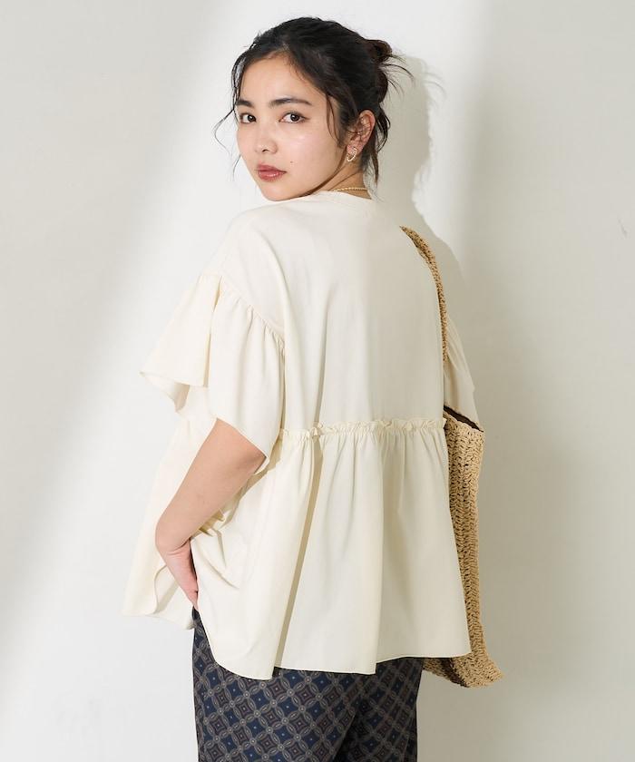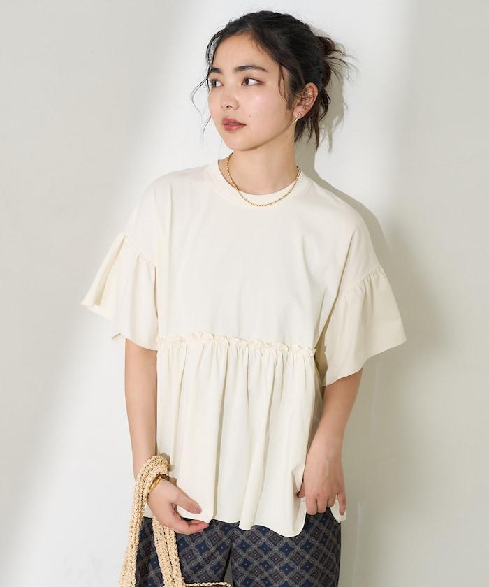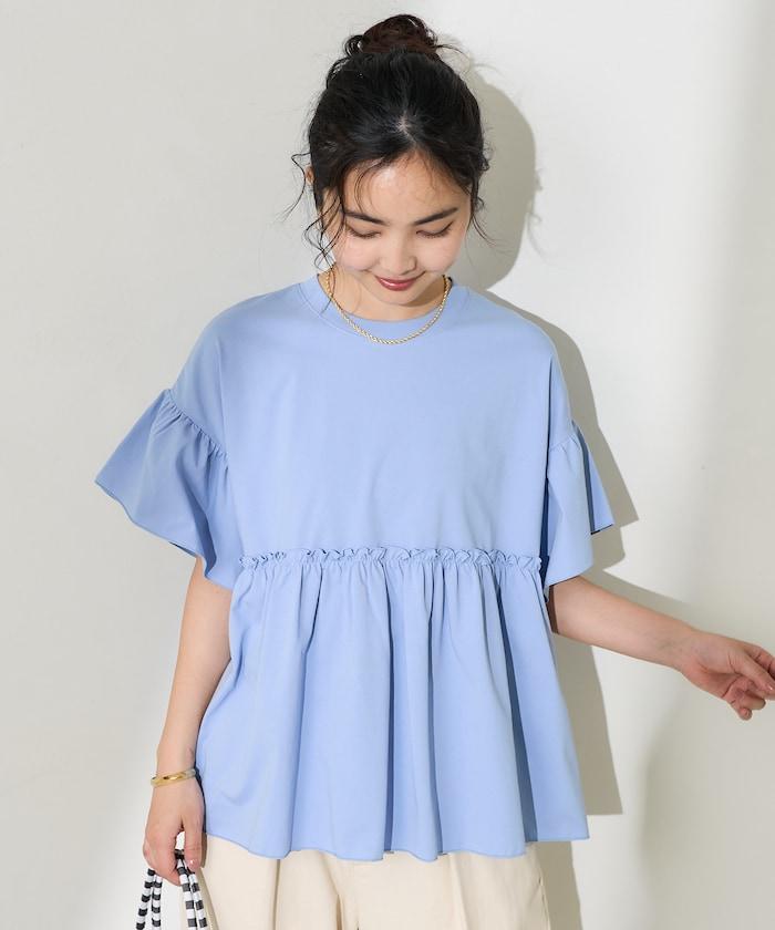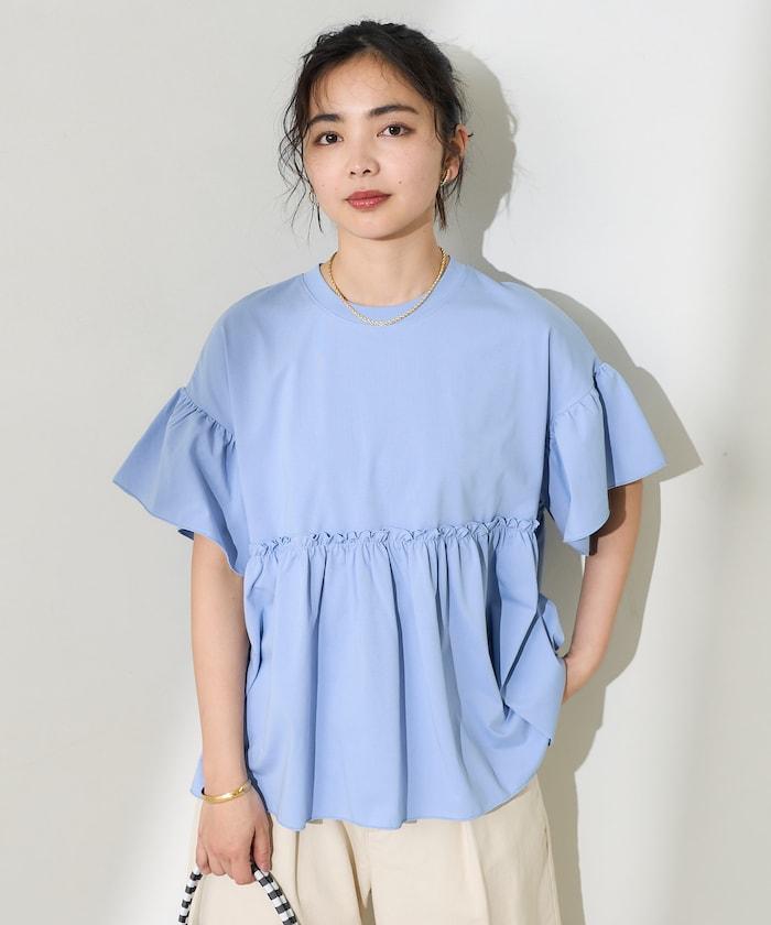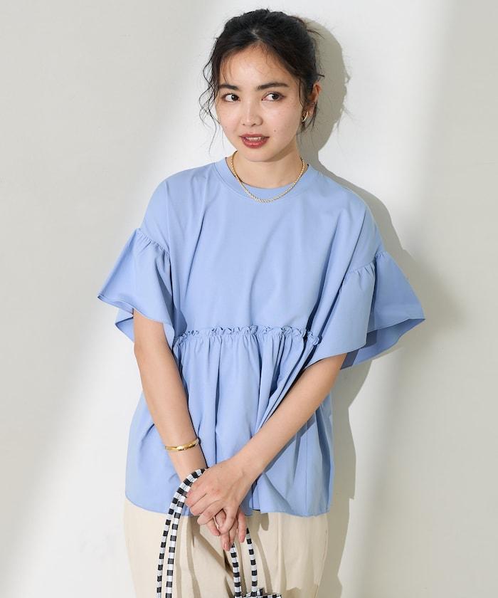 <防紫外線>多功能袖口荷葉邊短袖T恤/功能性材料拼接T恤