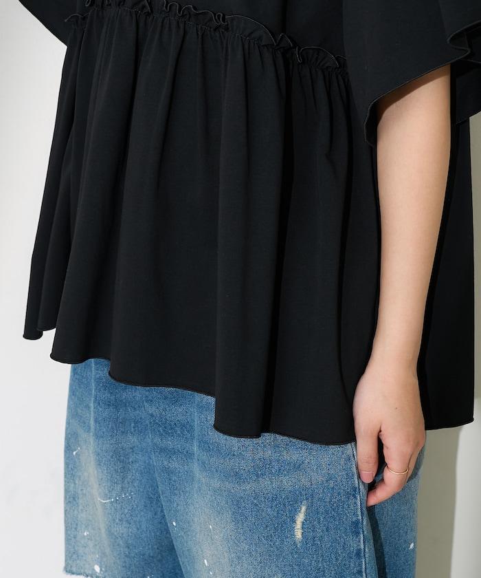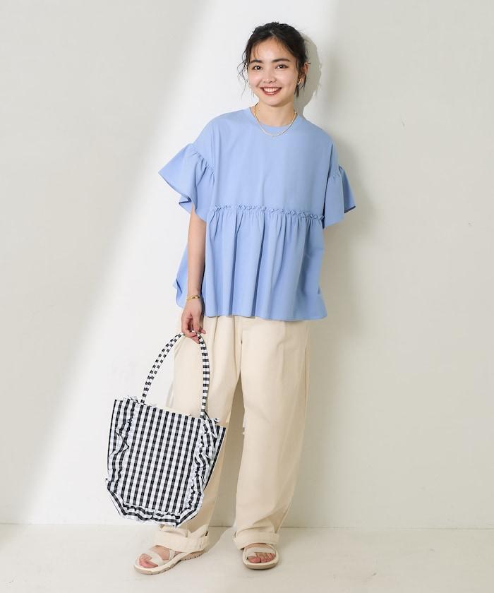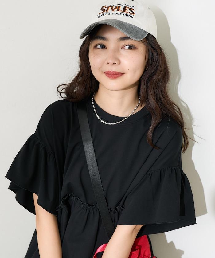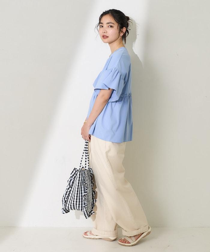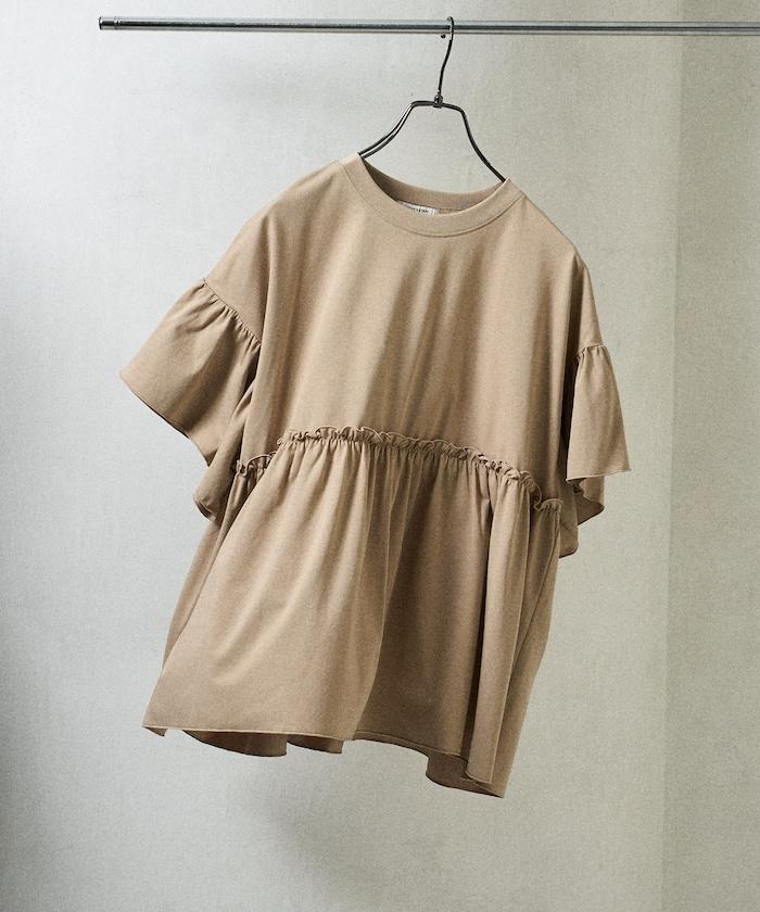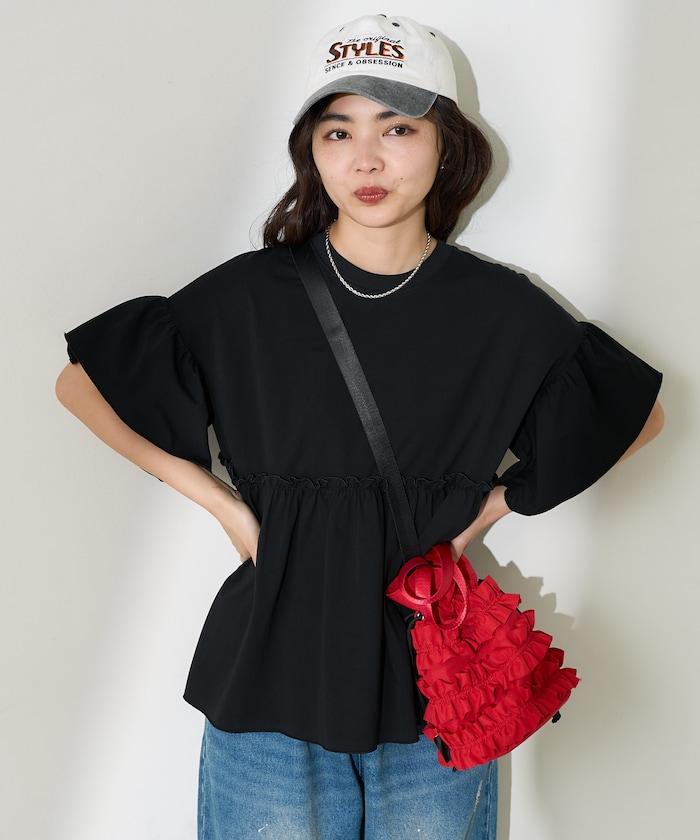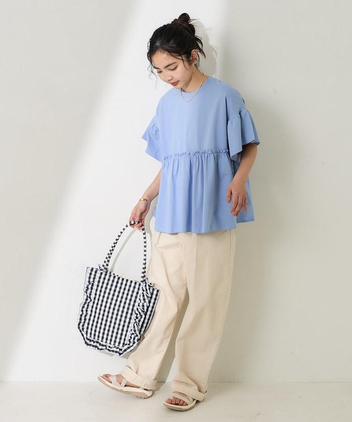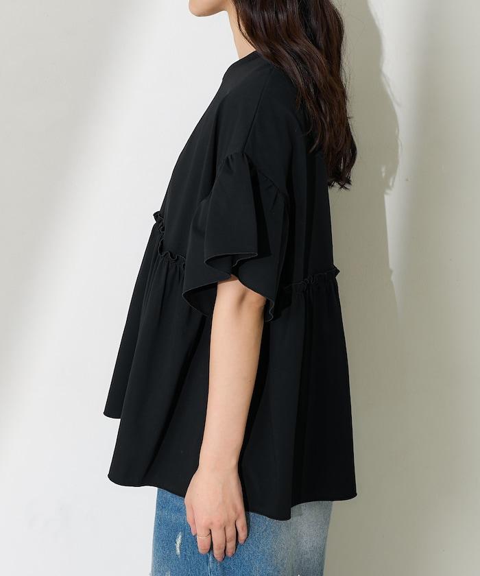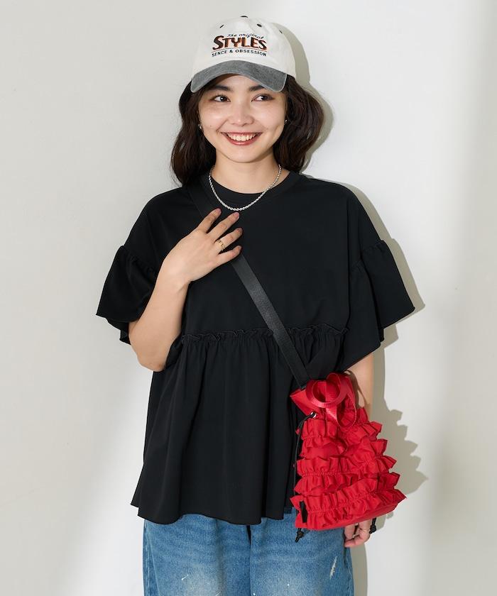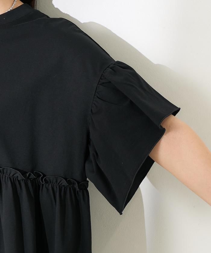 <防紫外線>多功能袖口荷葉邊短袖T恤/功能性材料拼接T恤