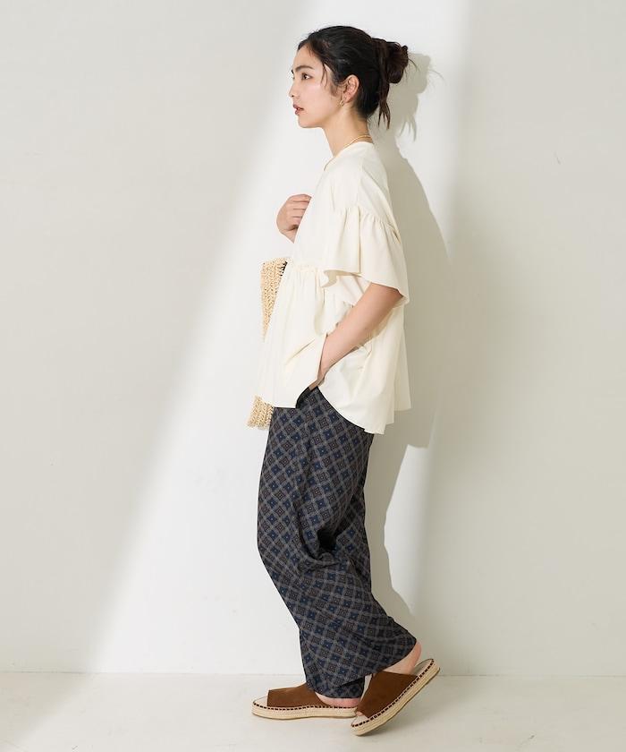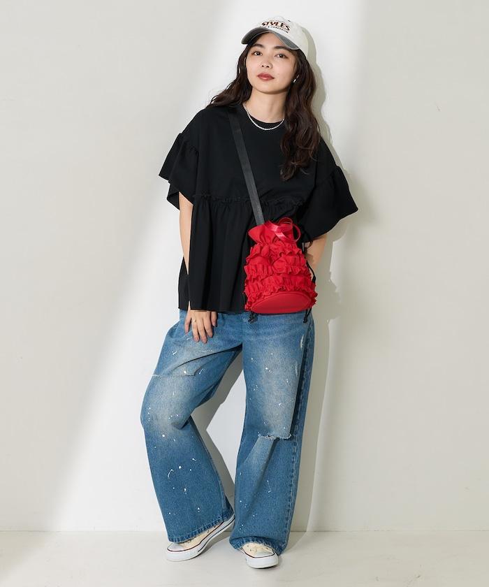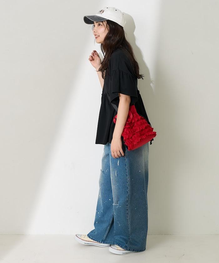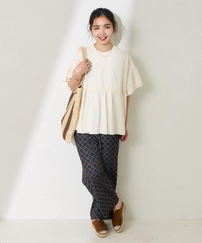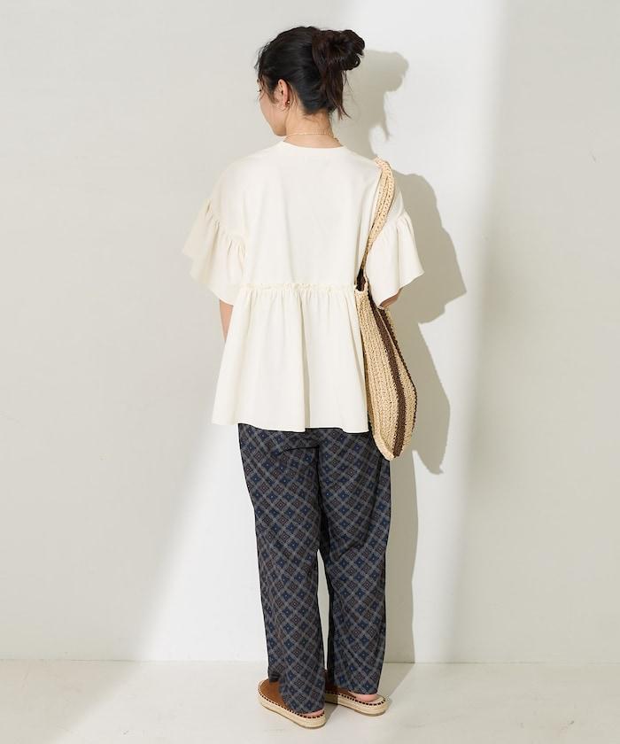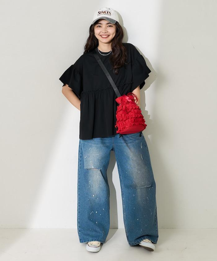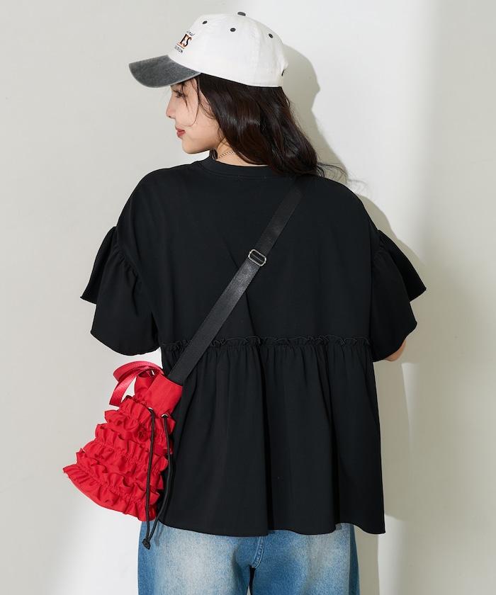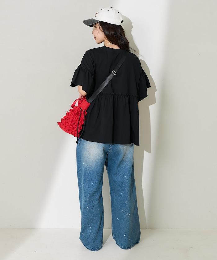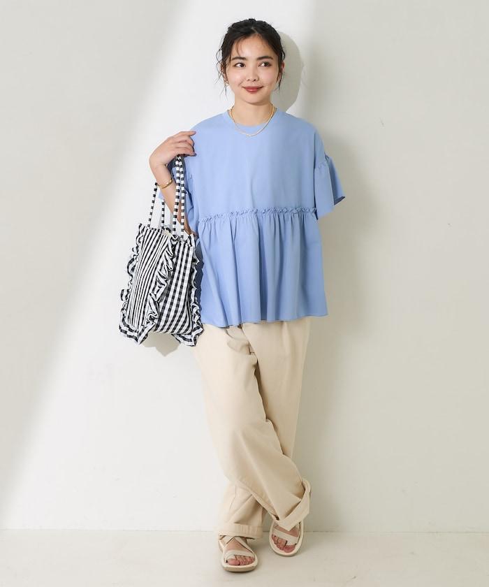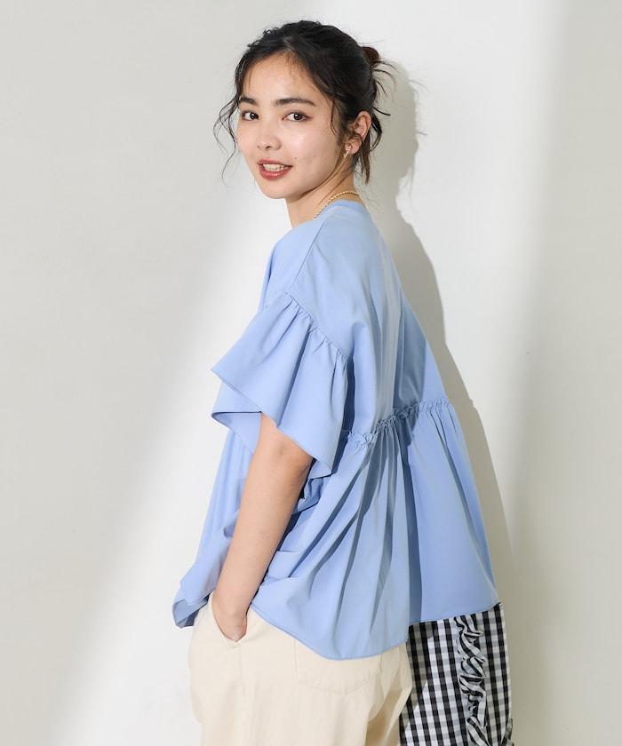<防紫外線>多功能袖口荷葉邊短袖T恤/功能性材料拼接T恤