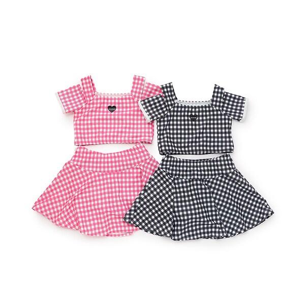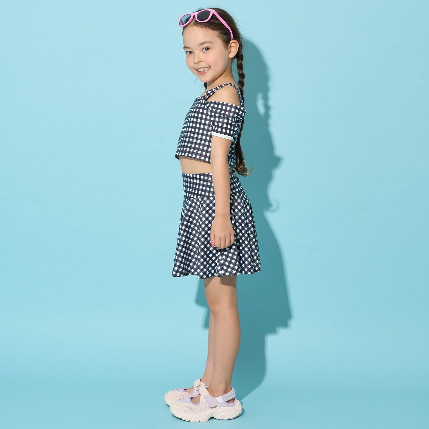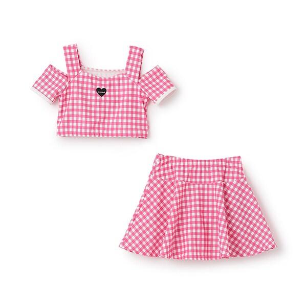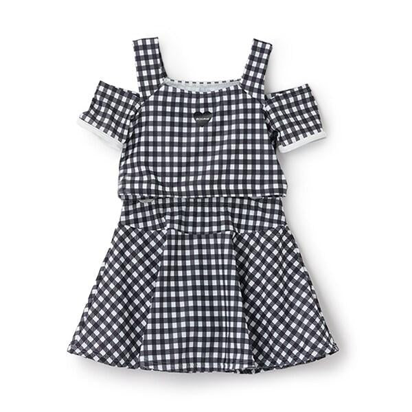 【防紫外線/泳裝/SWIM】一字肩風格上衣配荷葉邊裙褲
