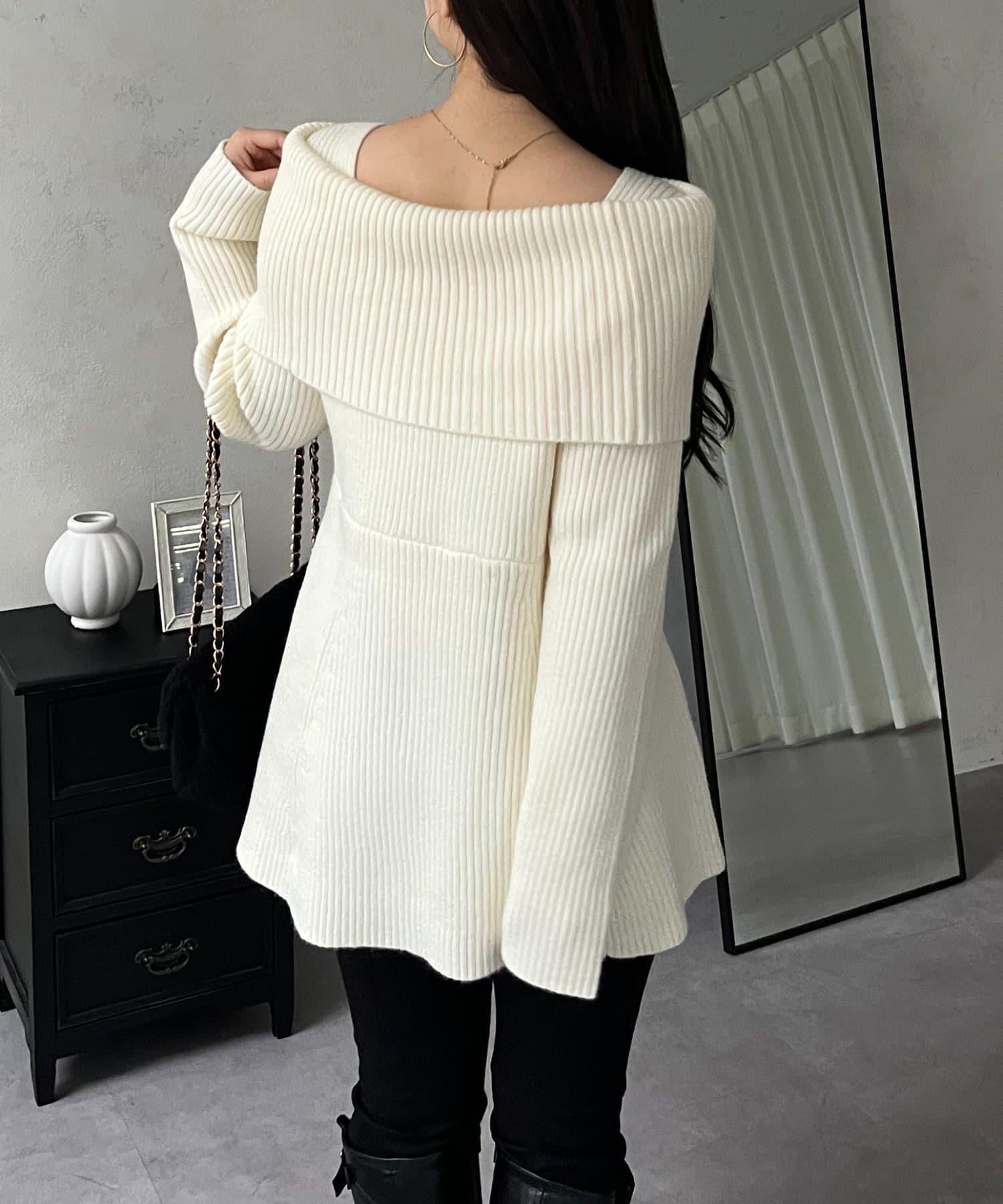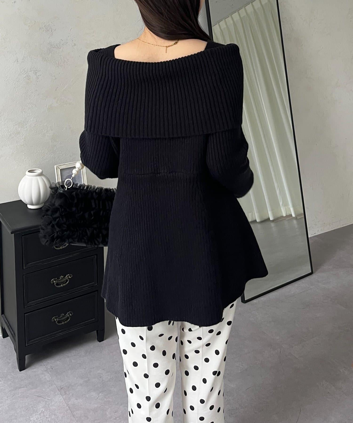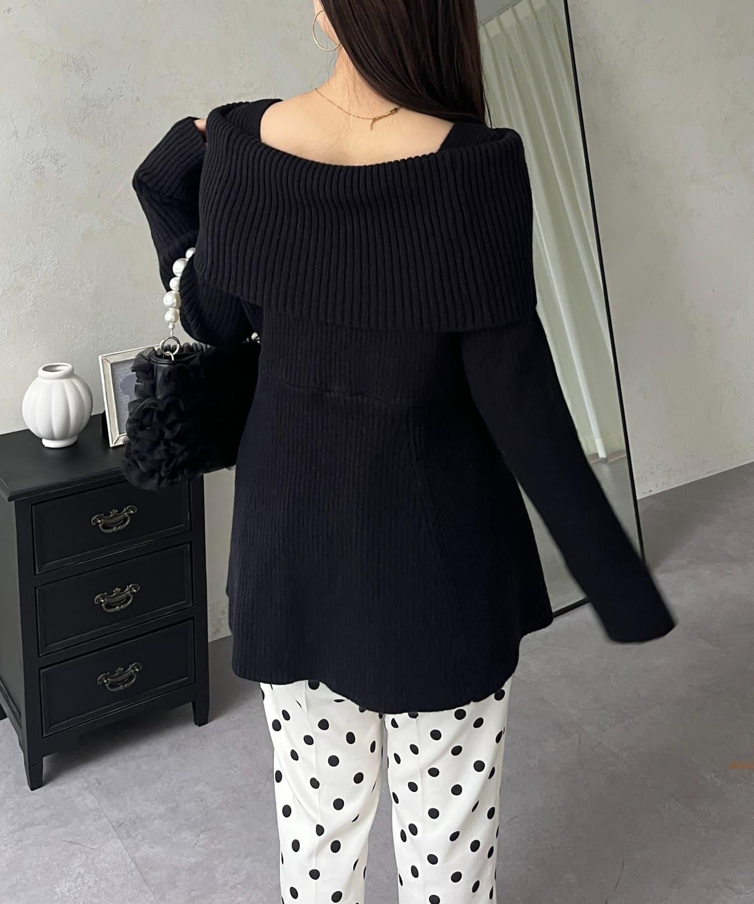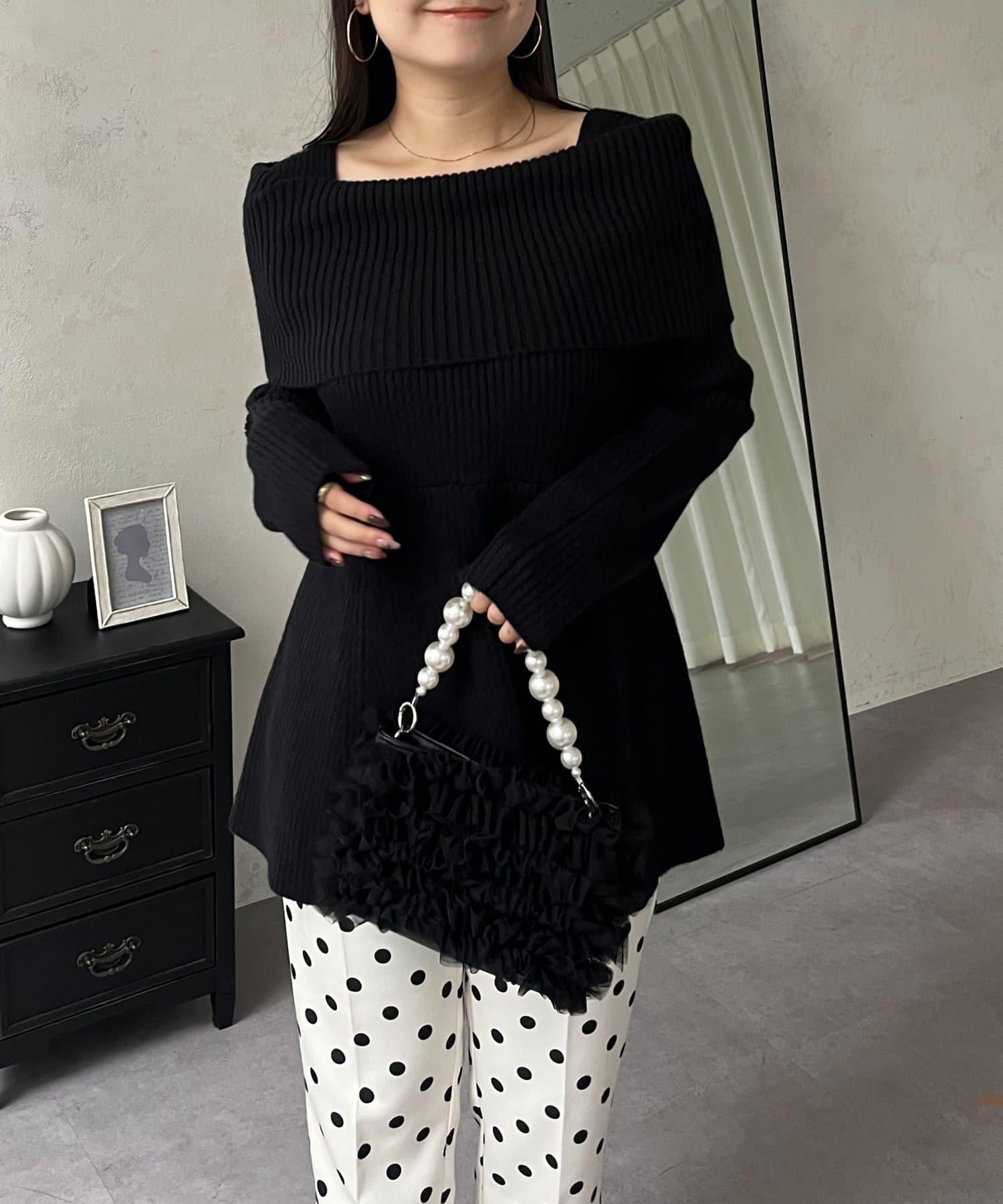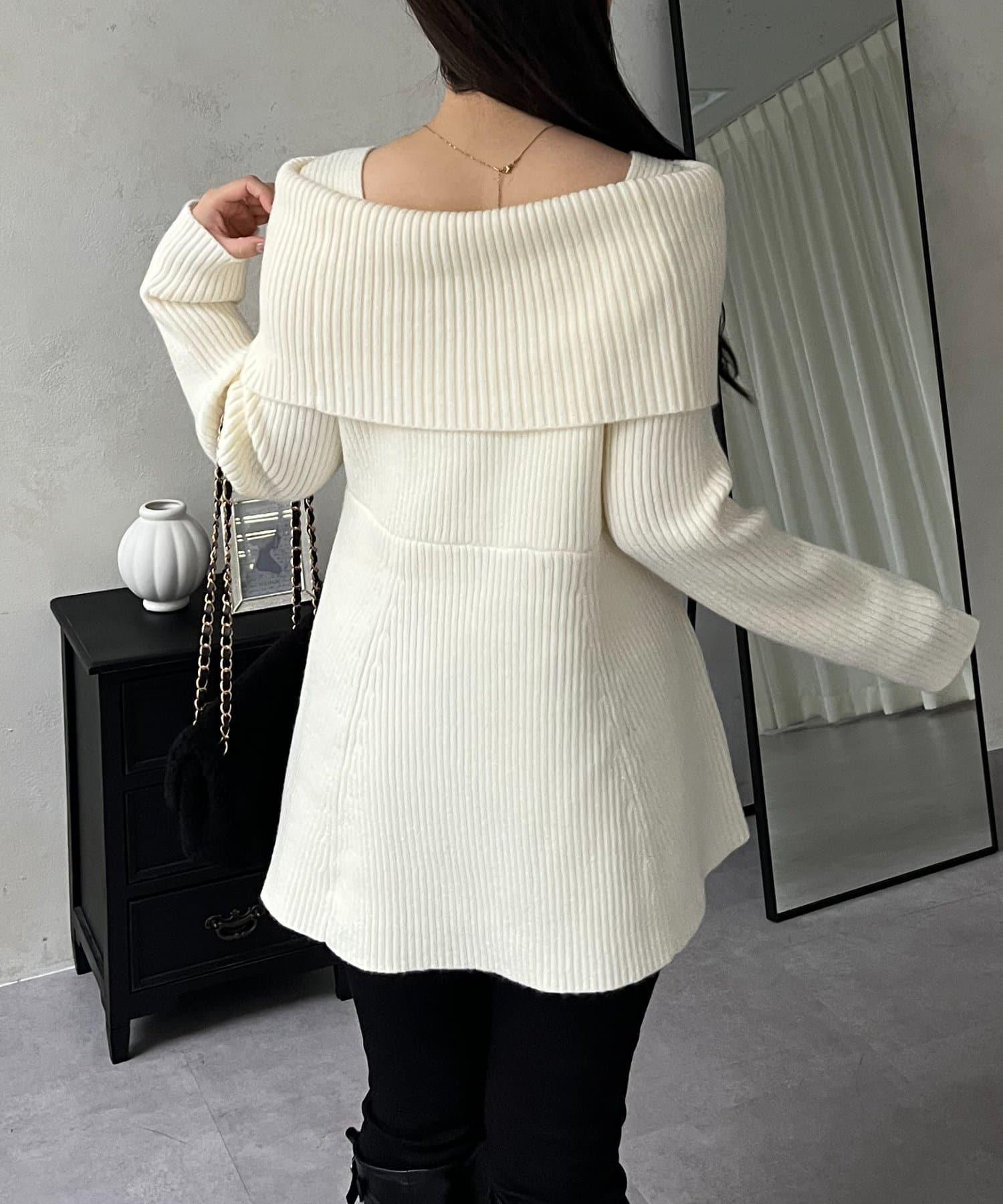 預約商品【防靜電】一字肩荷葉邊針織衫