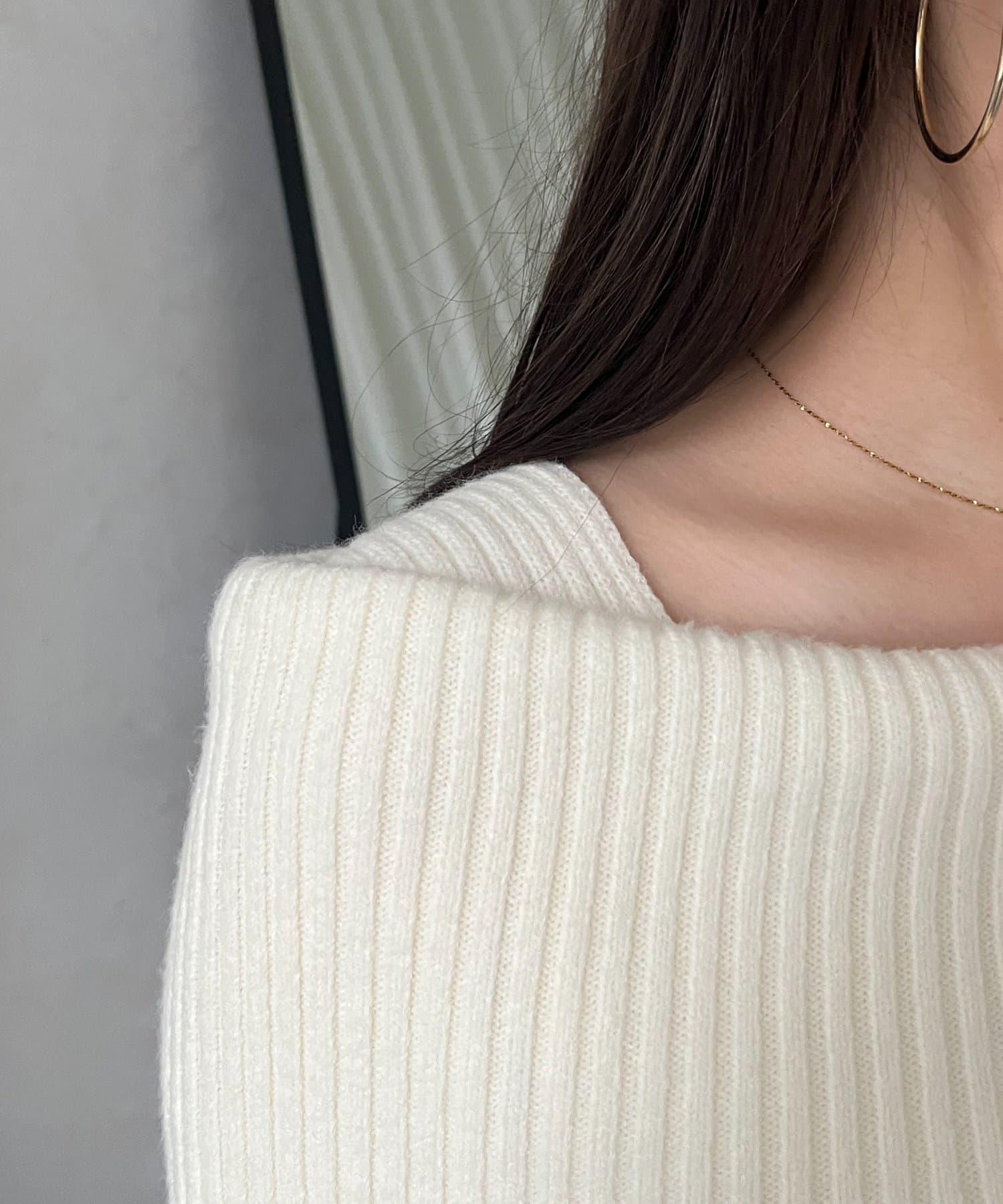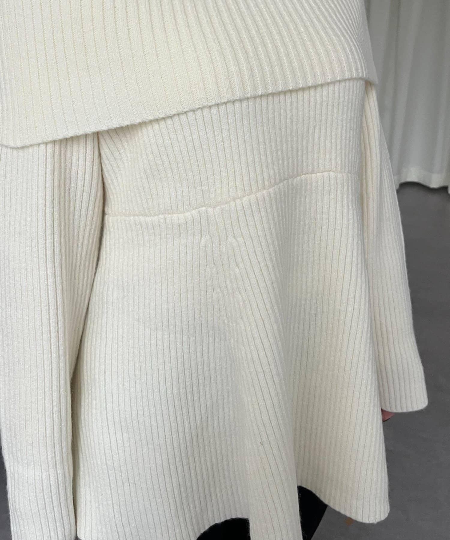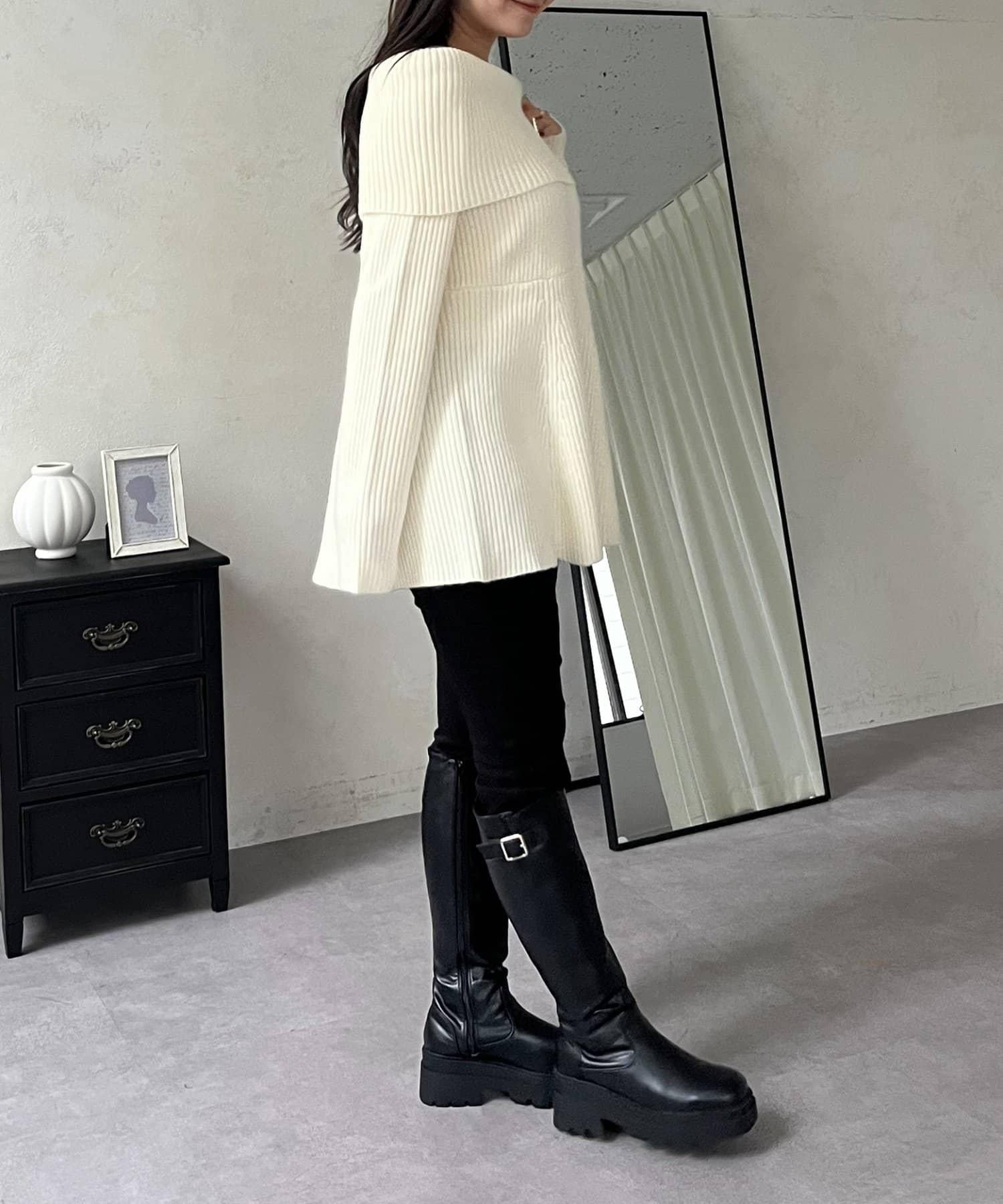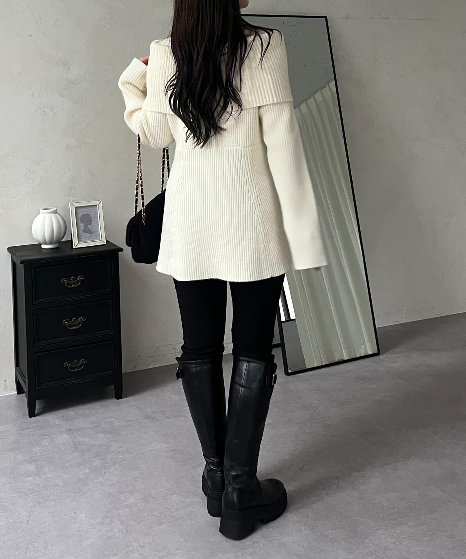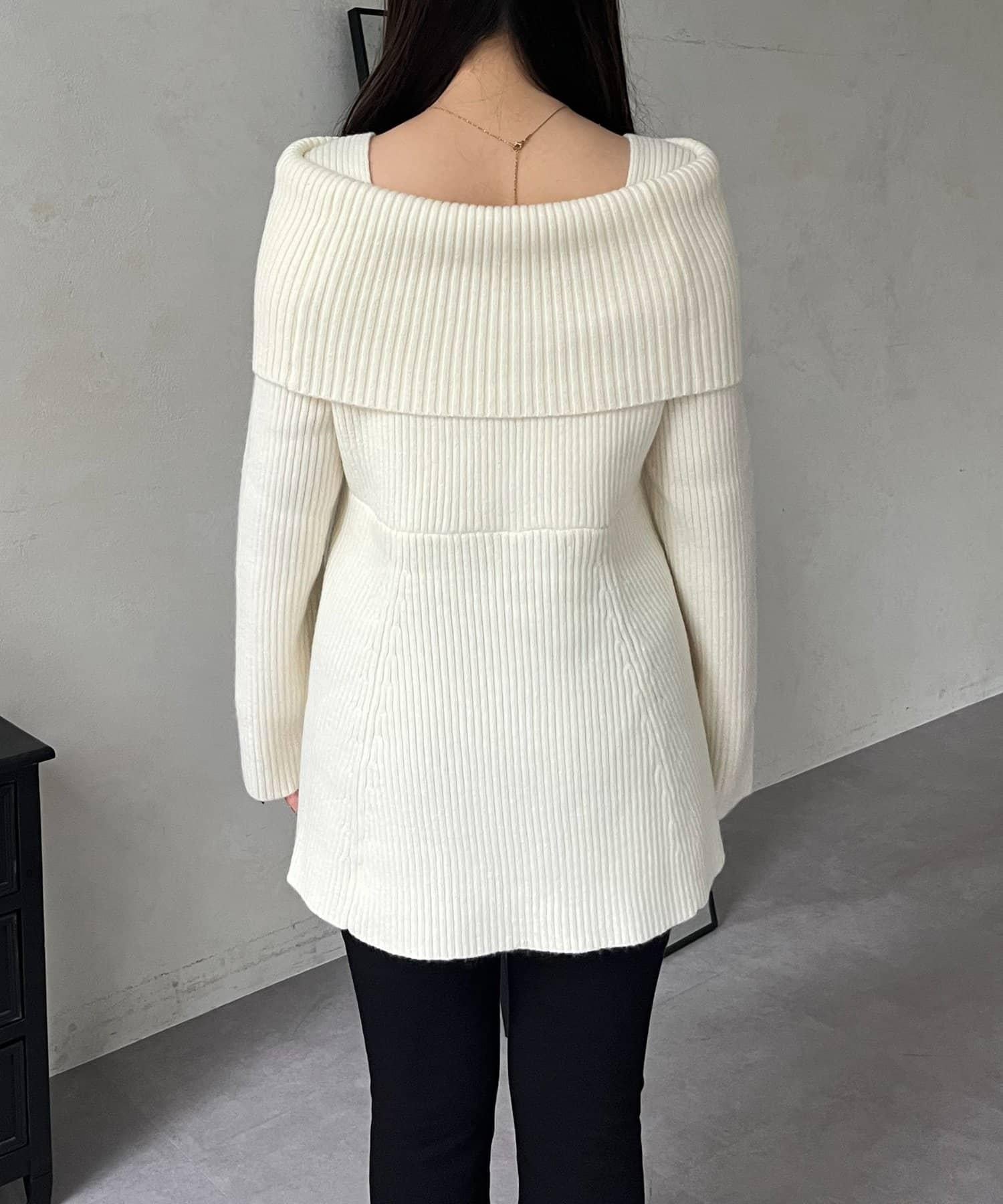 預約商品【防靜電】一字肩荷葉邊針織衫