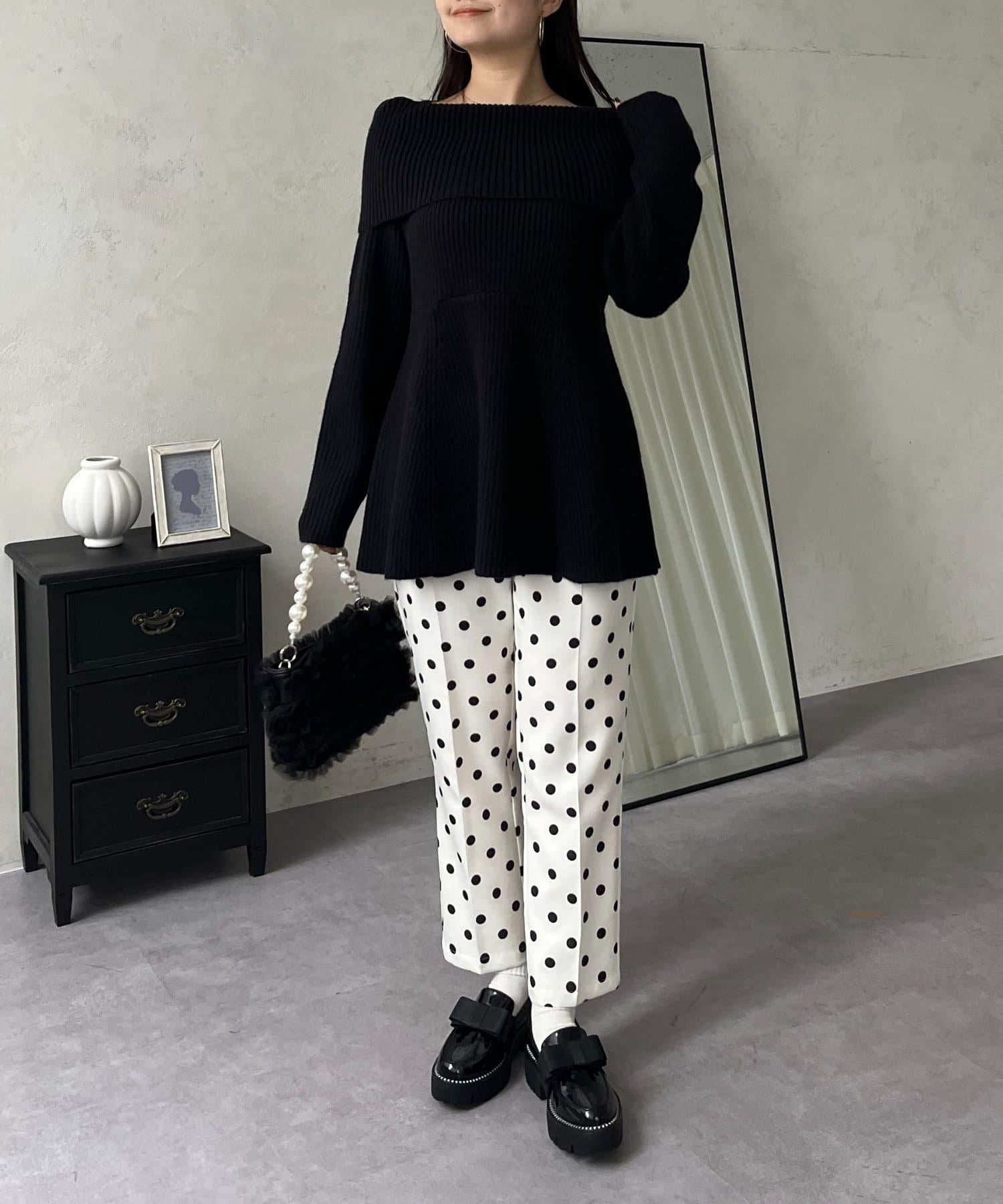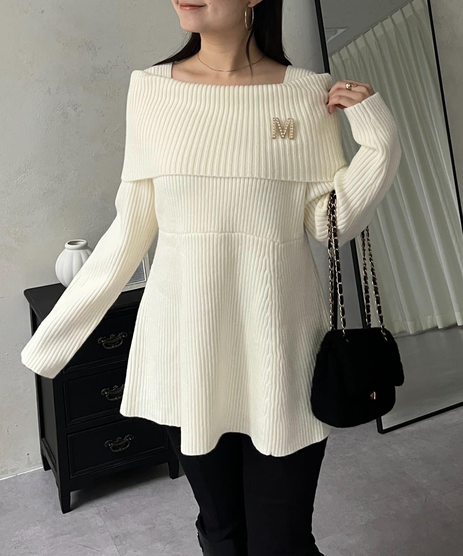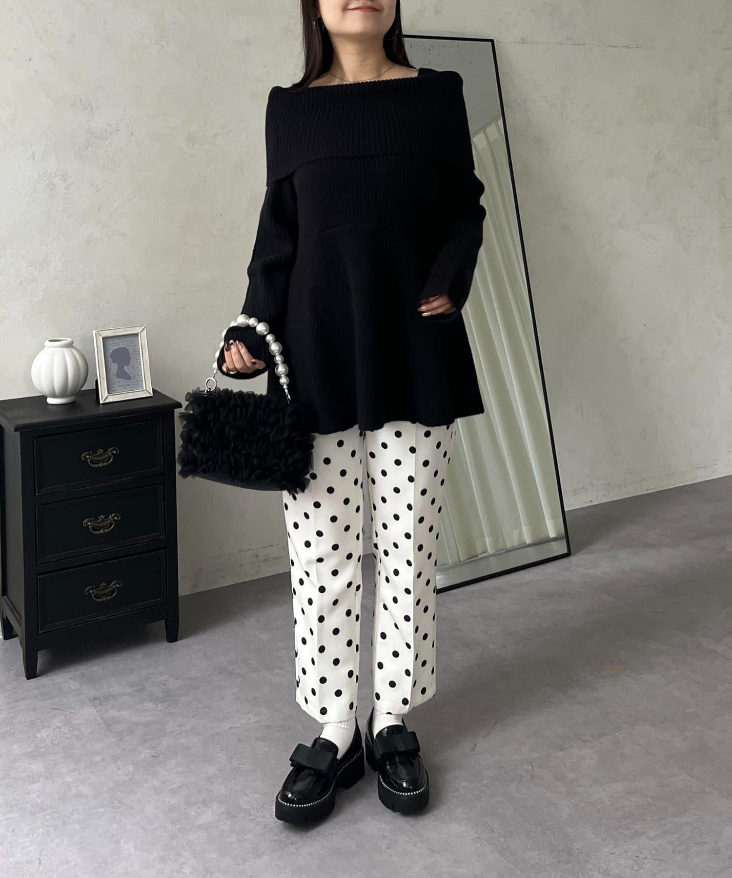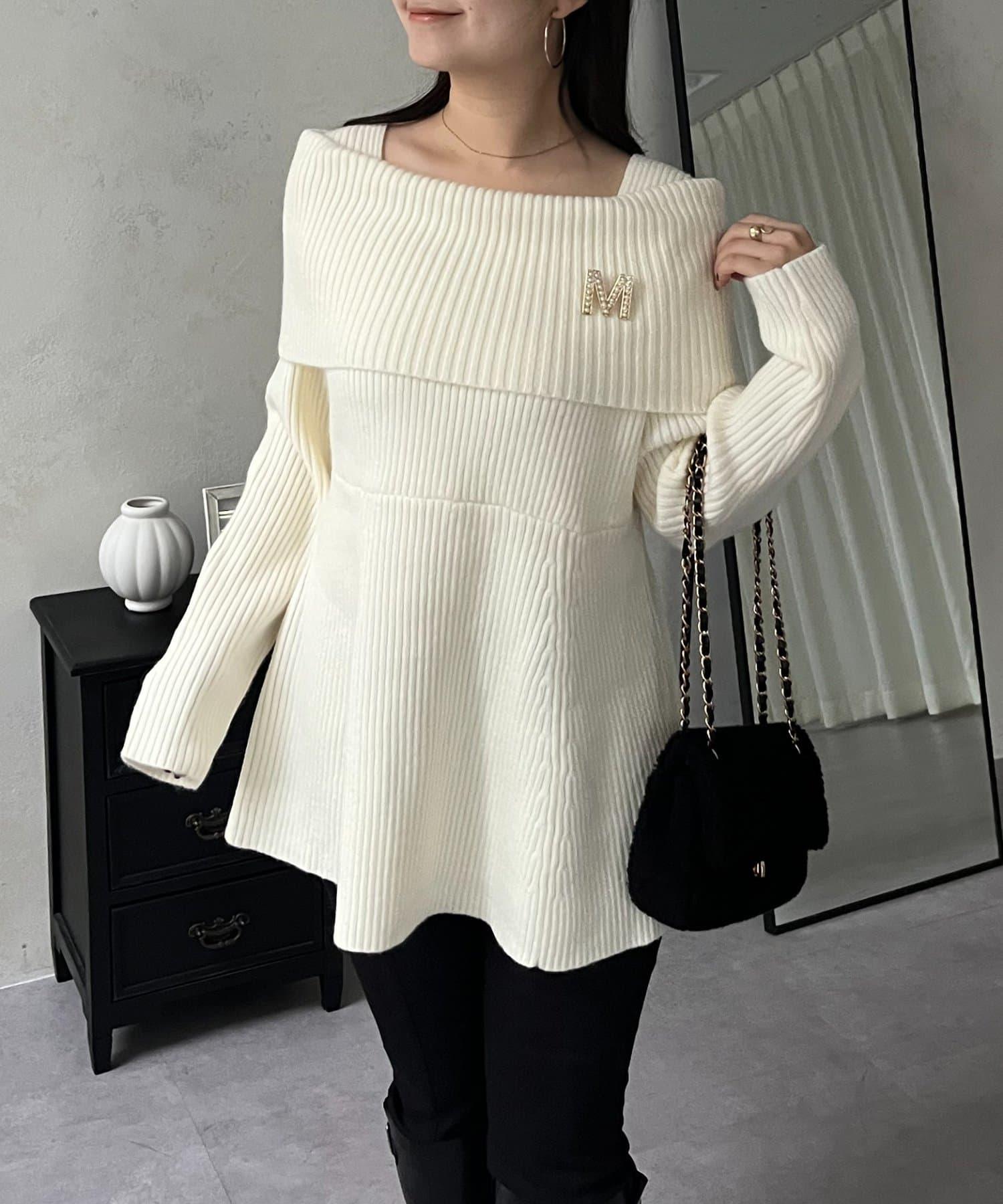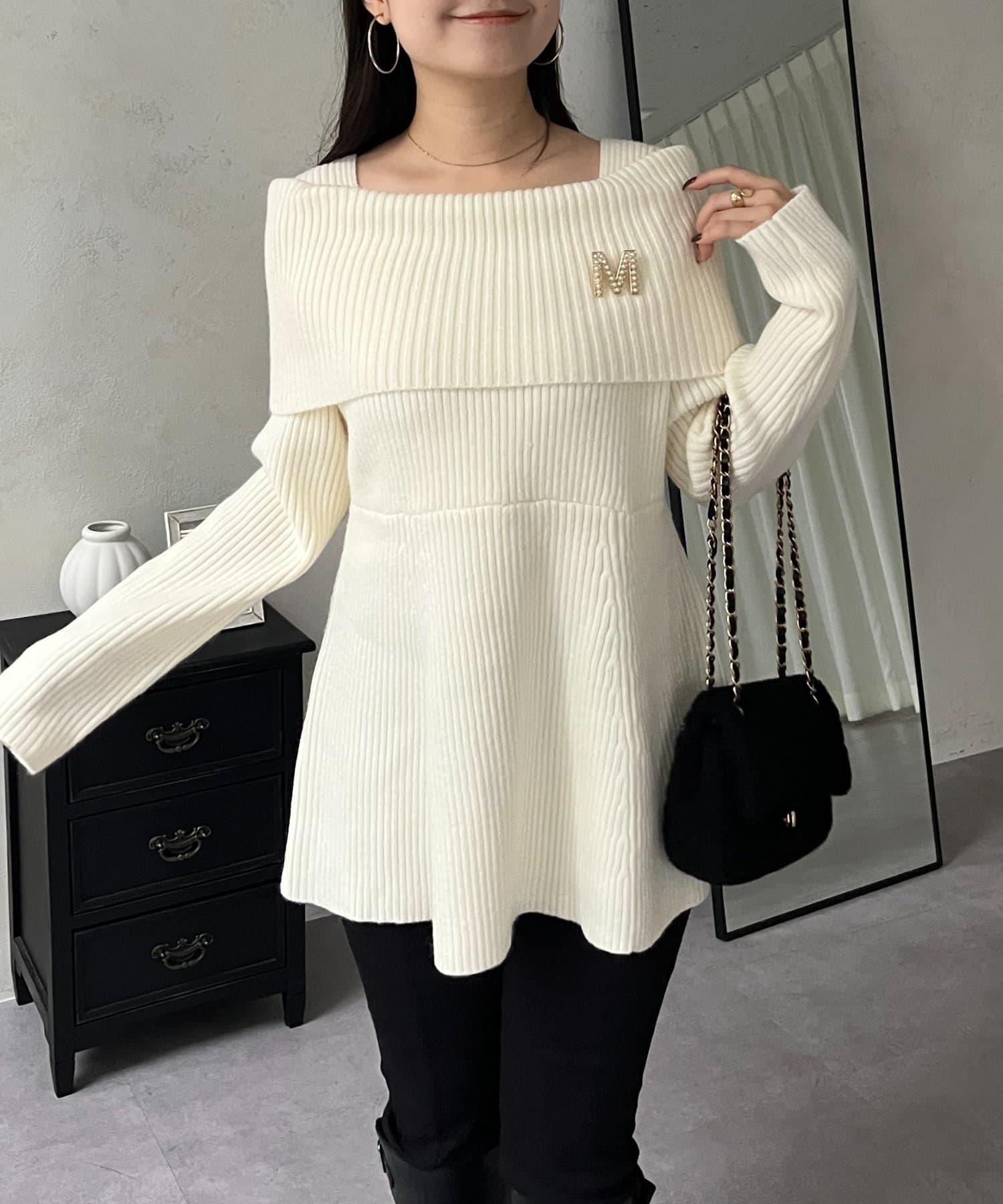 預約商品【防靜電】一字肩荷葉邊針織衫
