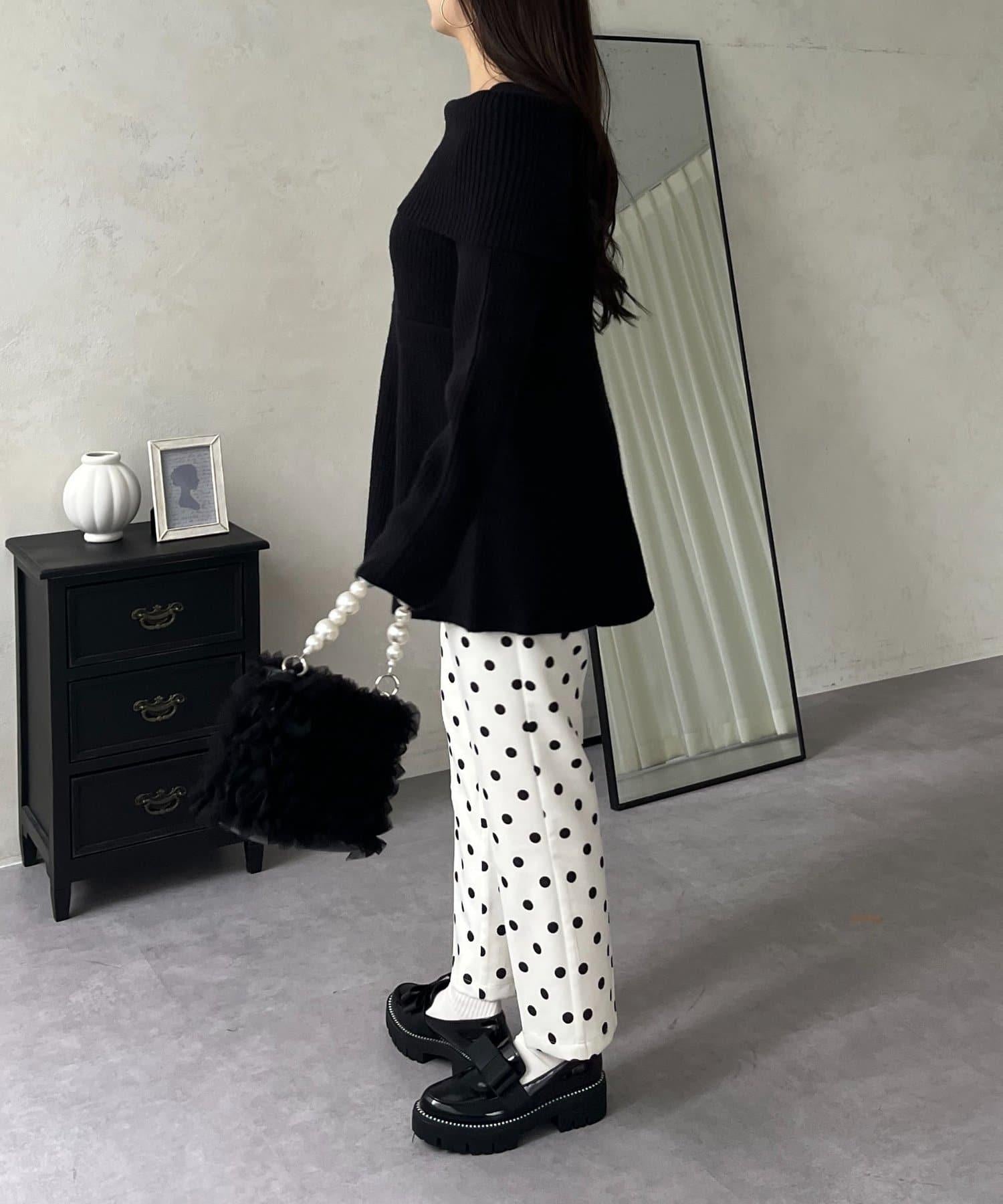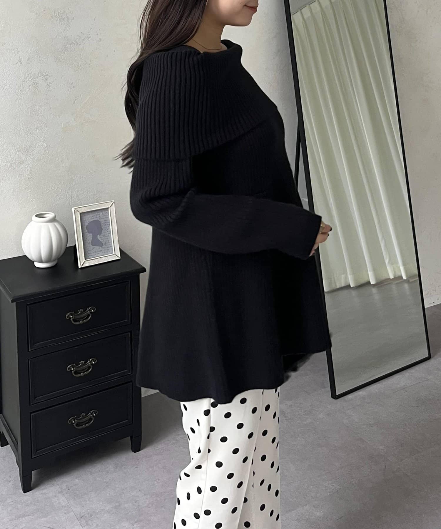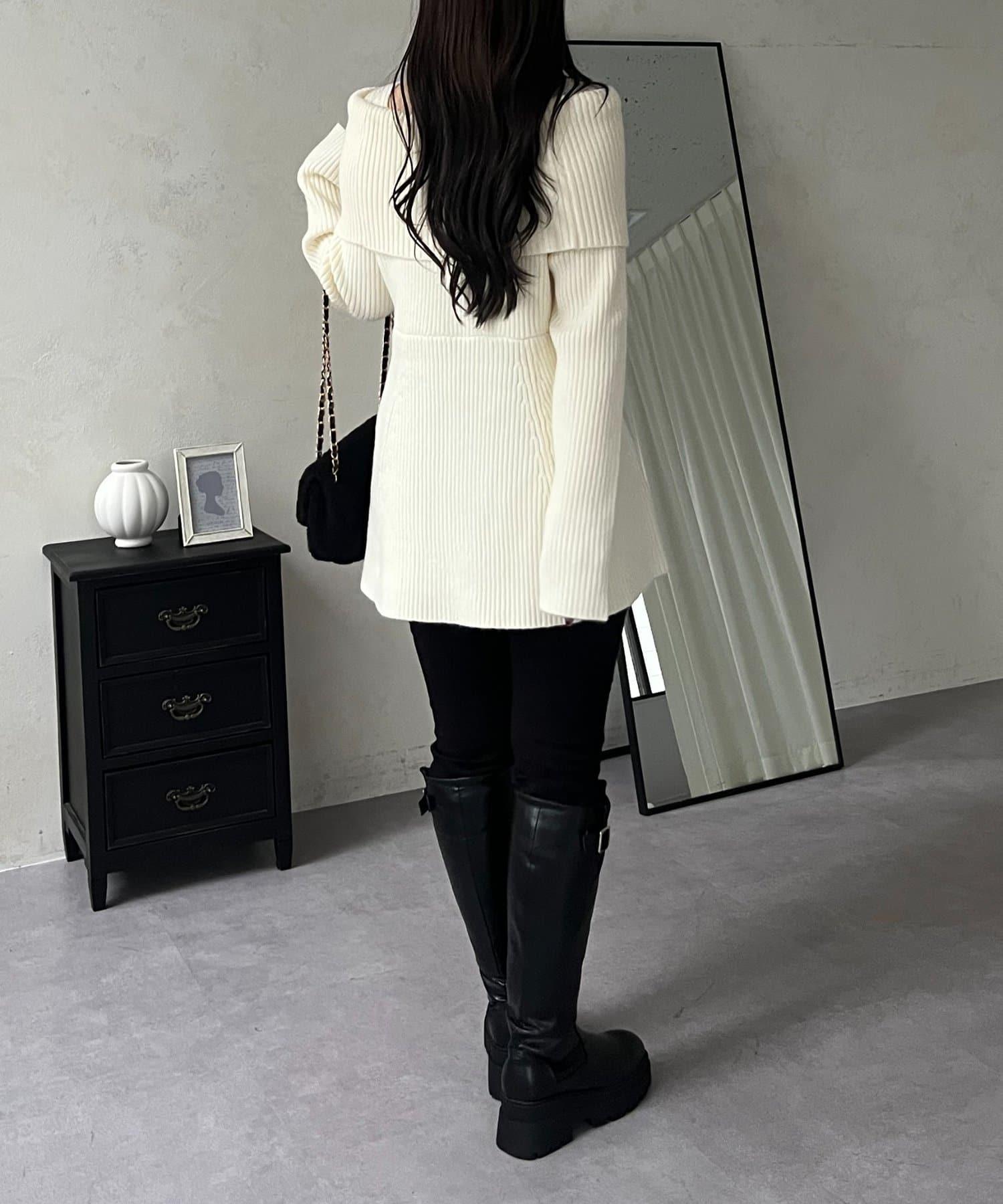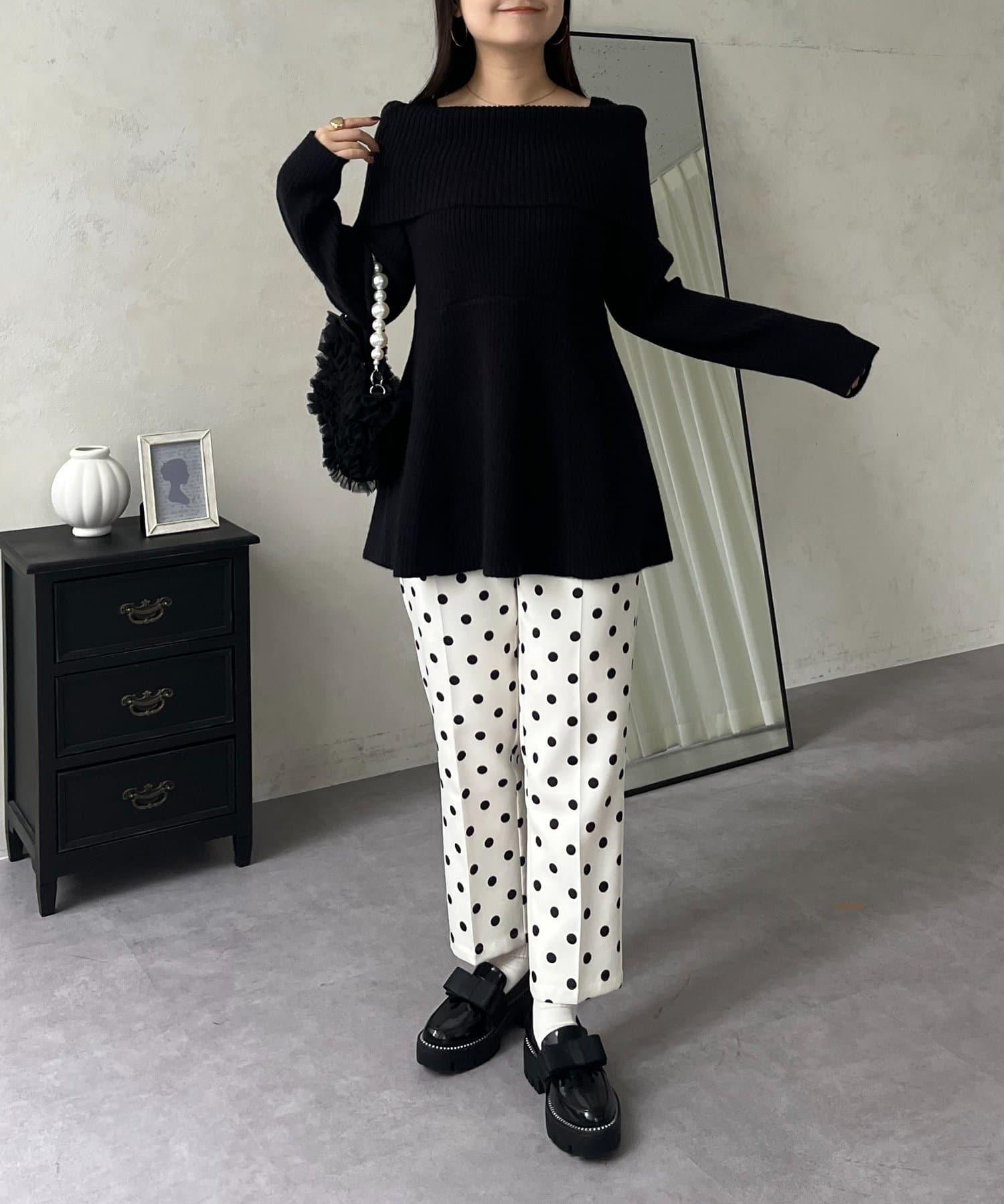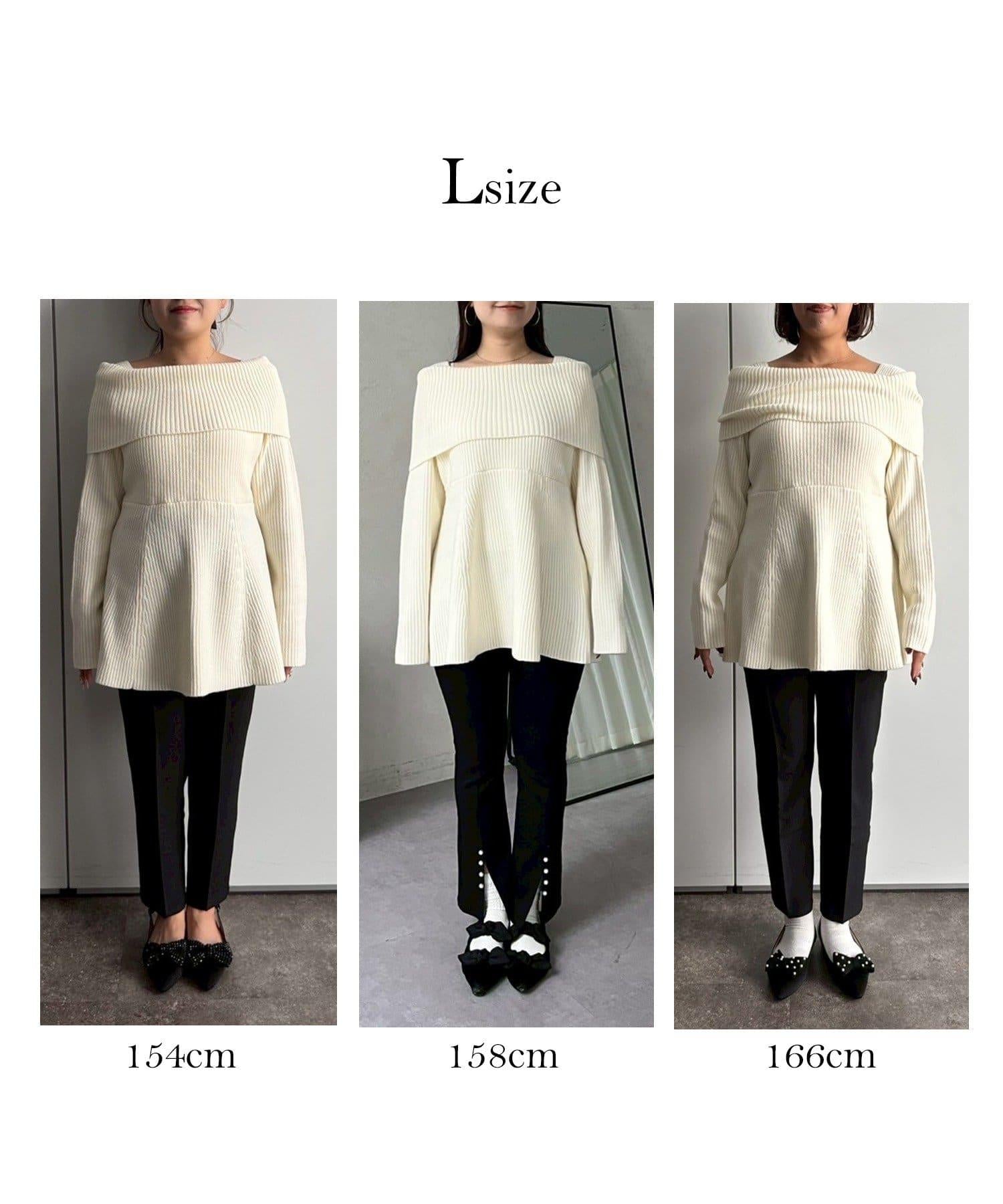 預約商品【防靜電】一字肩荷葉邊針織衫