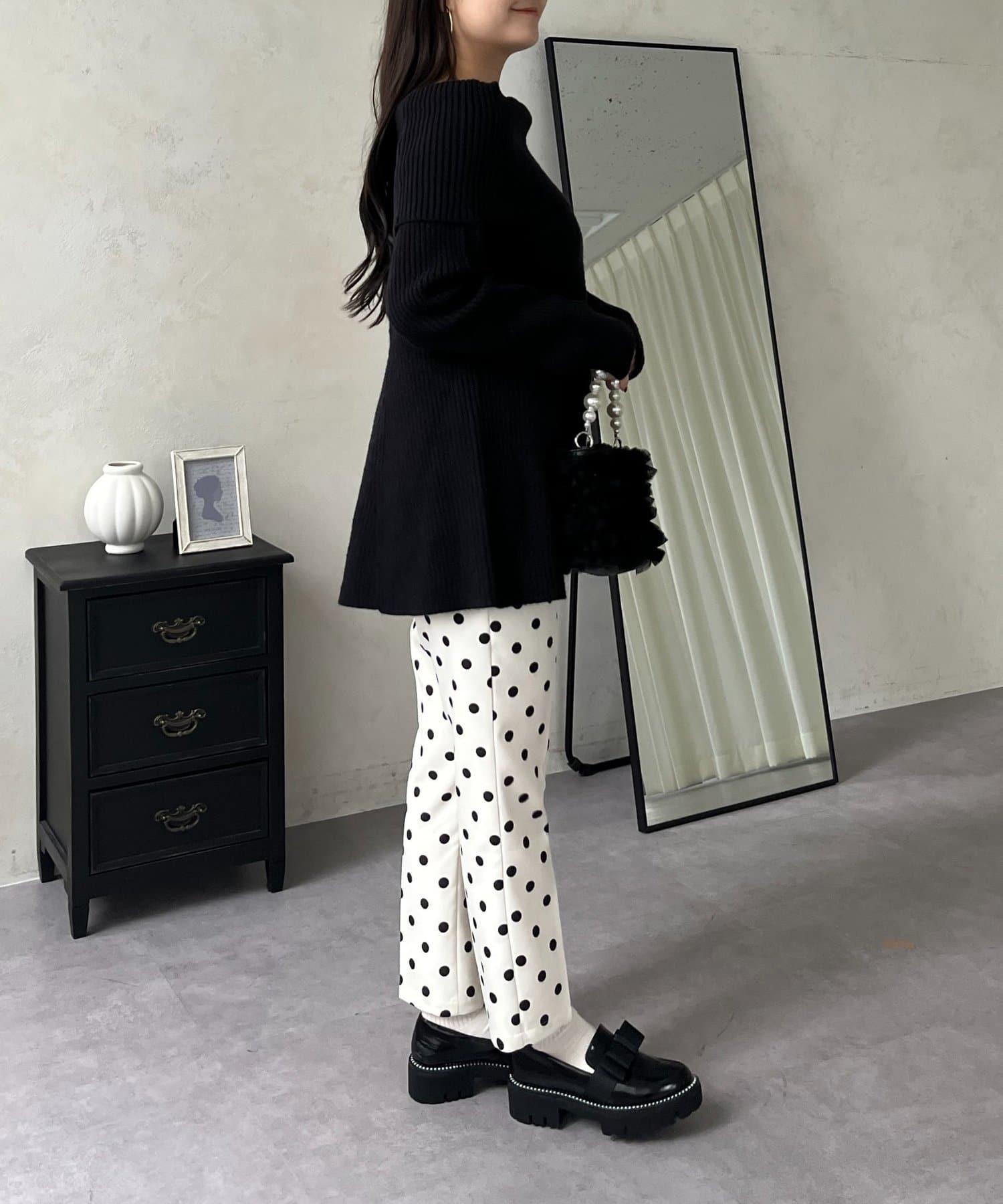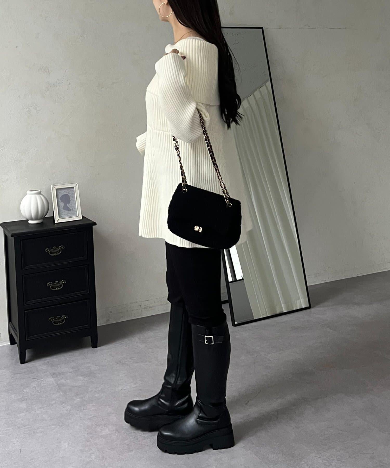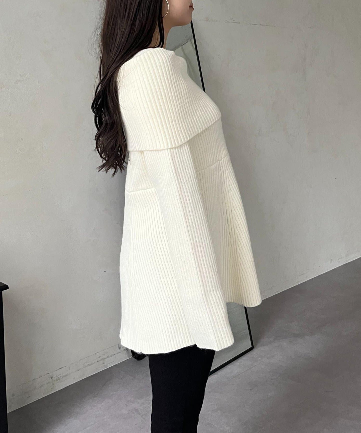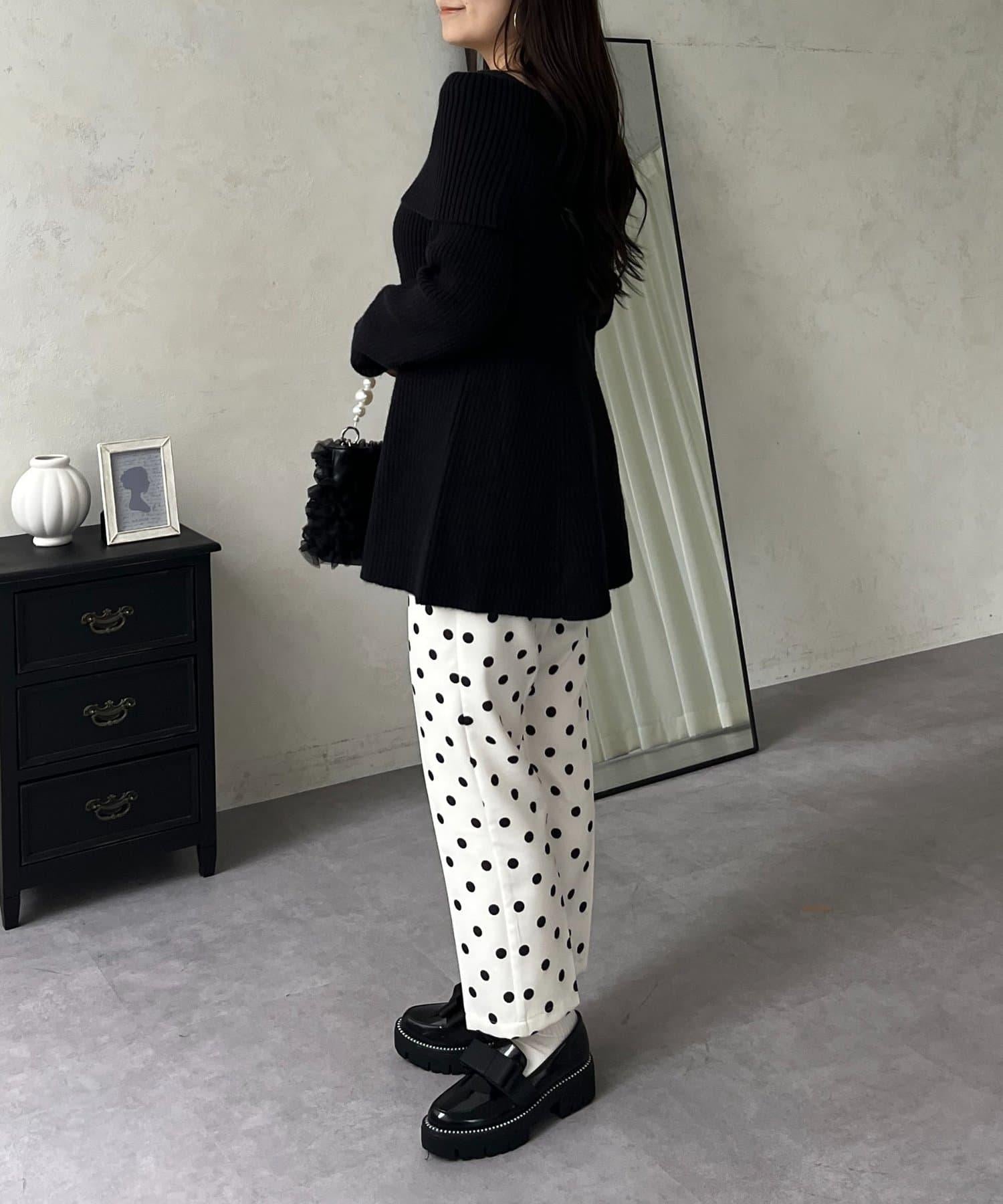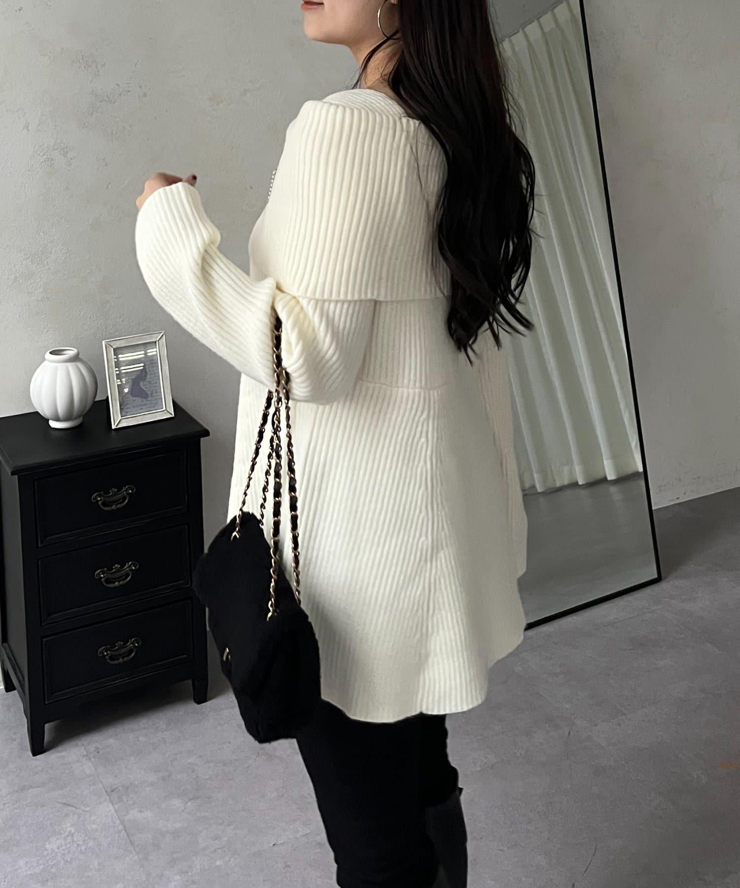 預約商品【防靜電】一字肩荷葉邊針織衫