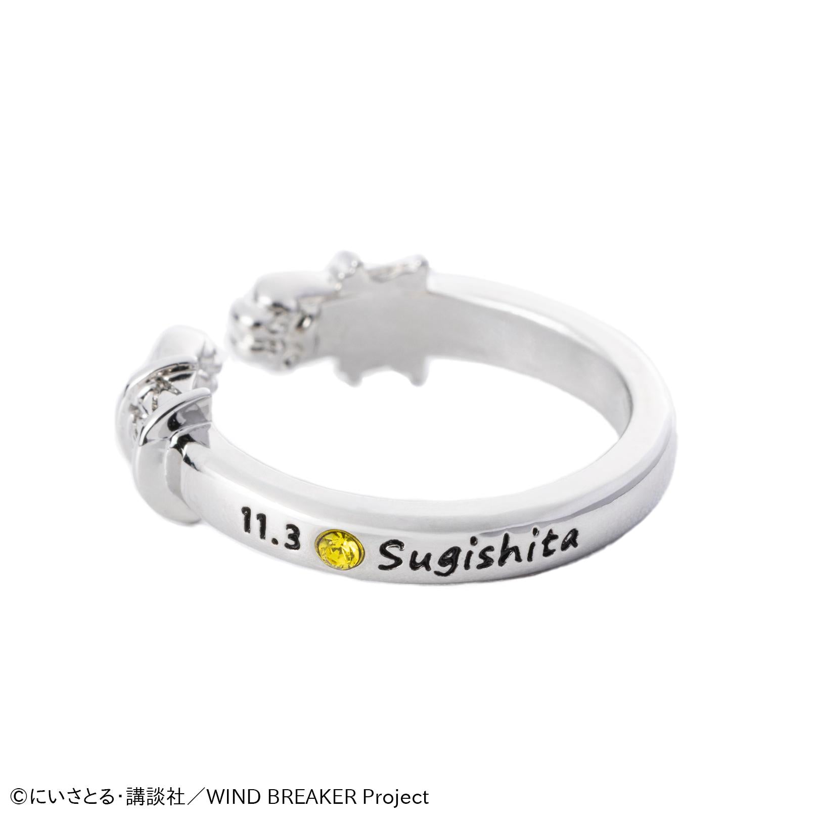 鐫刻有他的生日(11 月 3 日)和名字 "Sugishita",並鑲嵌有他的誕生石黃水晶顏色的水鑽。
