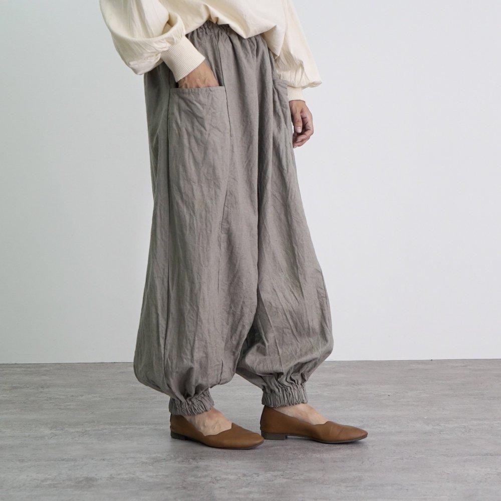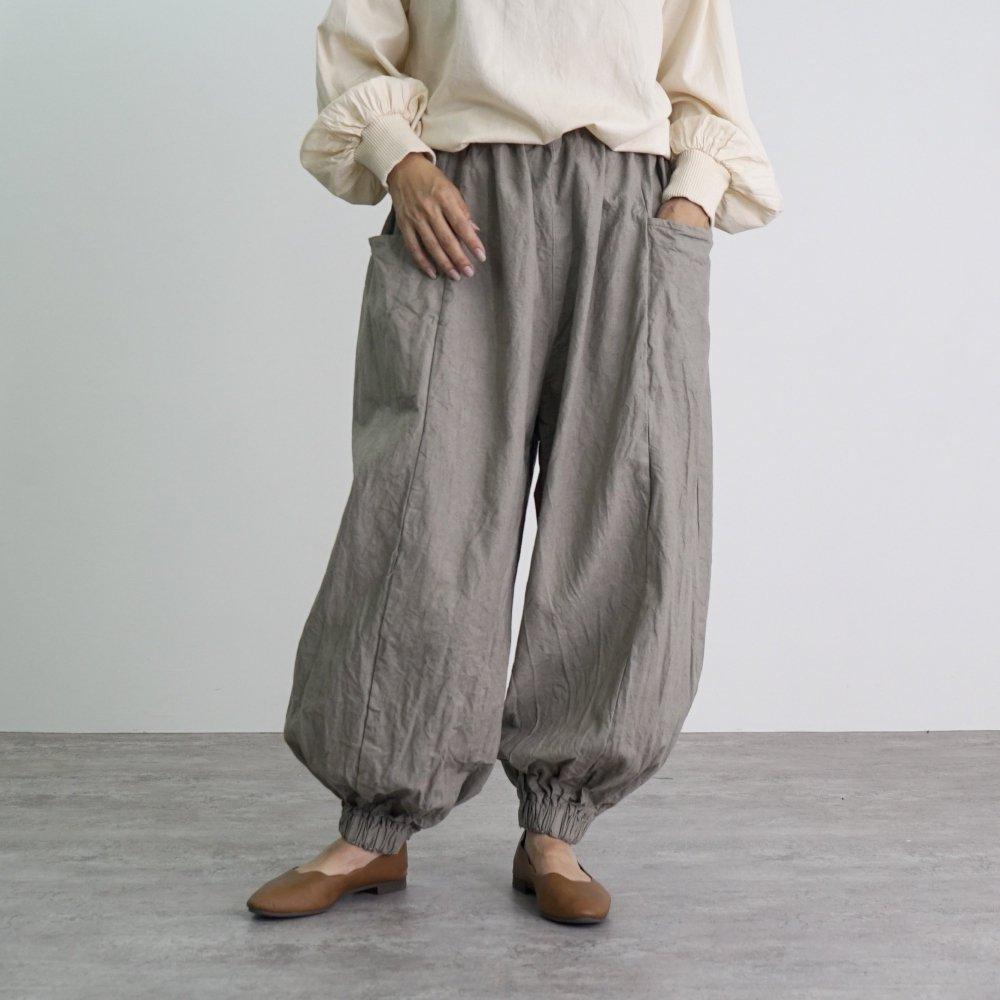 成人化的可愛設計 :可長期穿著♪[Unlikely 麻質長褲]我們的人氣長褲大多使用棉質材料,但這次我們製作了麻質長褲♪我們使用了具有良好張力的麻質材料,以打造圓潤的輪廓。我們對此非常重視。