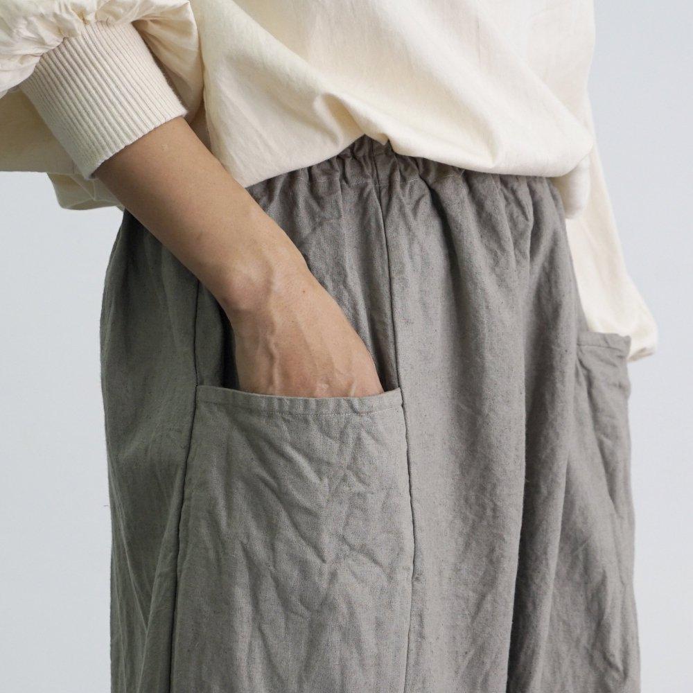 四季皆宜:亞麻具有夏季釋放多餘熱量,保持乾爽舒適,春秋冬季保暖的功能,因此四季皆宜。即使出汗也不會粘在皮膚上,所以即使在出汗的季節也能穿著舒適。 它不透明,所以在寒冷的秋冬季節,可以通過疊穿緊身衣等來保暖。推薦座標★ 低身高款 [創作者特別推薦要點] 設計:Mika 大膽採用下襬較粗的鬆緊帶,追求飄落時的可愛廓形。紗質面料推薦搭配上衣,與涼鞋、運動鞋等都能完美搭配,請根據場景和季節盡情穿著。 [材質要點] 具有亞麻般清爽的手感和光滑的觸感!耐磨耐洗,在使用過程中也能享受到質感的變化,我想觸摸肌膚的感覺會越來越熟悉。利用亞麻特有的清爽感,不使用任何軟化工藝。如果您擔心在運輸和包裝過程中容易折皺,請不要在過水熨燙一次後使用。尺寸] 162 厘米、152 厘米自由尺寸/型號 請參照尺寸表瞭解詳情。重量:約 530 克 口袋:2 個 腰部有鬆緊帶和繩子 [面料] 棉 50%、亞麻 50%-千住織物 [縫製] 愛知縣 [染色] UZUiRO / 草木染色(山毛)