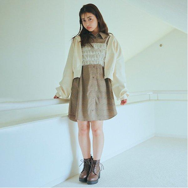 不同品味的組合:外觀透明甜美的半身裙和沉穩休閒的連身裙。