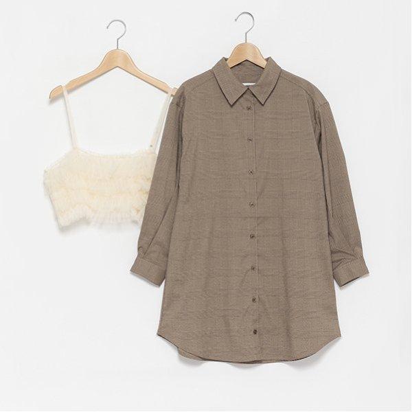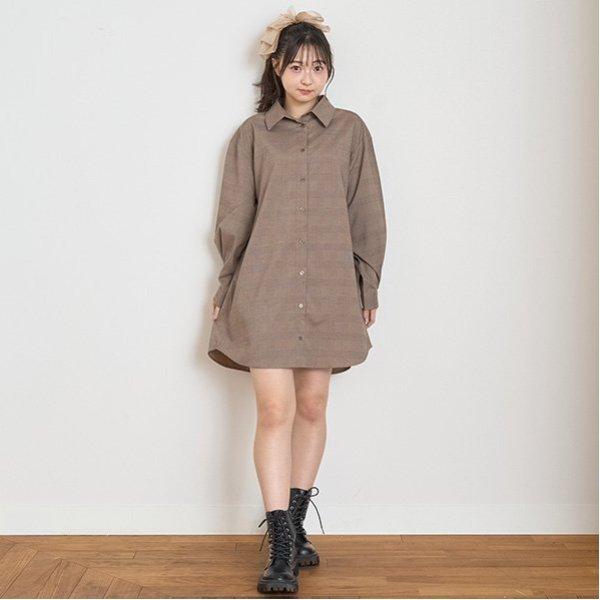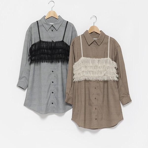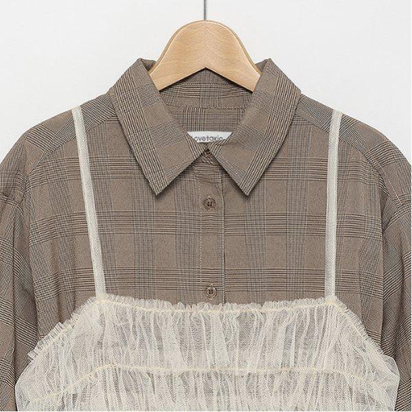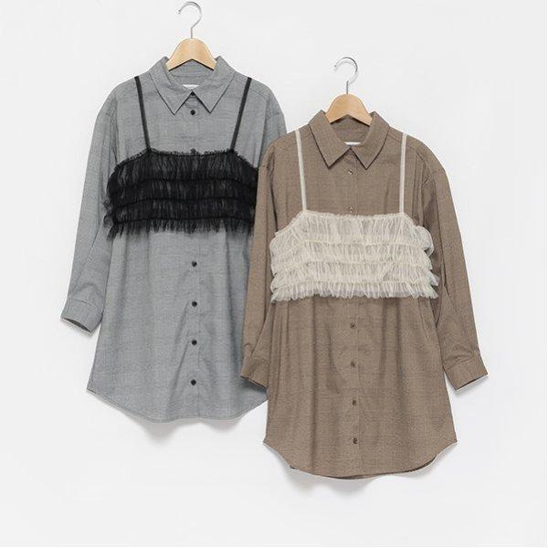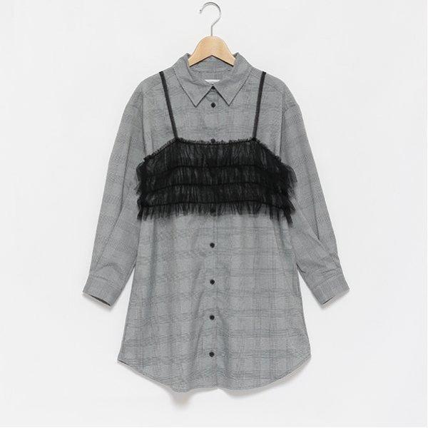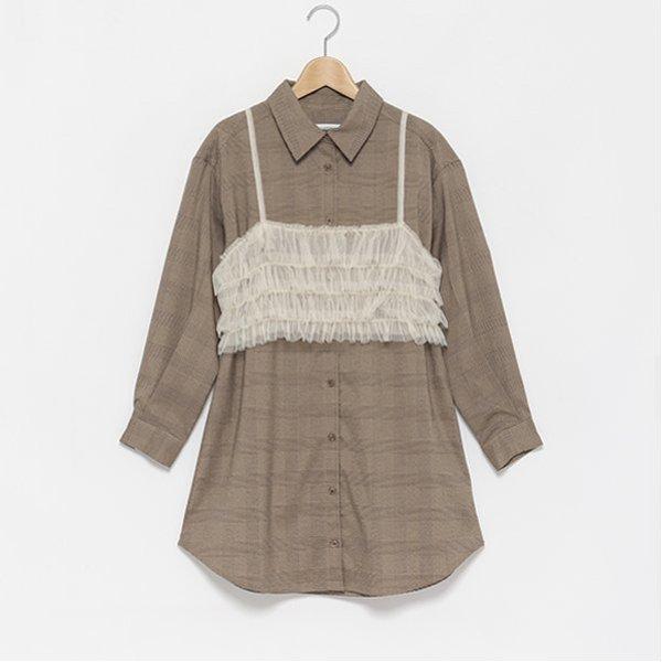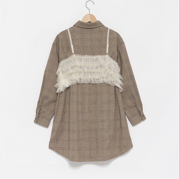 附吊帶格倫格紋襯衫連衣裙