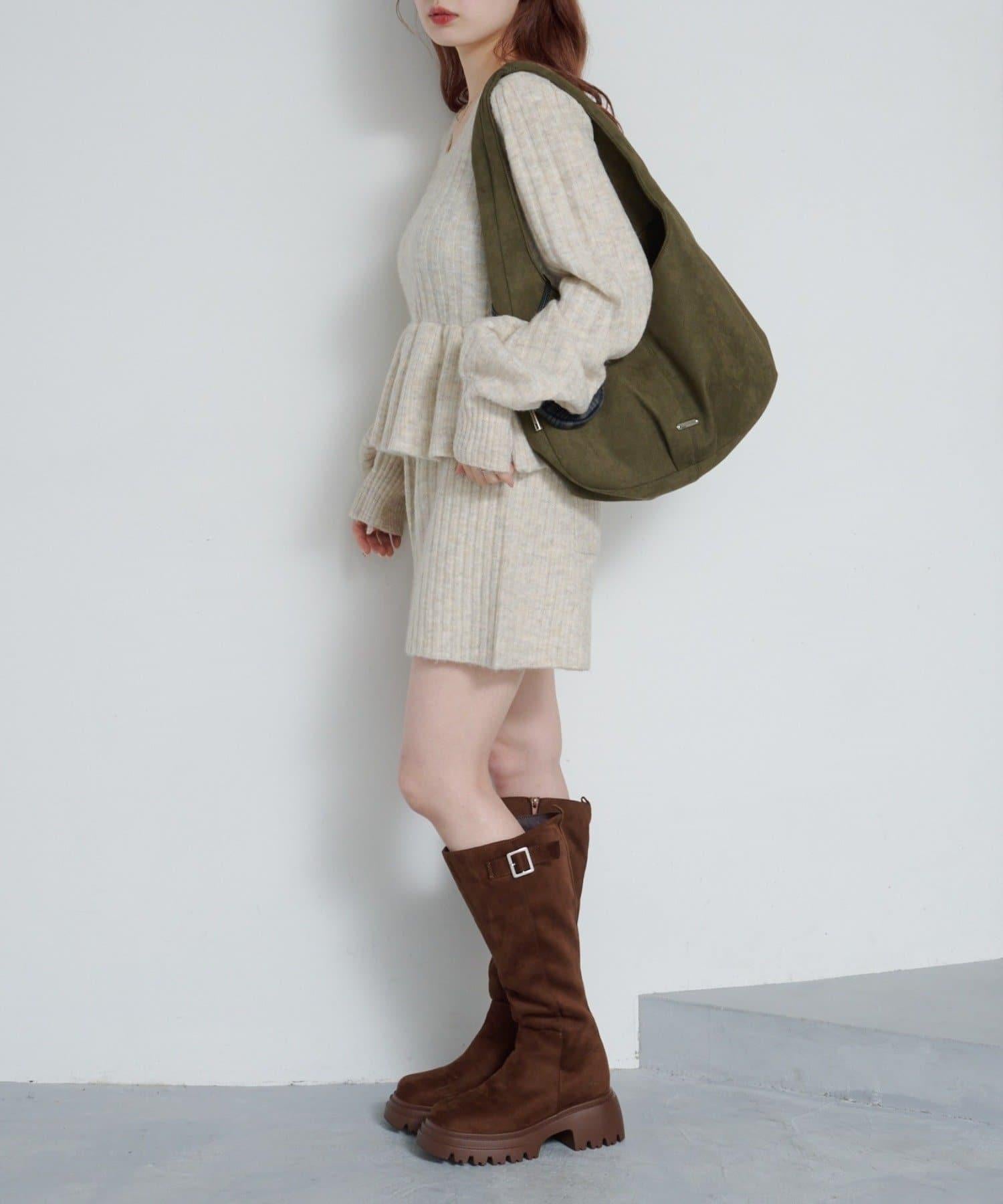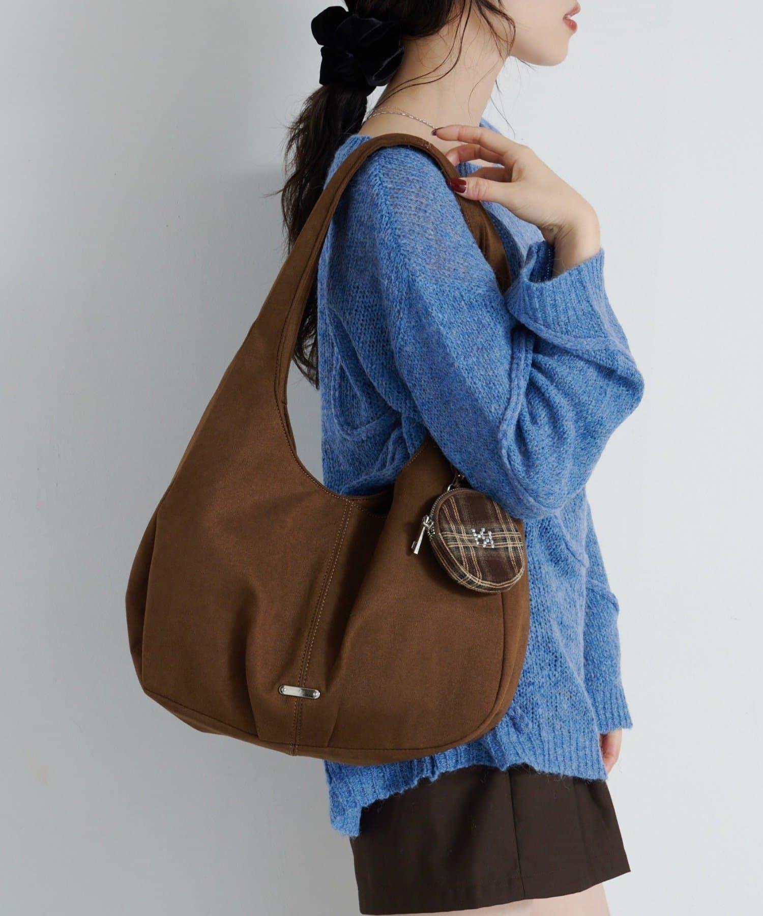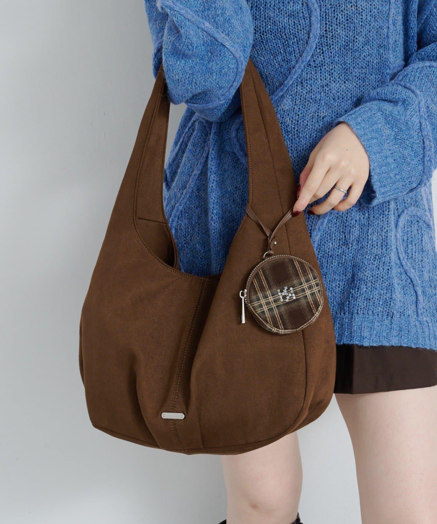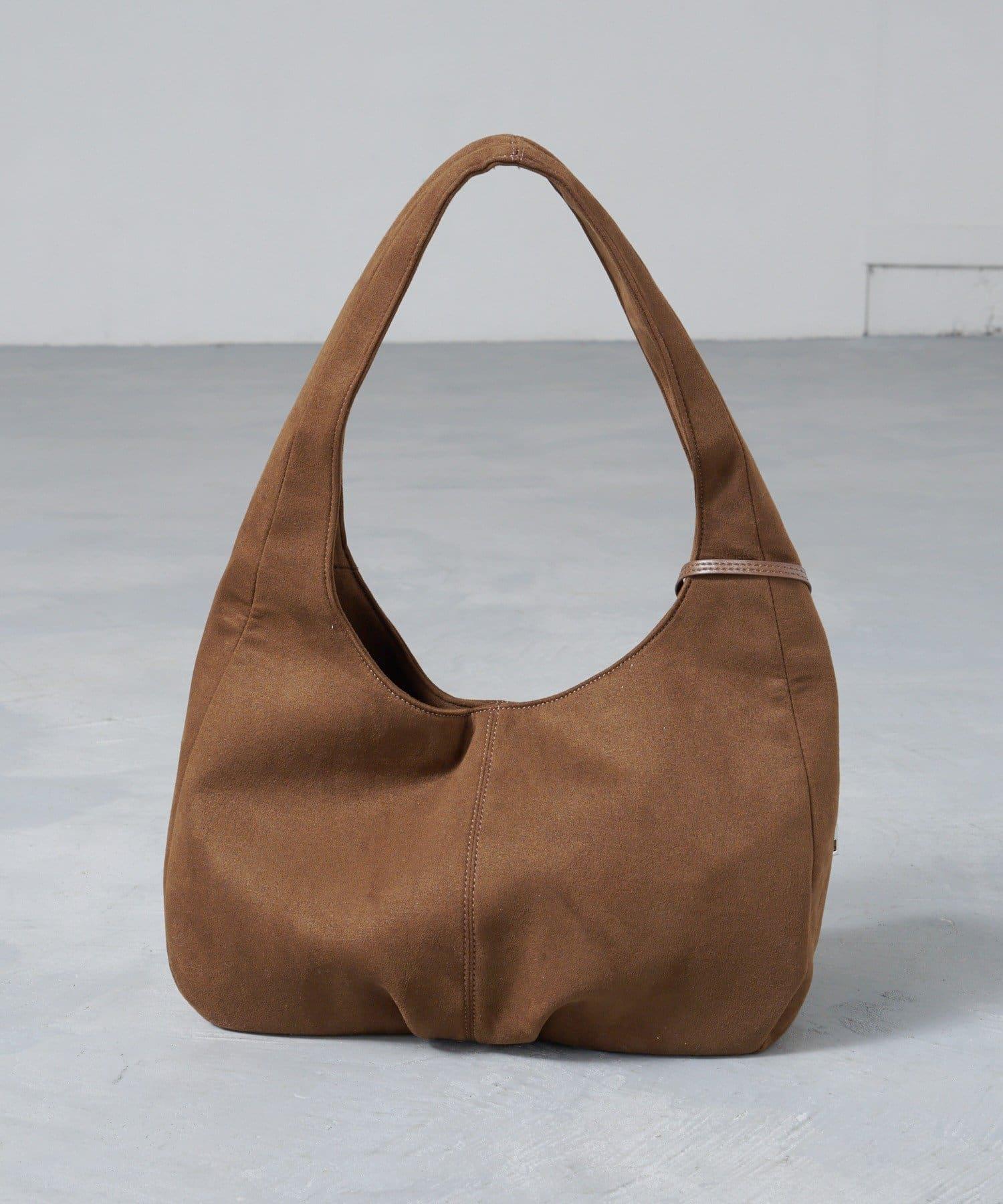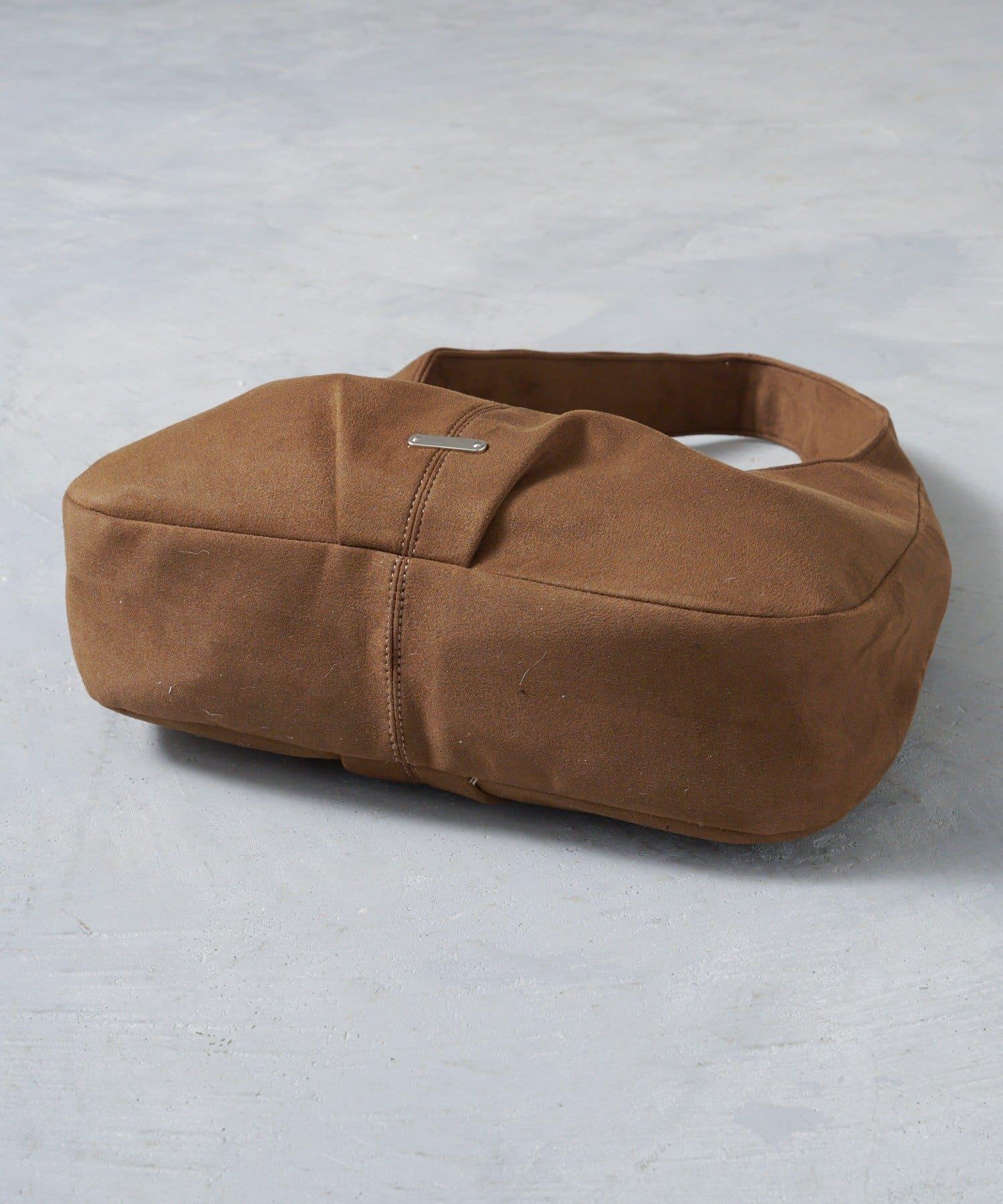 時尚麂皮單肩包,鑲有銀色鉚釘。