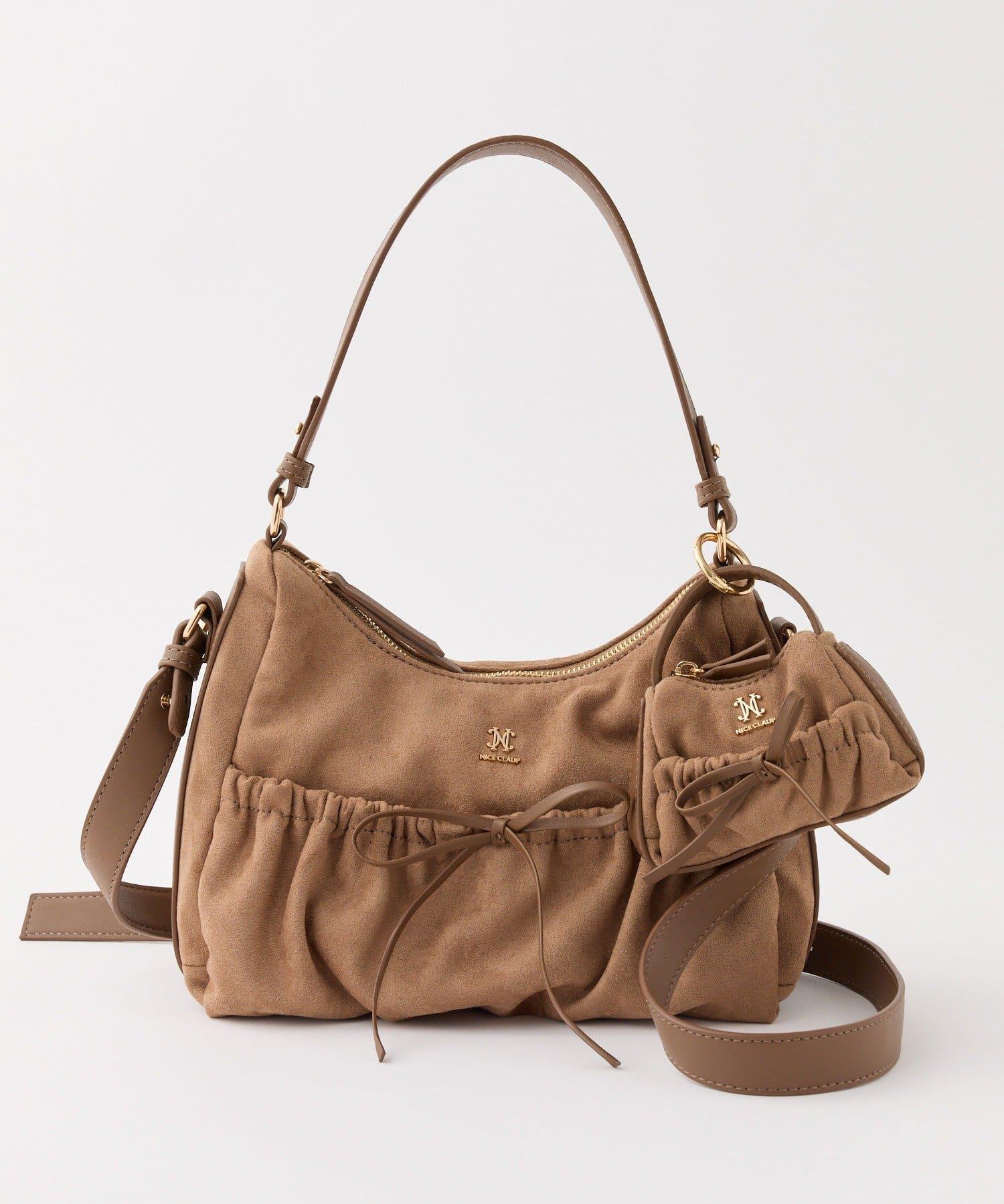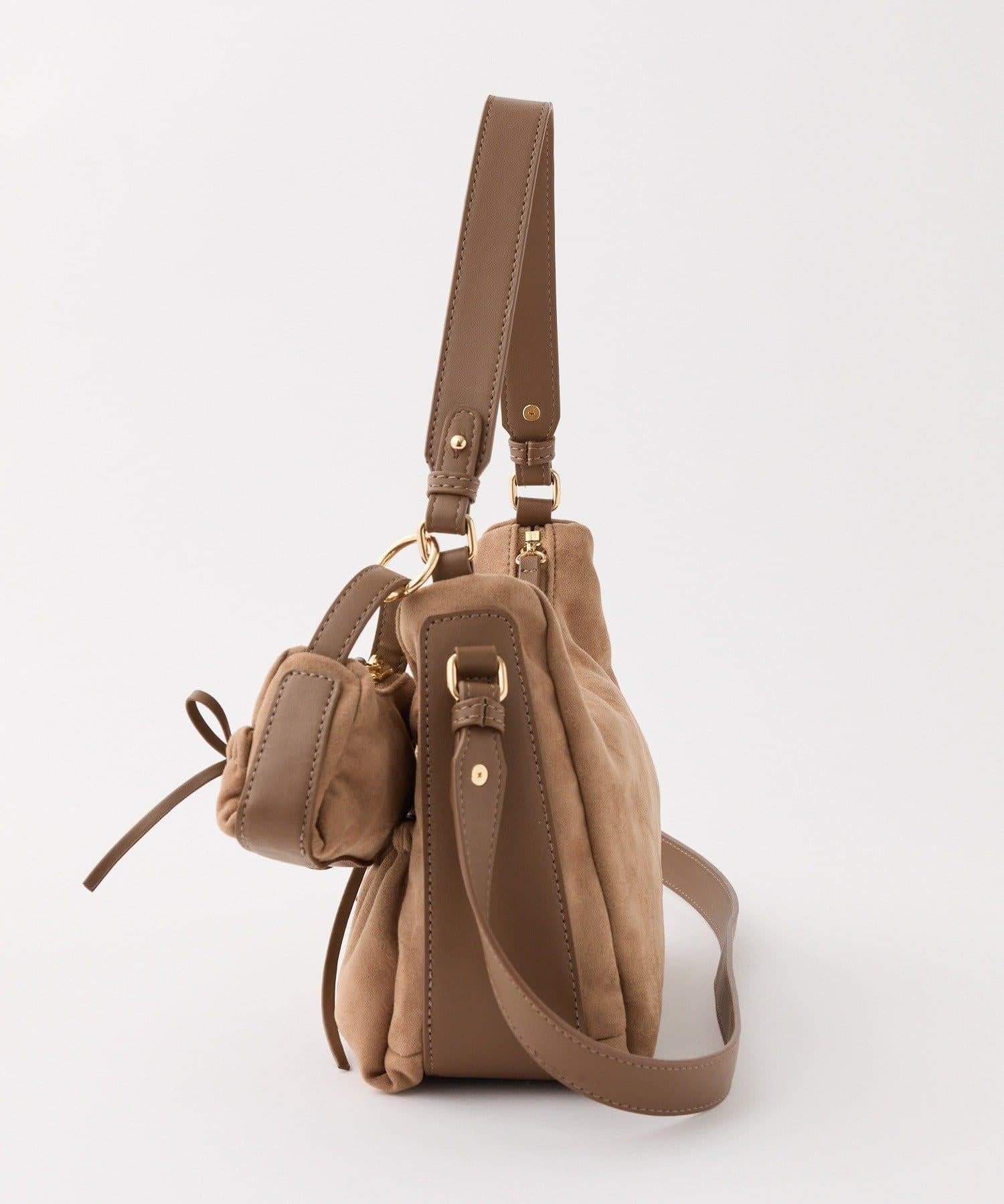 垂墜單肩包,配有前袋和小掛飾。