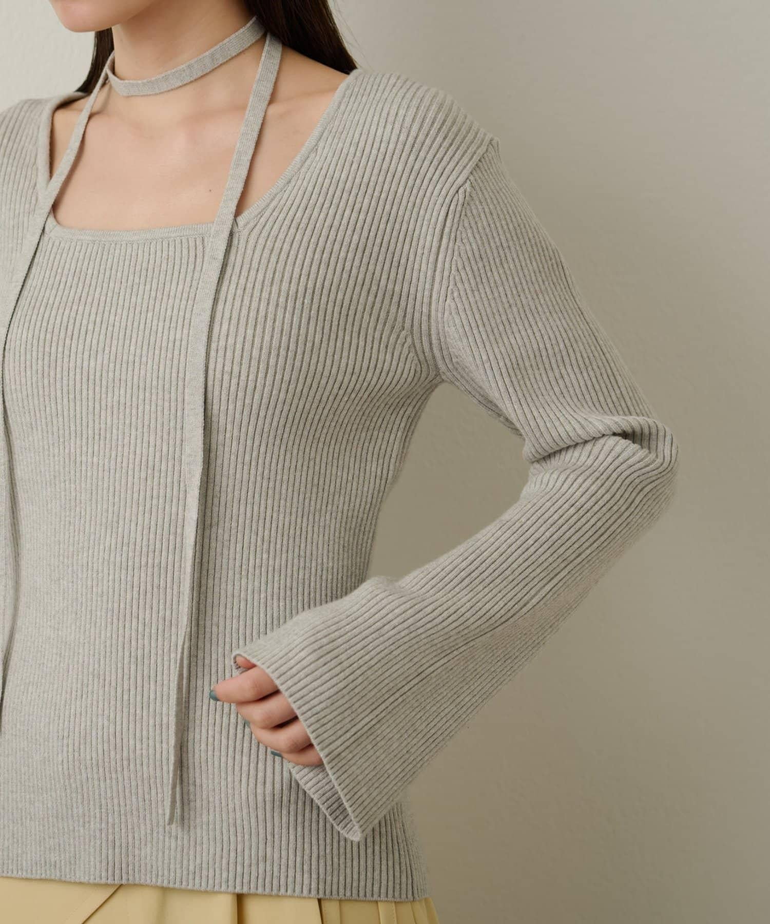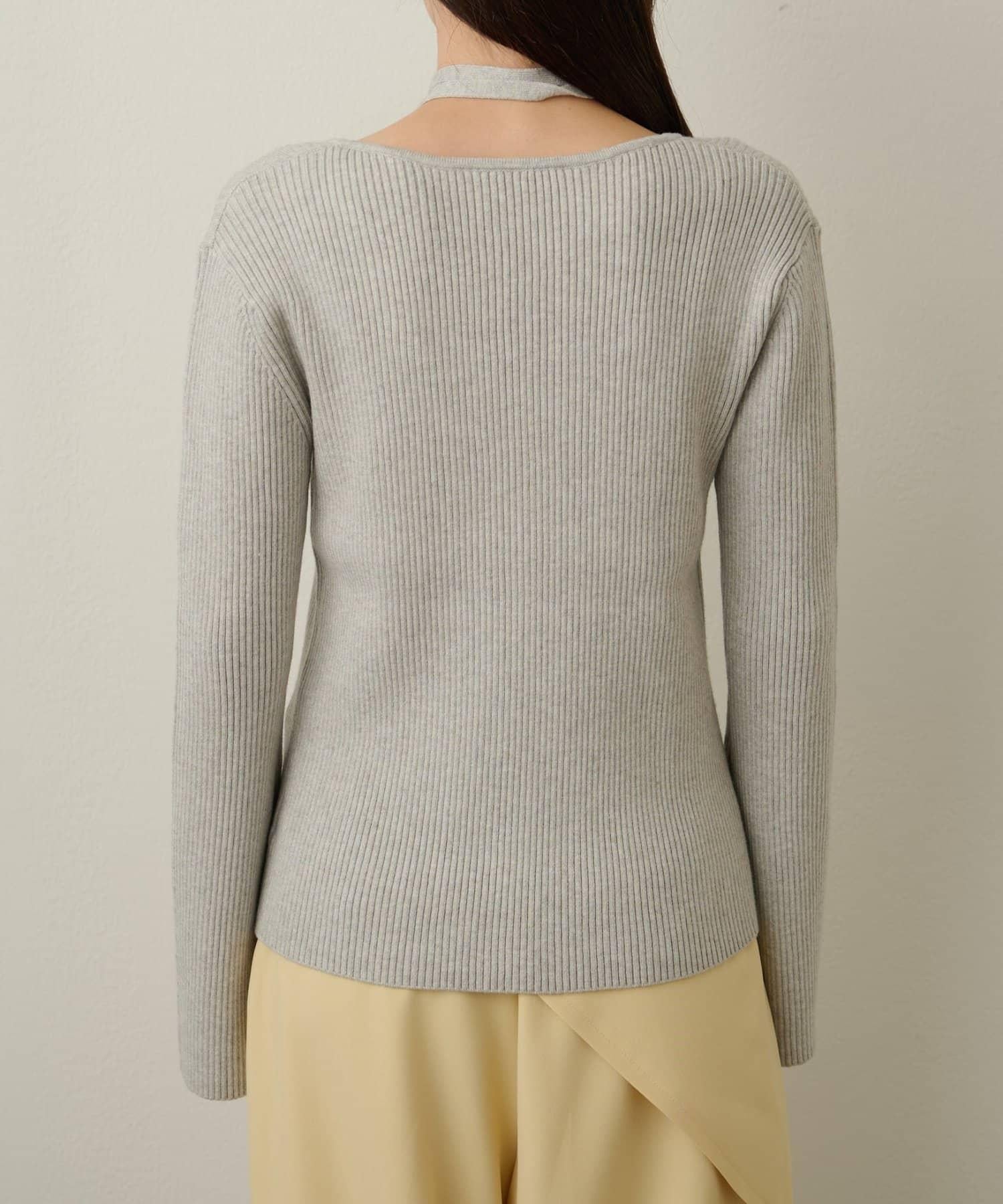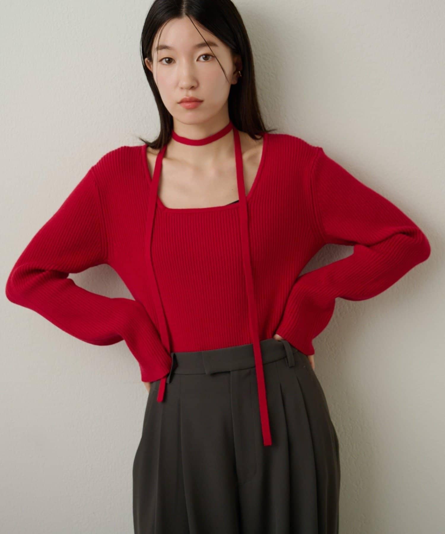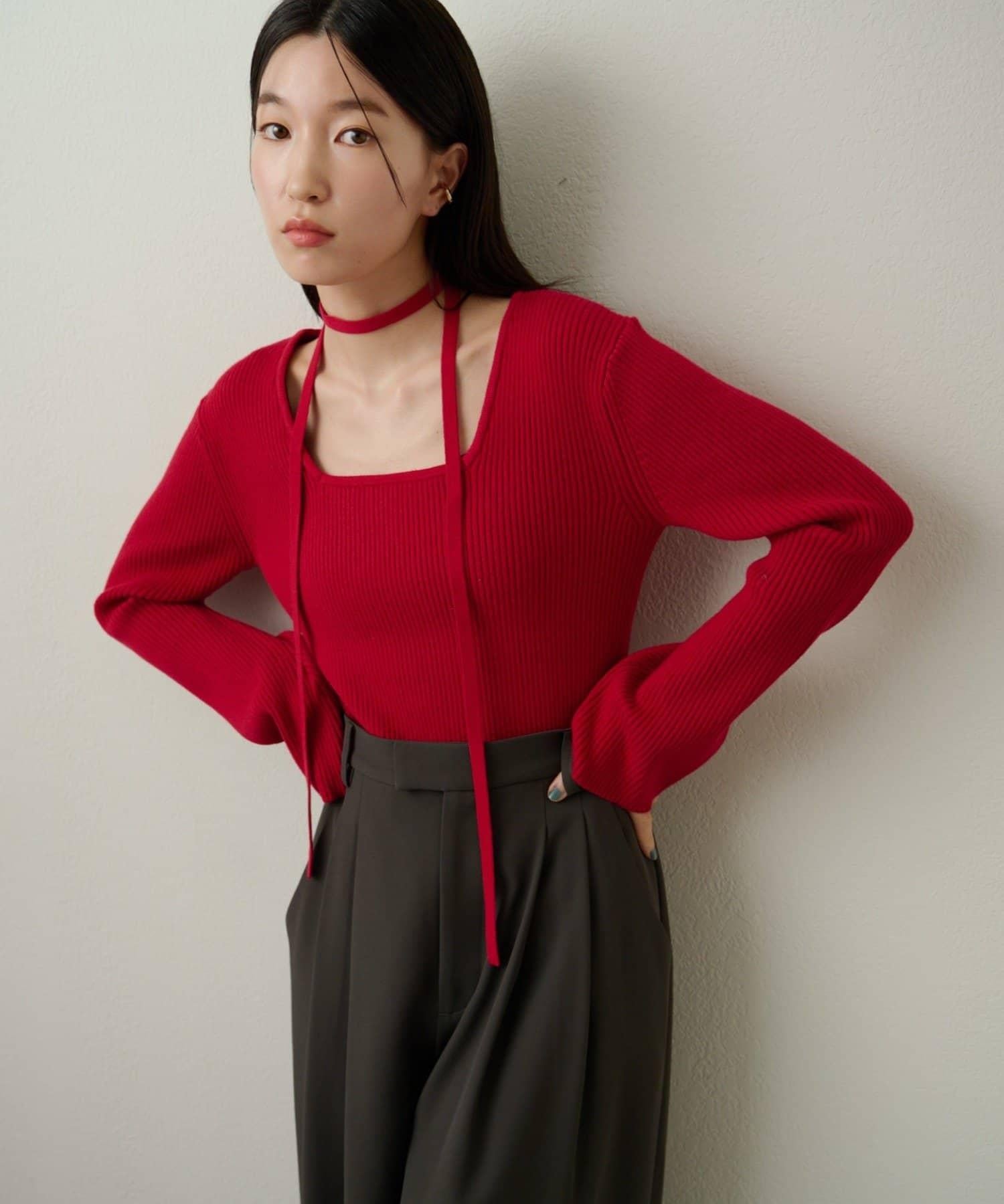 方形顏色與choker的組合賦予了這款針織衫季節性的風格。