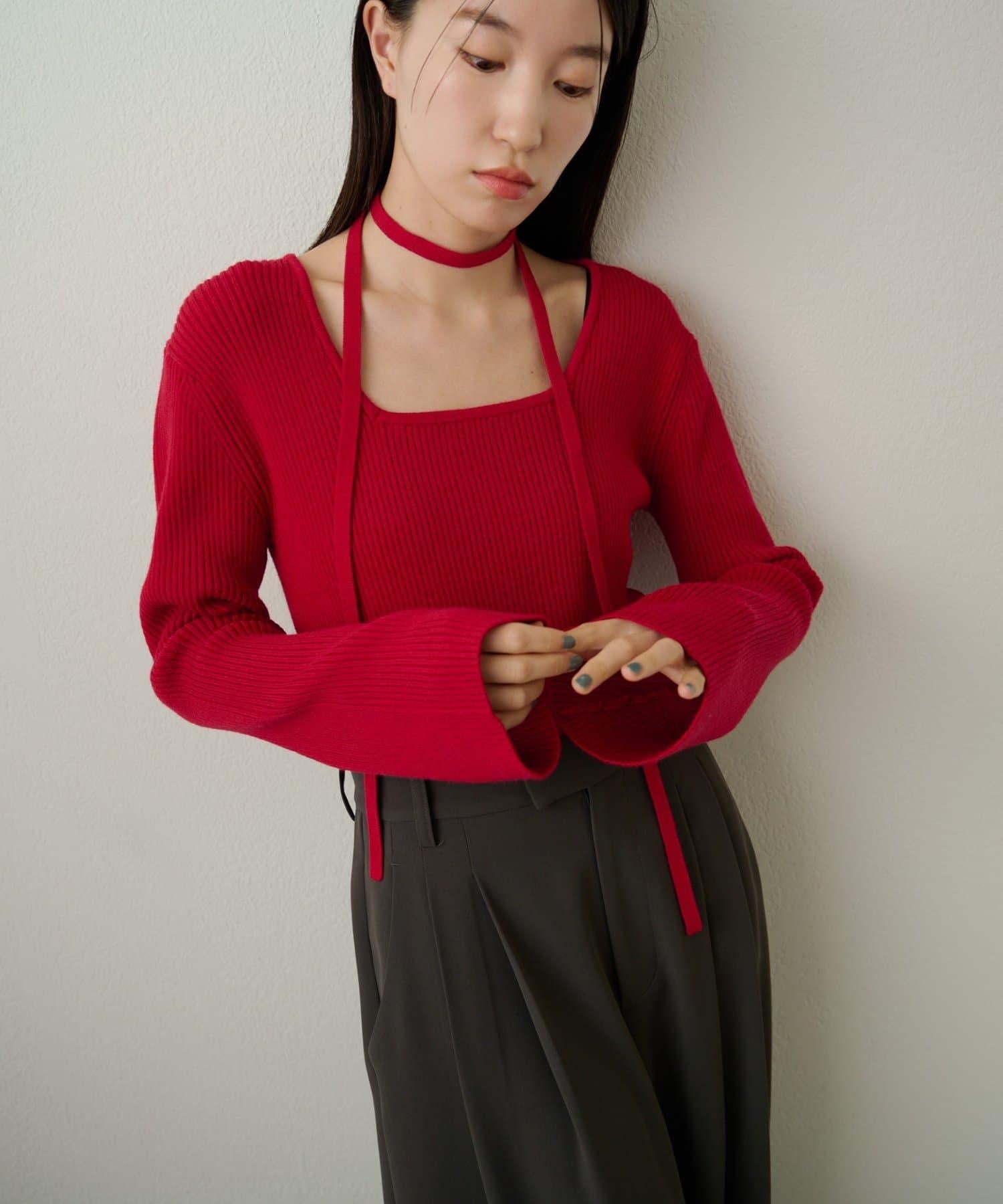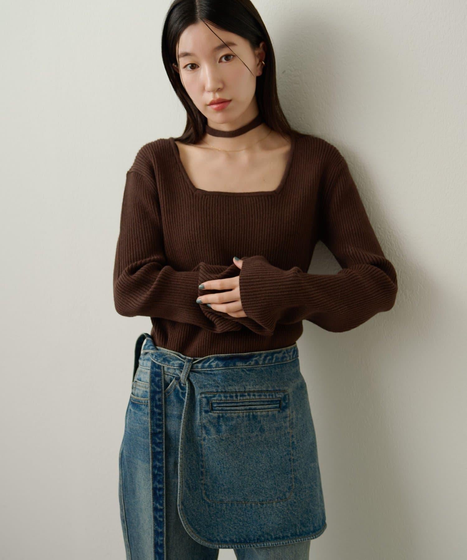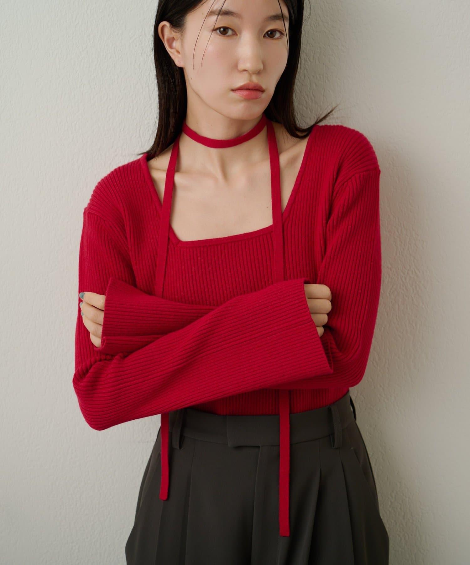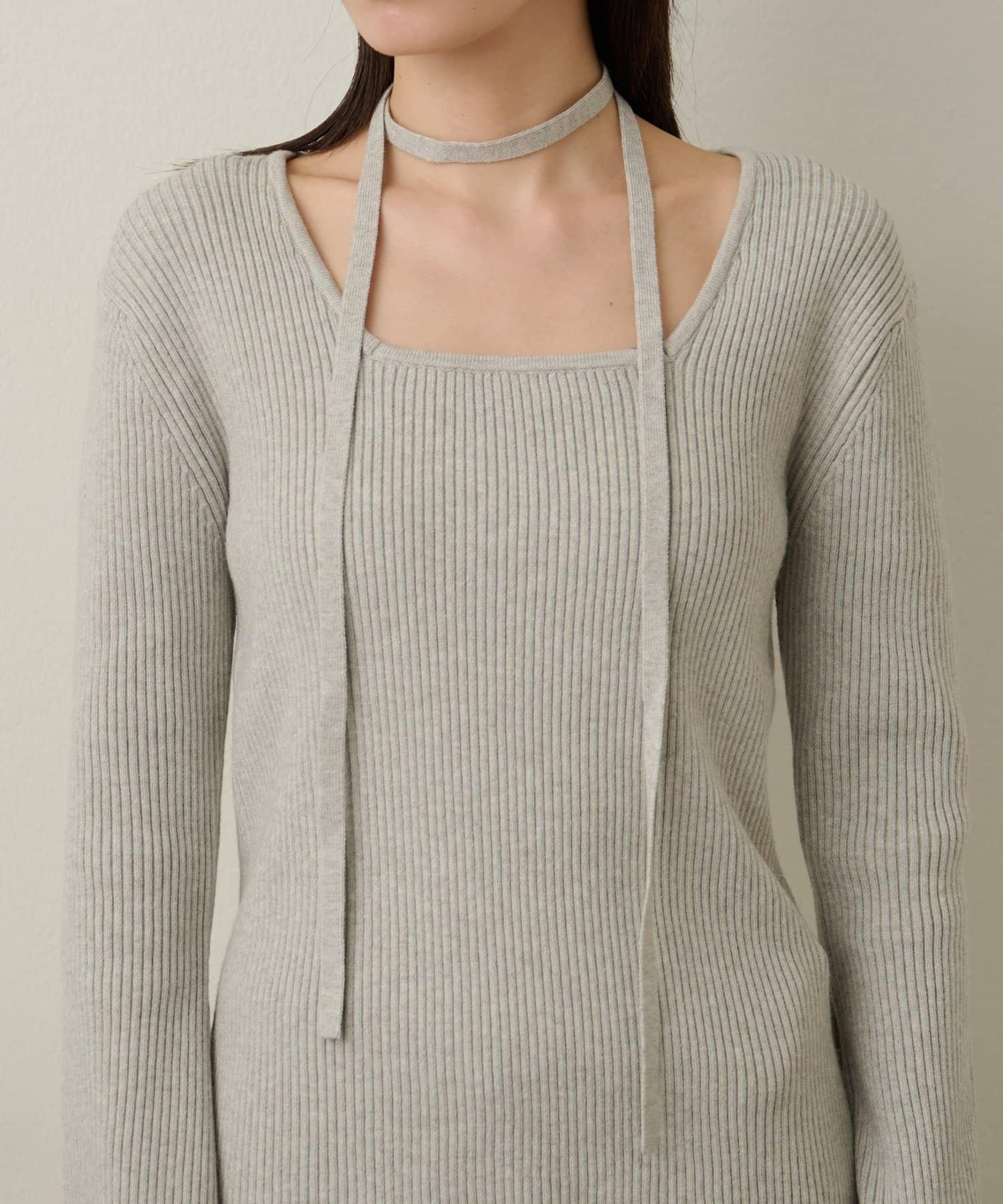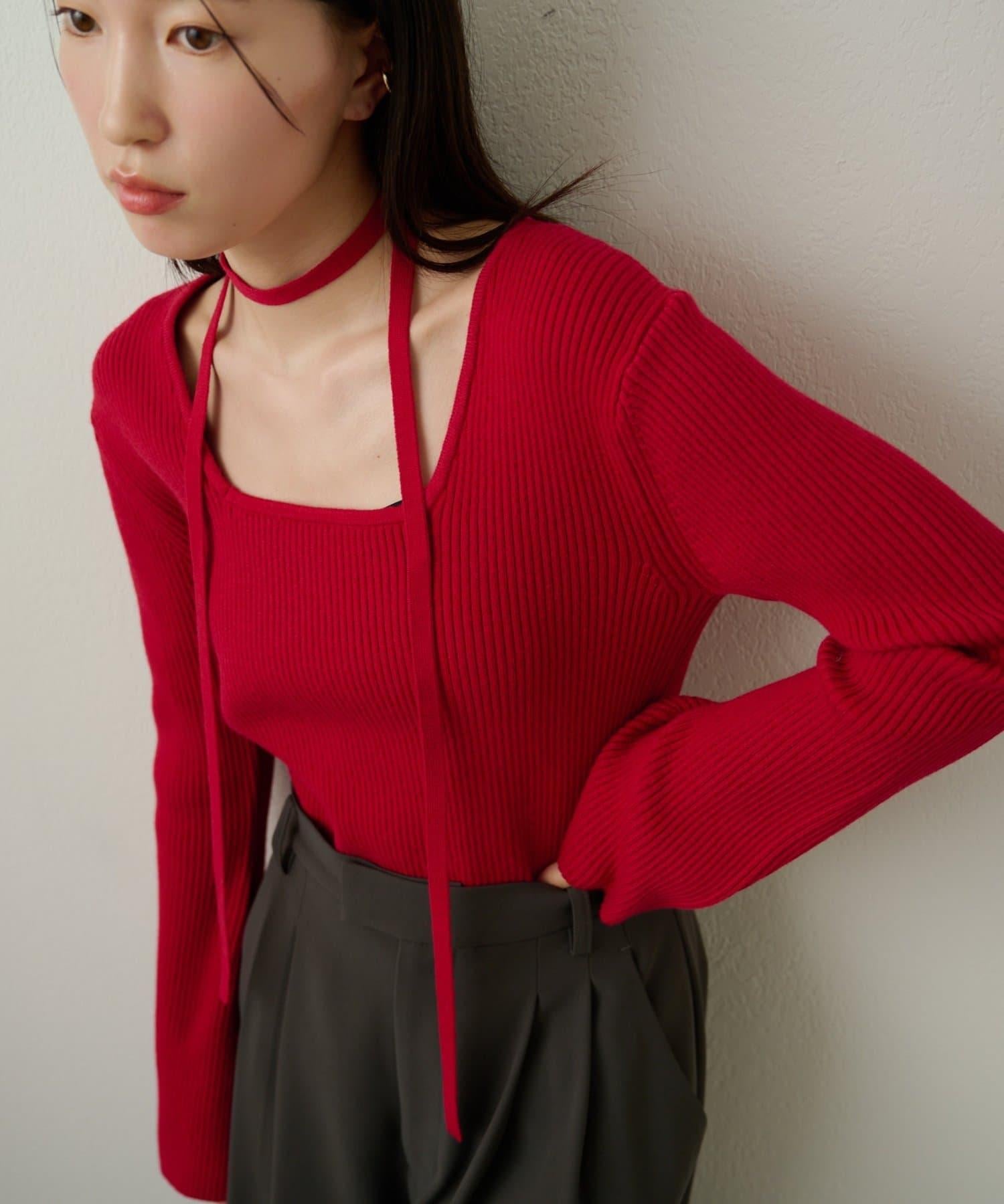 方形顏色與choker的組合賦予了這款針織衫季節性的風格。