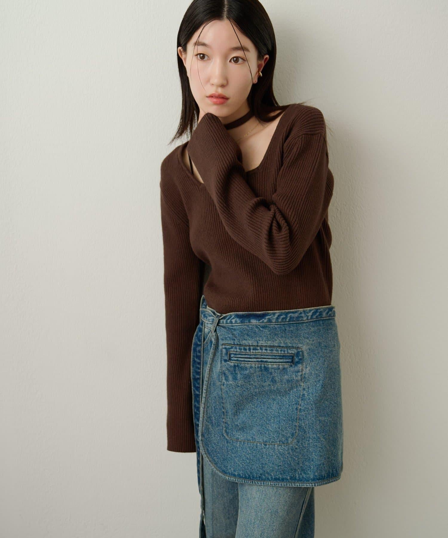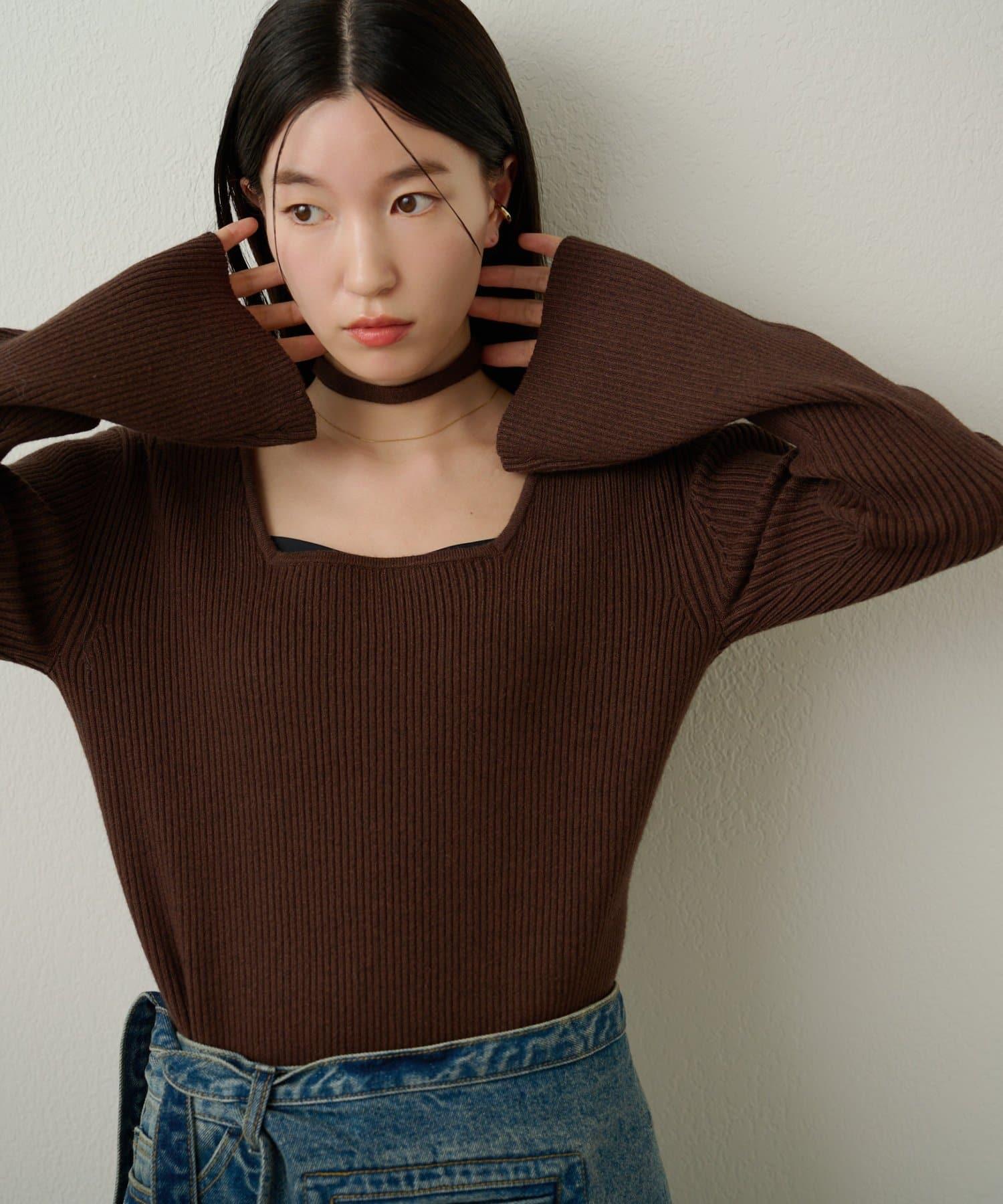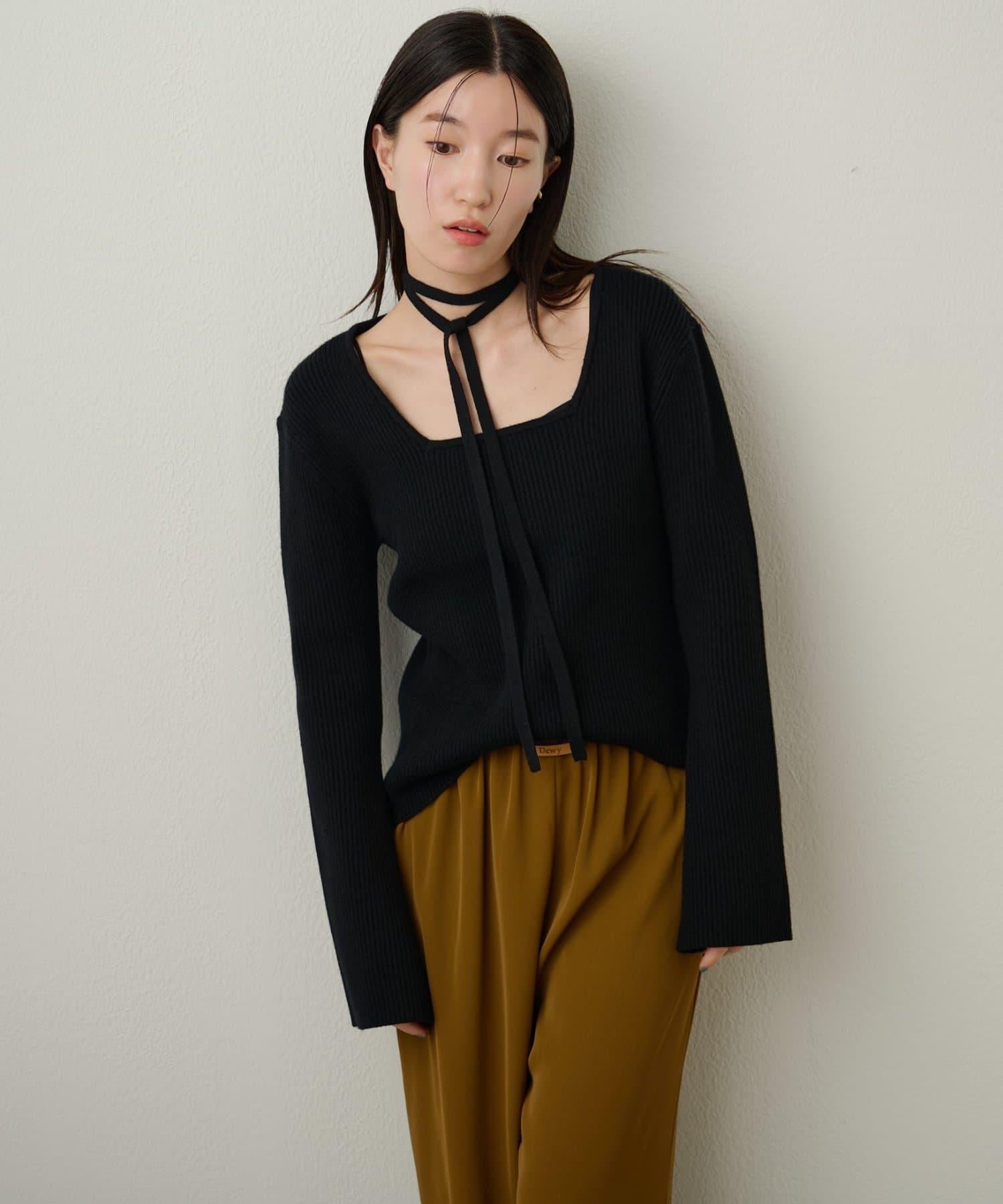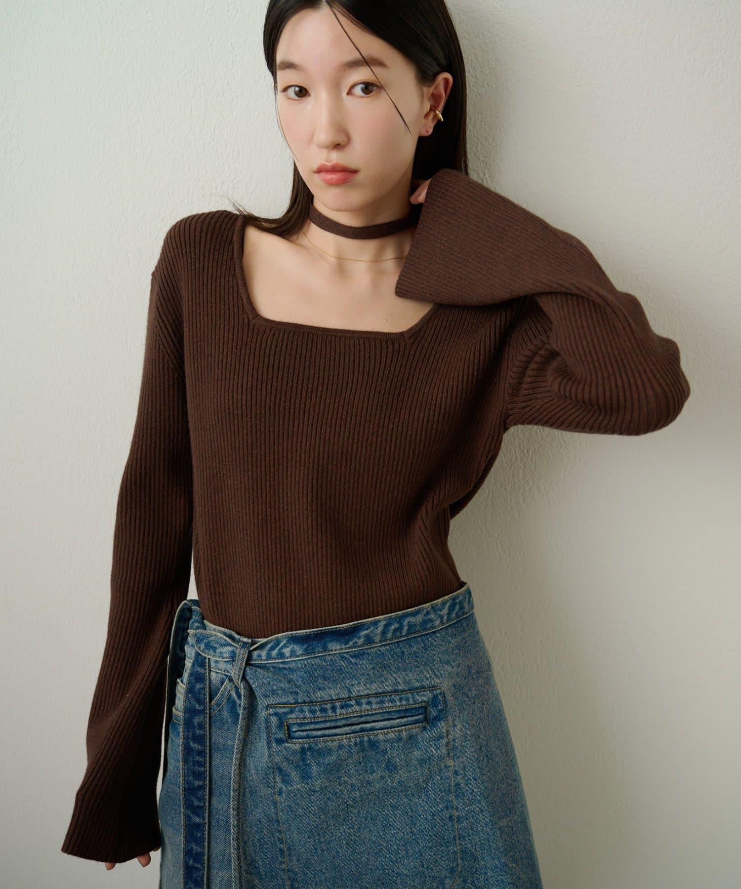方形顏色與choker的組合賦予了這款針織衫季節性的風格。