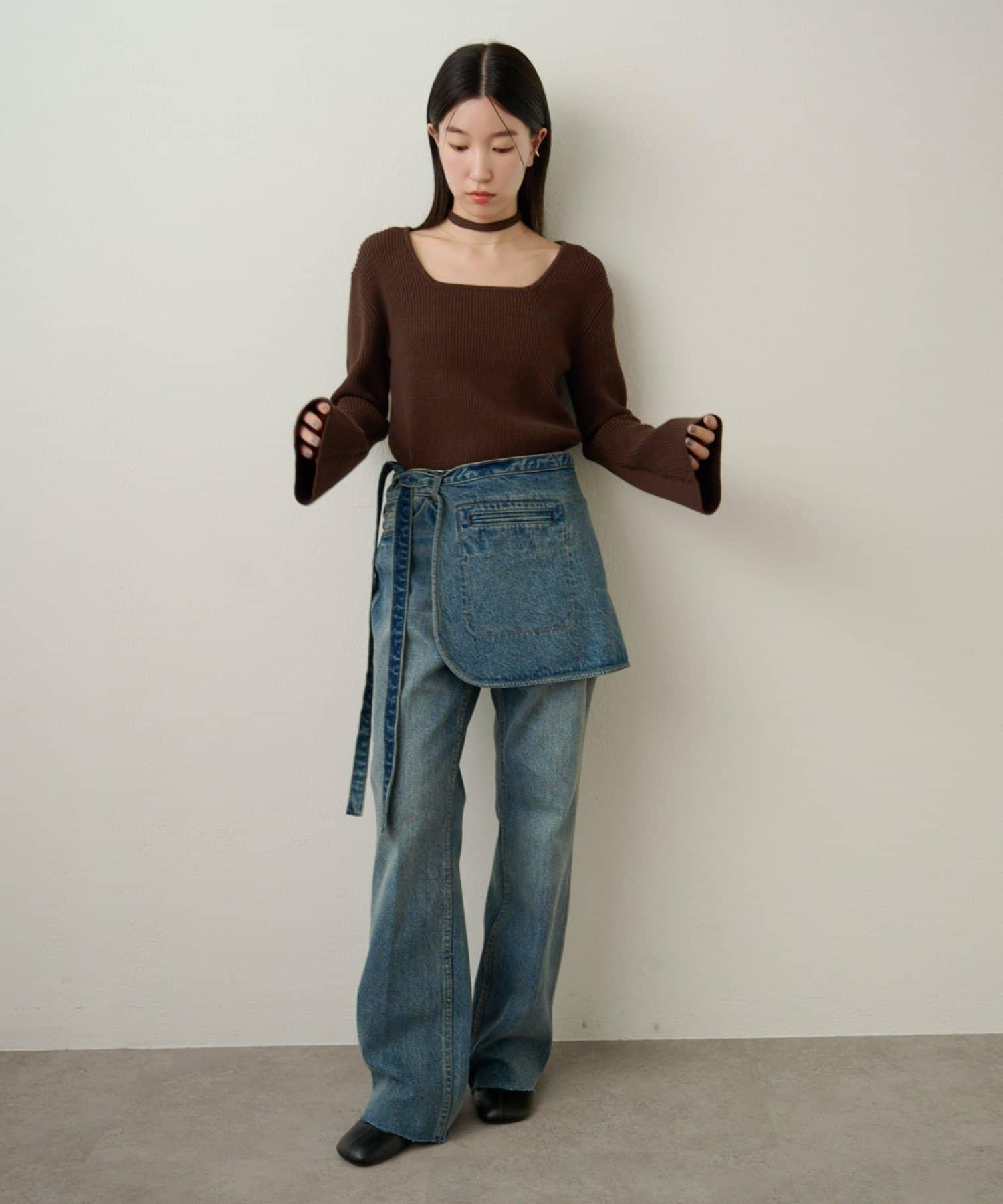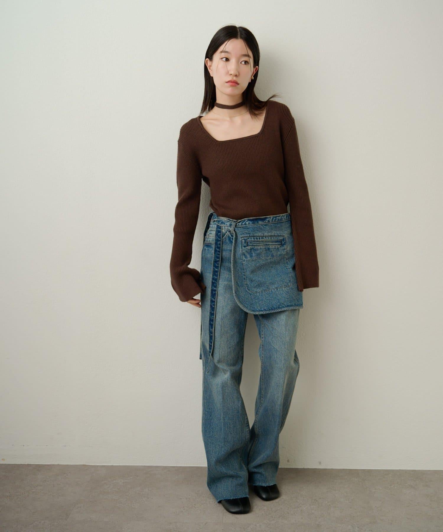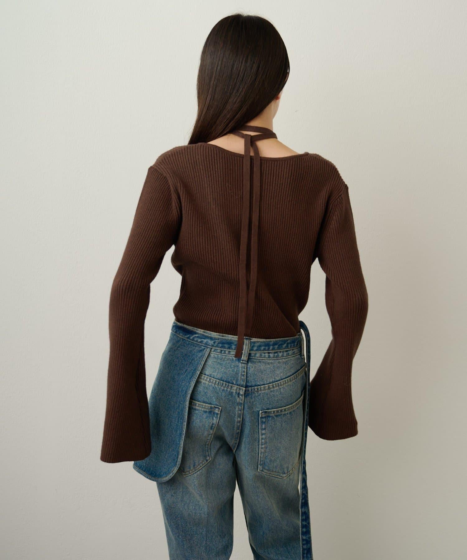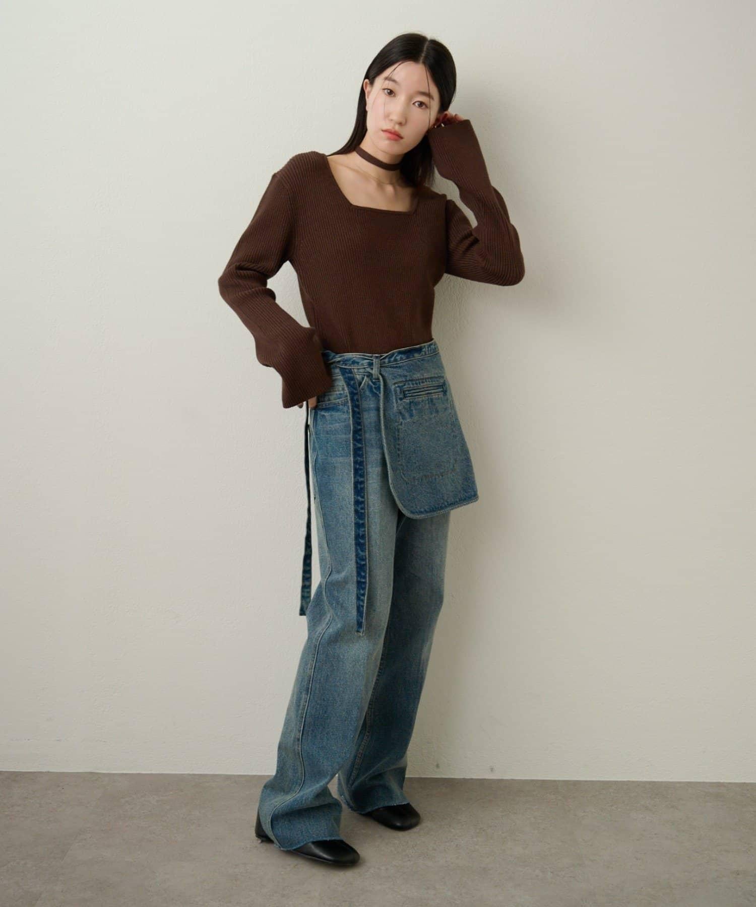 方形顏色與choker的組合賦予了這款針織衫季節性的風格。