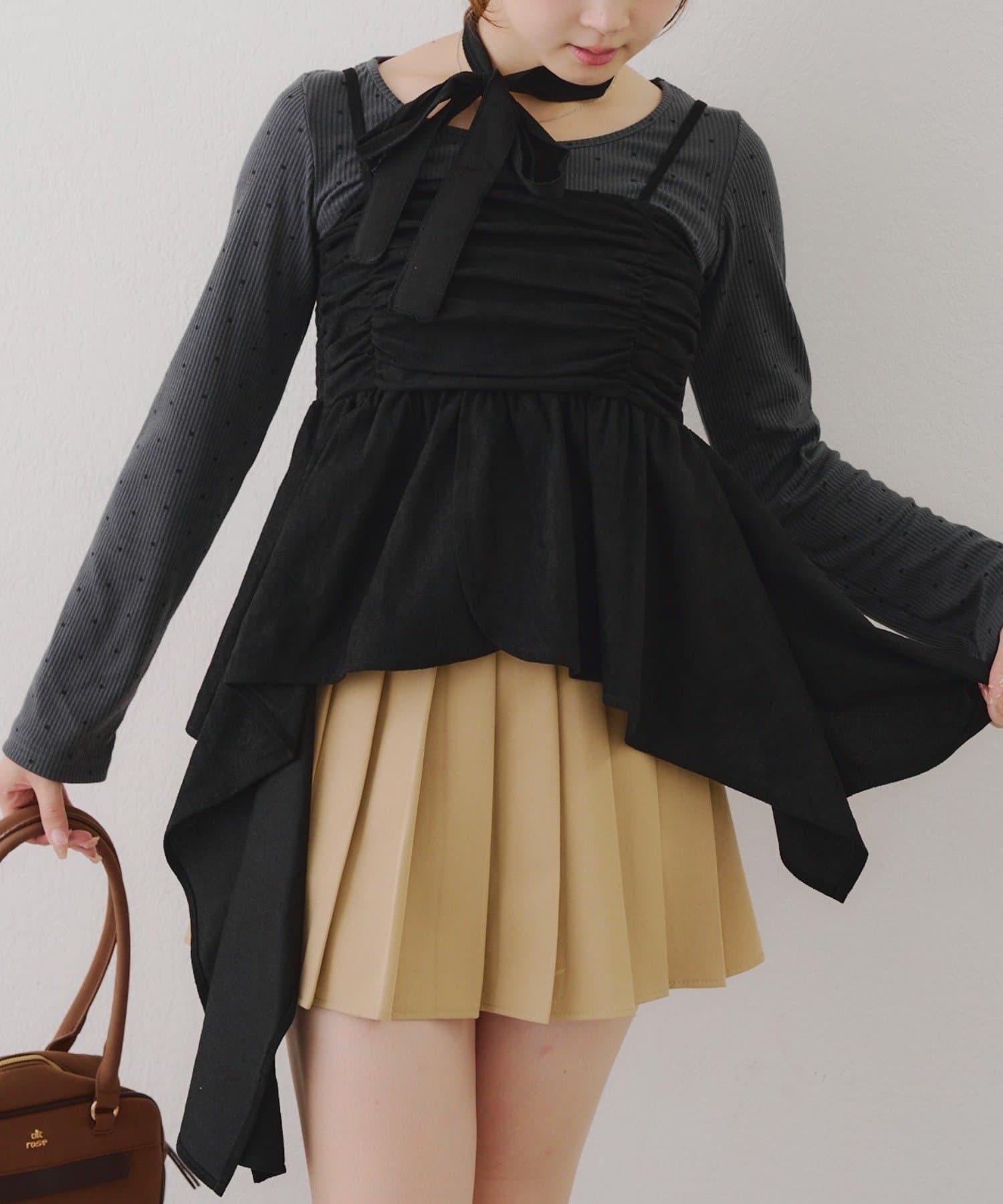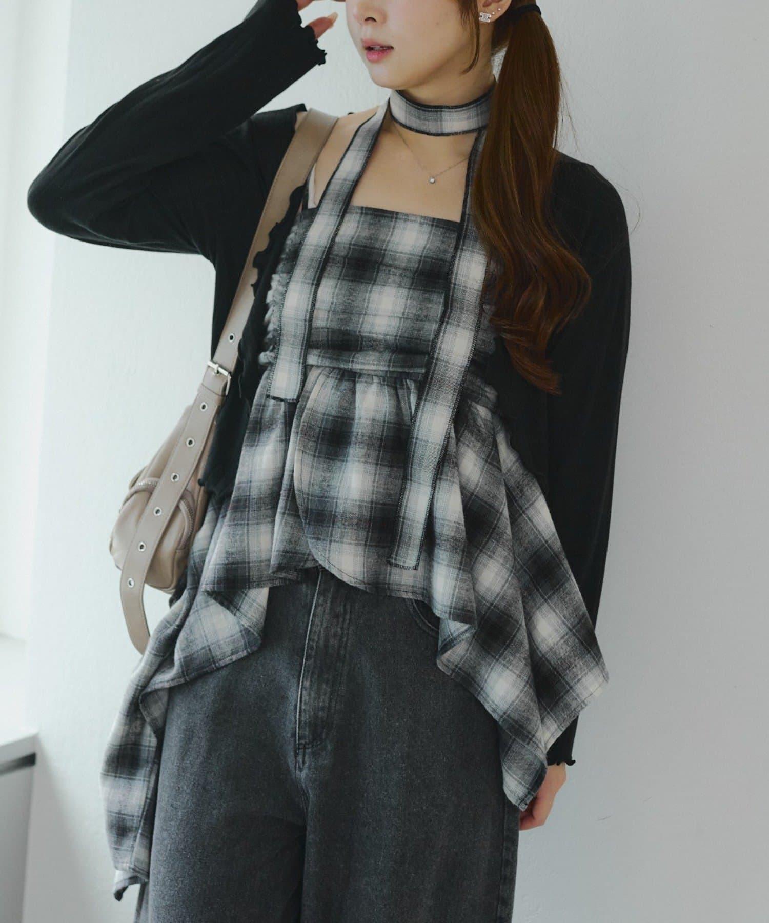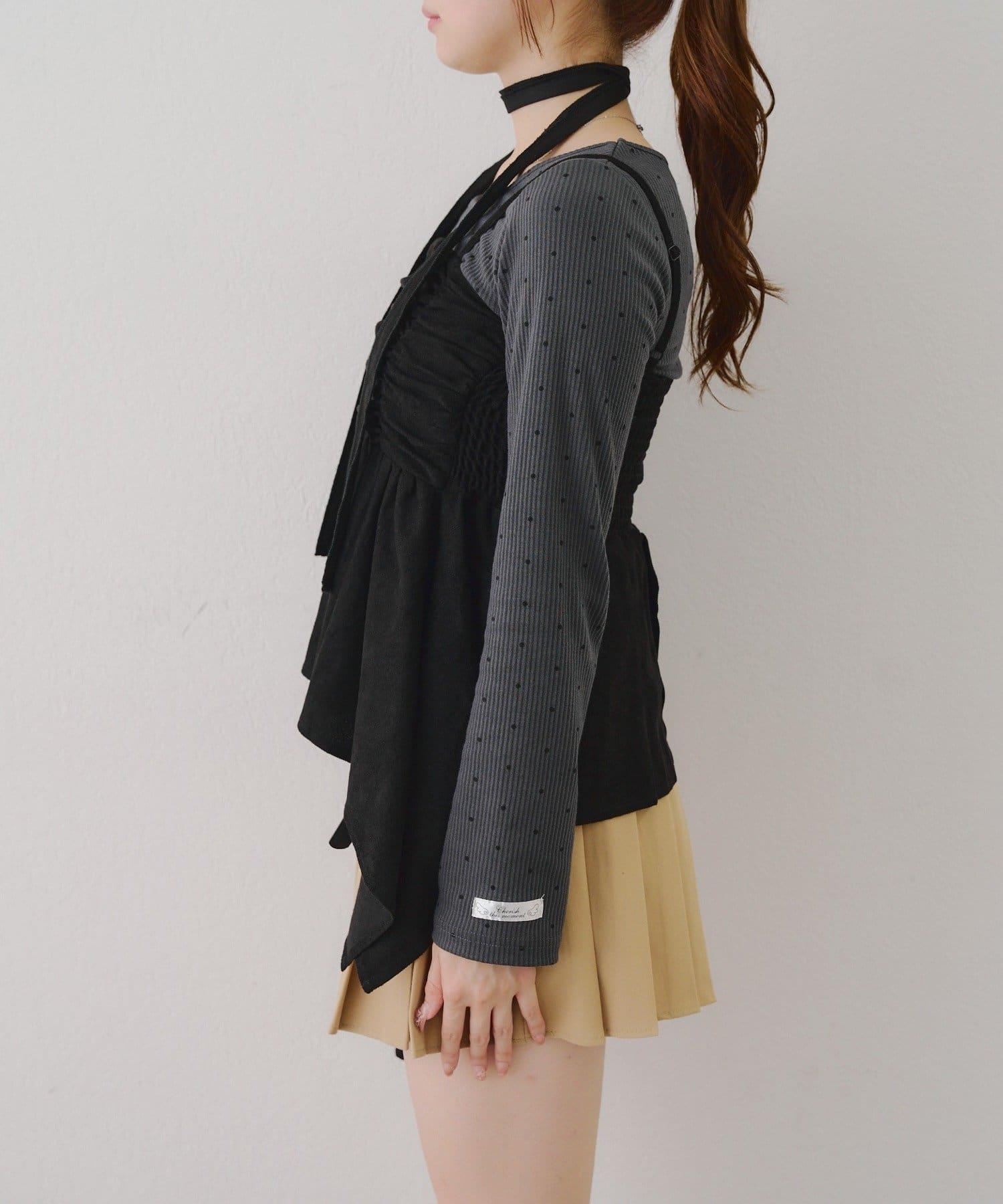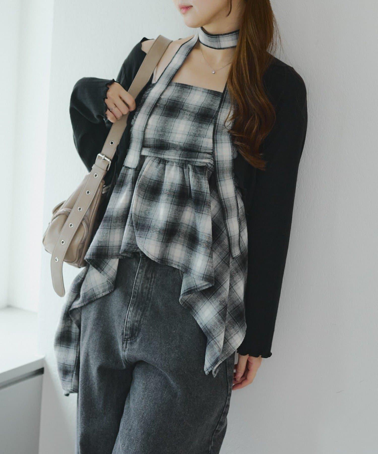 附項鍊頸圈設計顯身材【RMAF】不對稱下襬吊帶長款上衣
