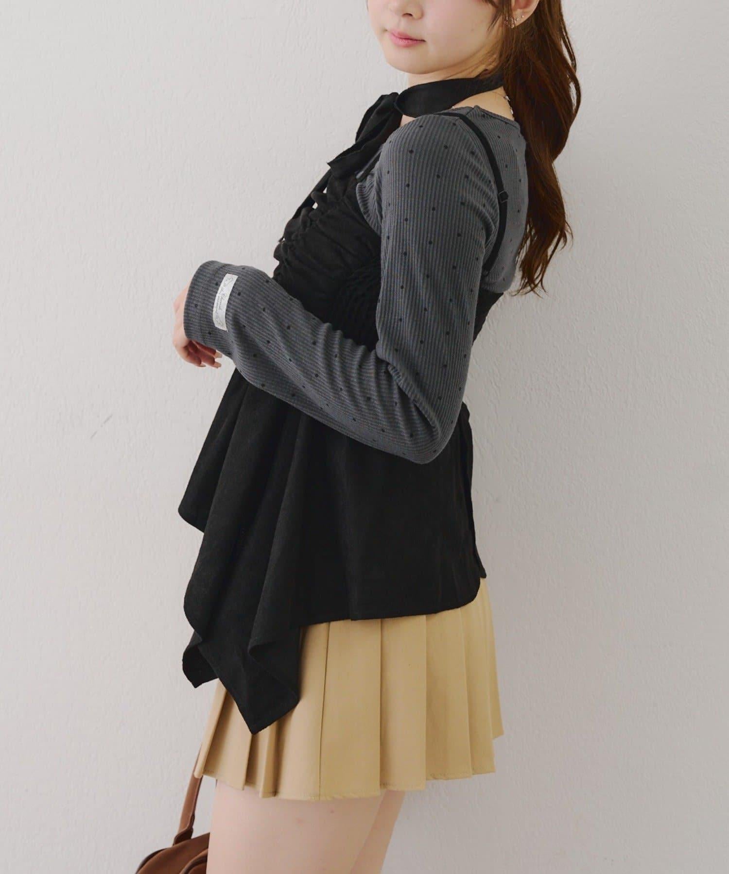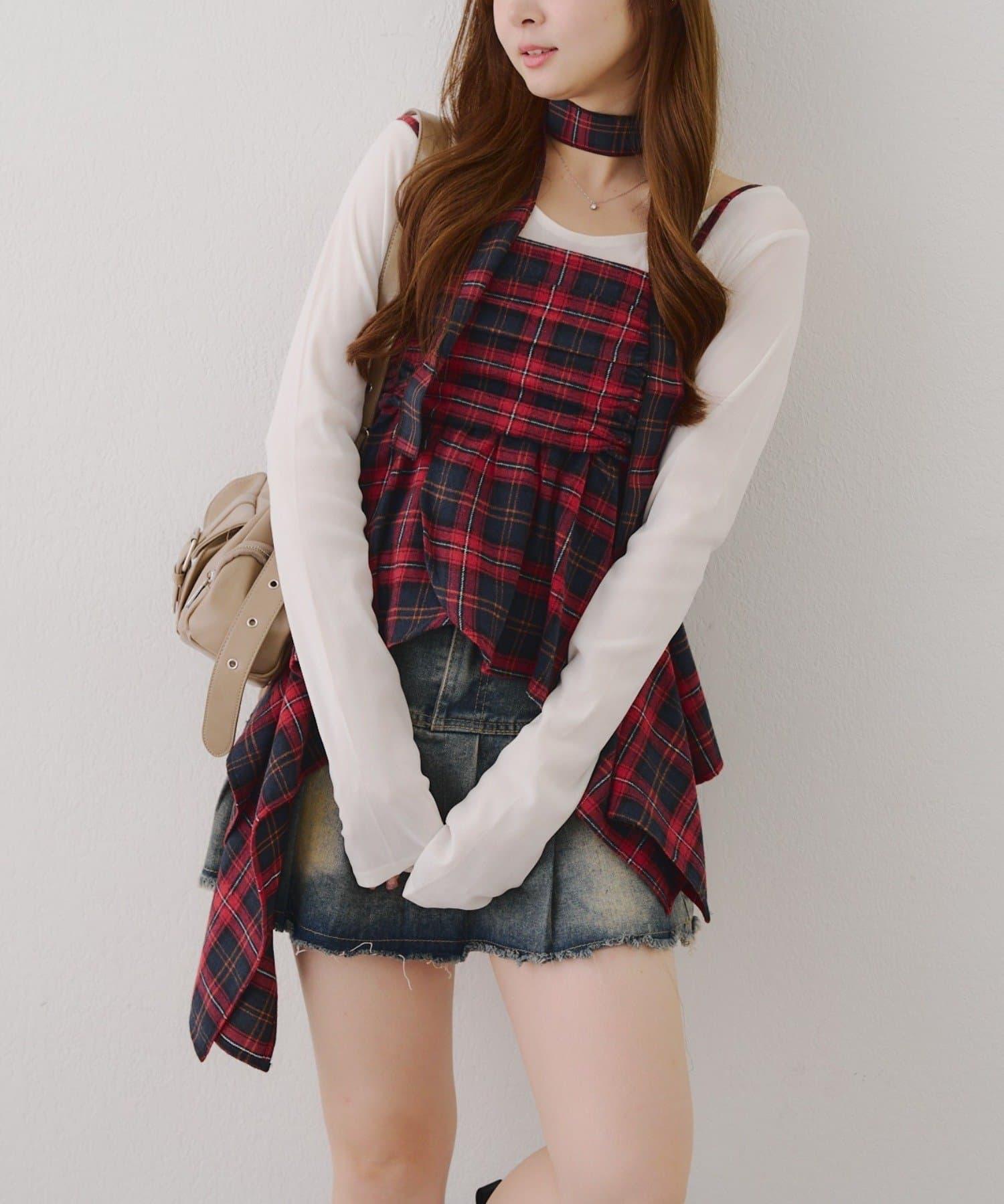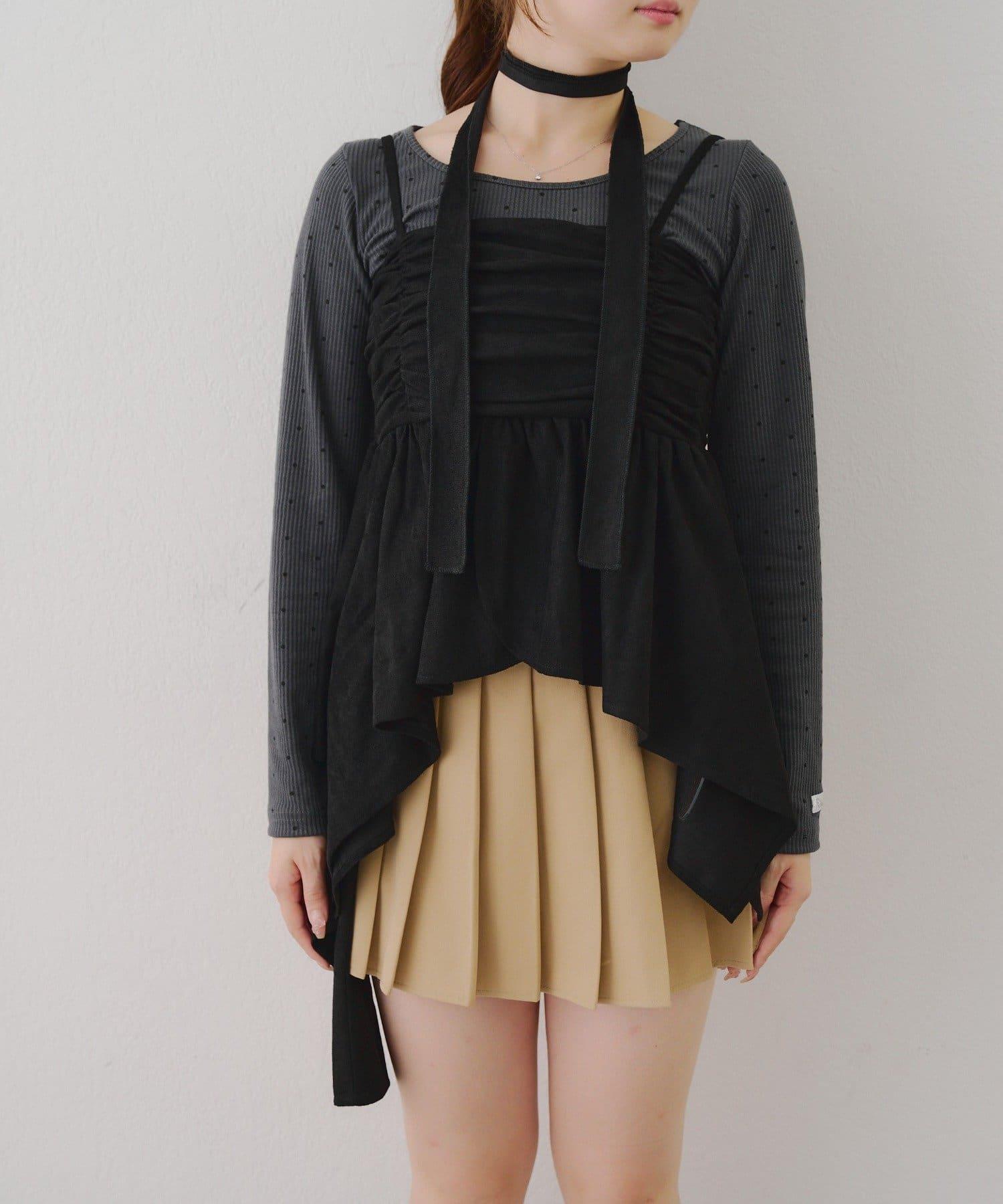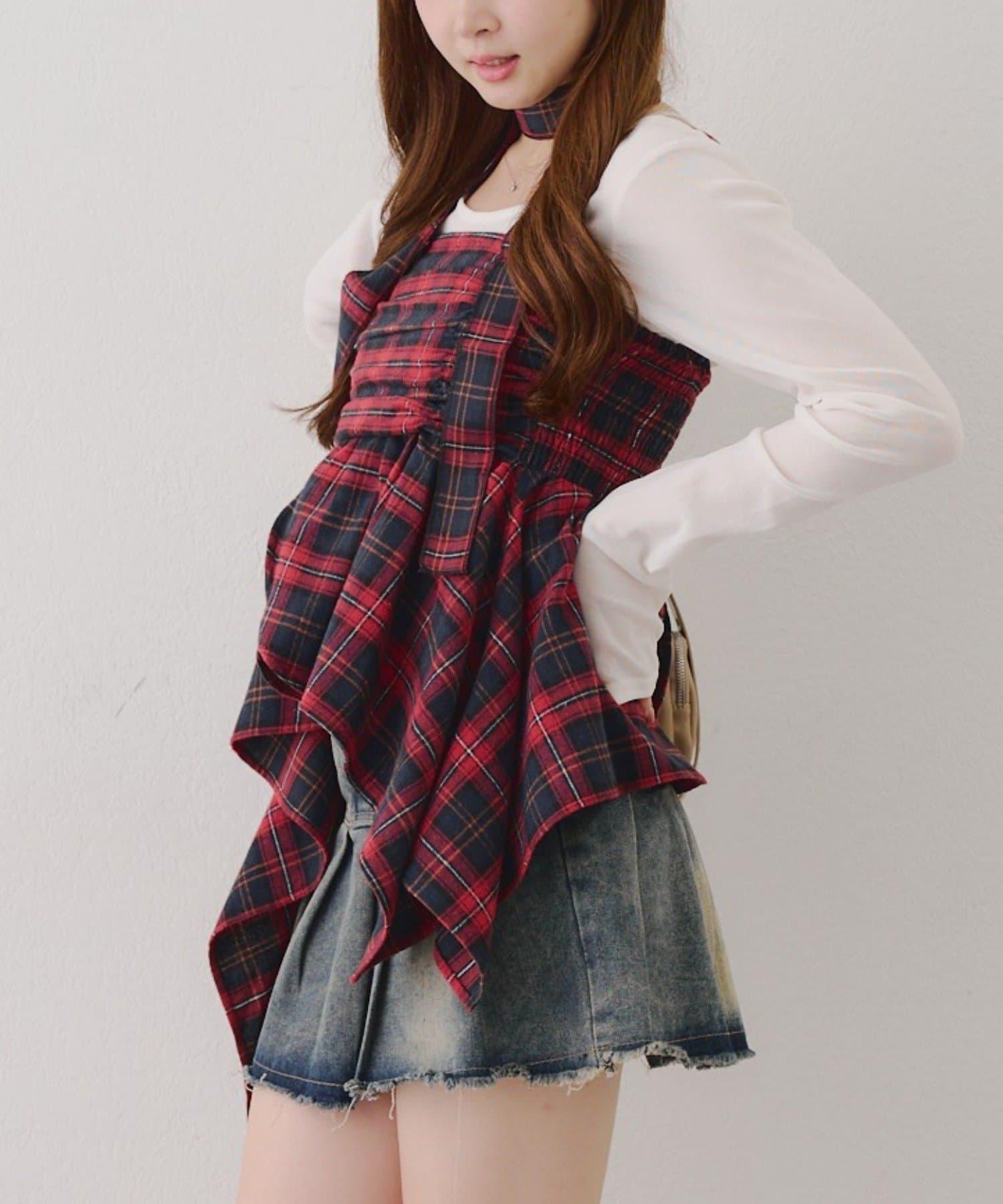 附項鍊頸圈設計顯身材【RMAF】不對稱下襬吊帶長款上衣